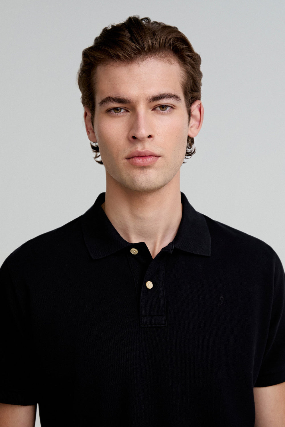 Polo con calavera bordada a tono confeccionado en 100% algodón BCI. Regular fit, cuello clásico y cierre con botones. Manga corta.