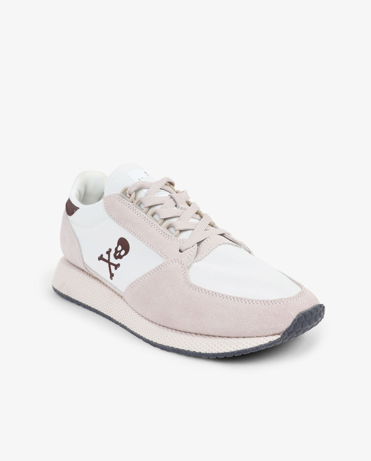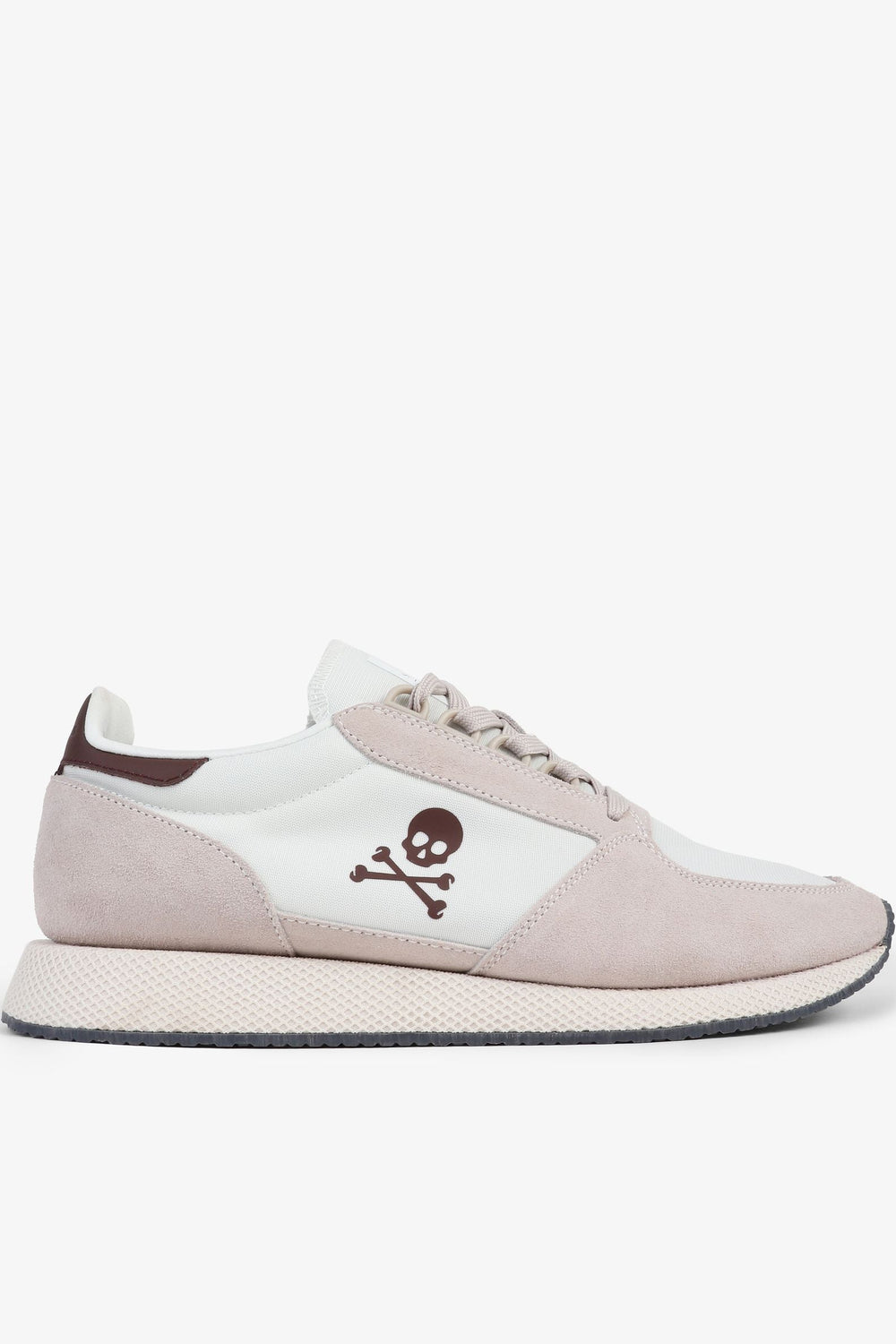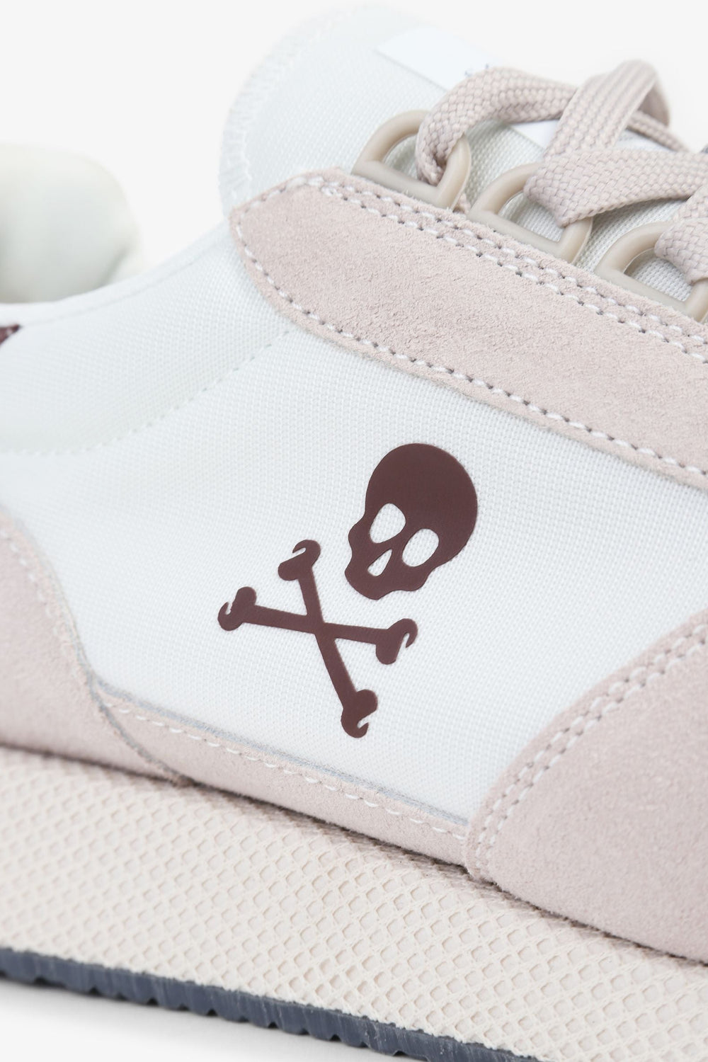 Sneakers combinados confeccionados en serraje y nailon. Cierra con cordones, suela de goma y eva. Calavera de parche engomada en el lateral.