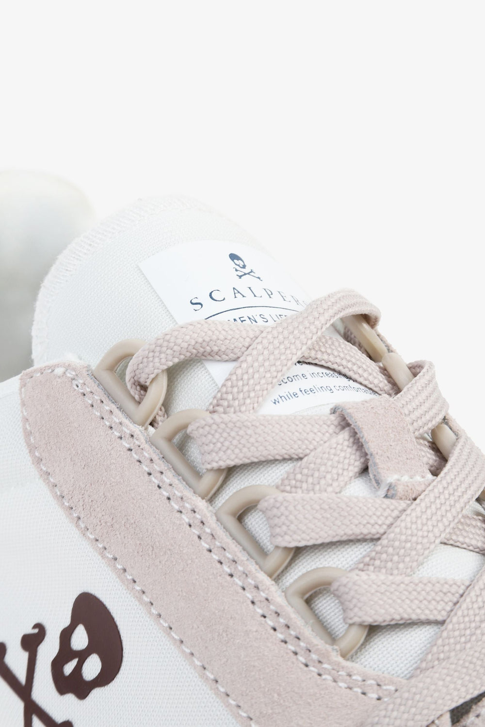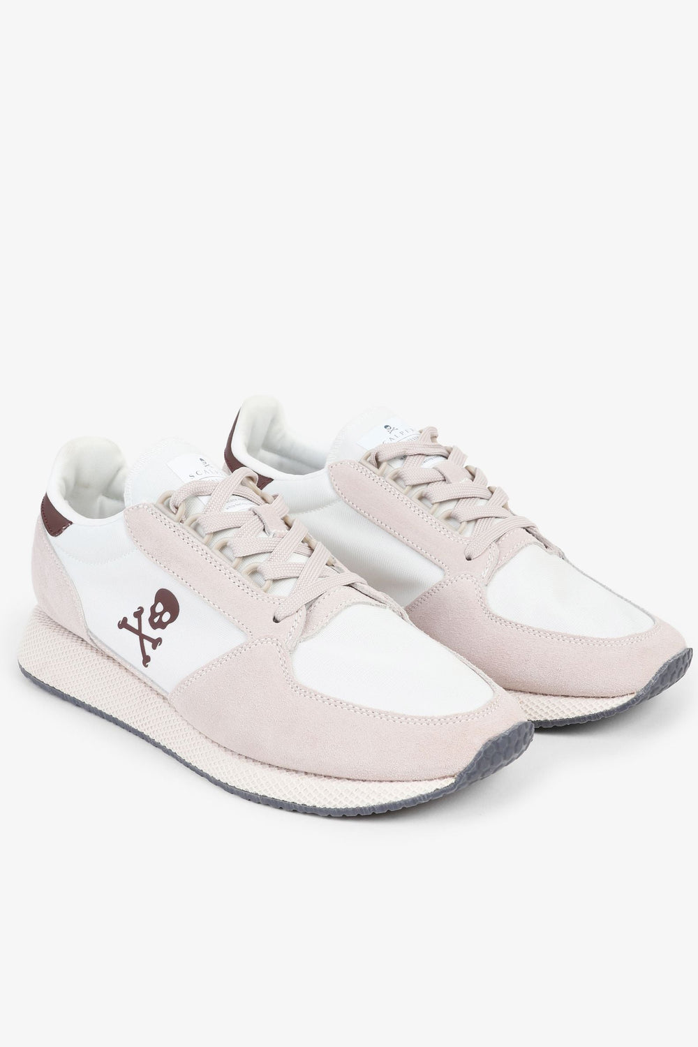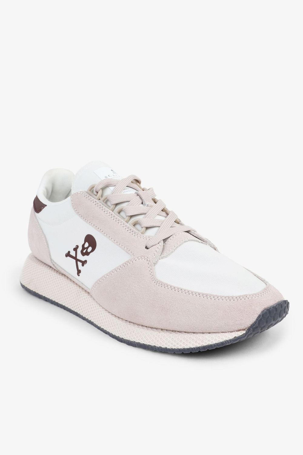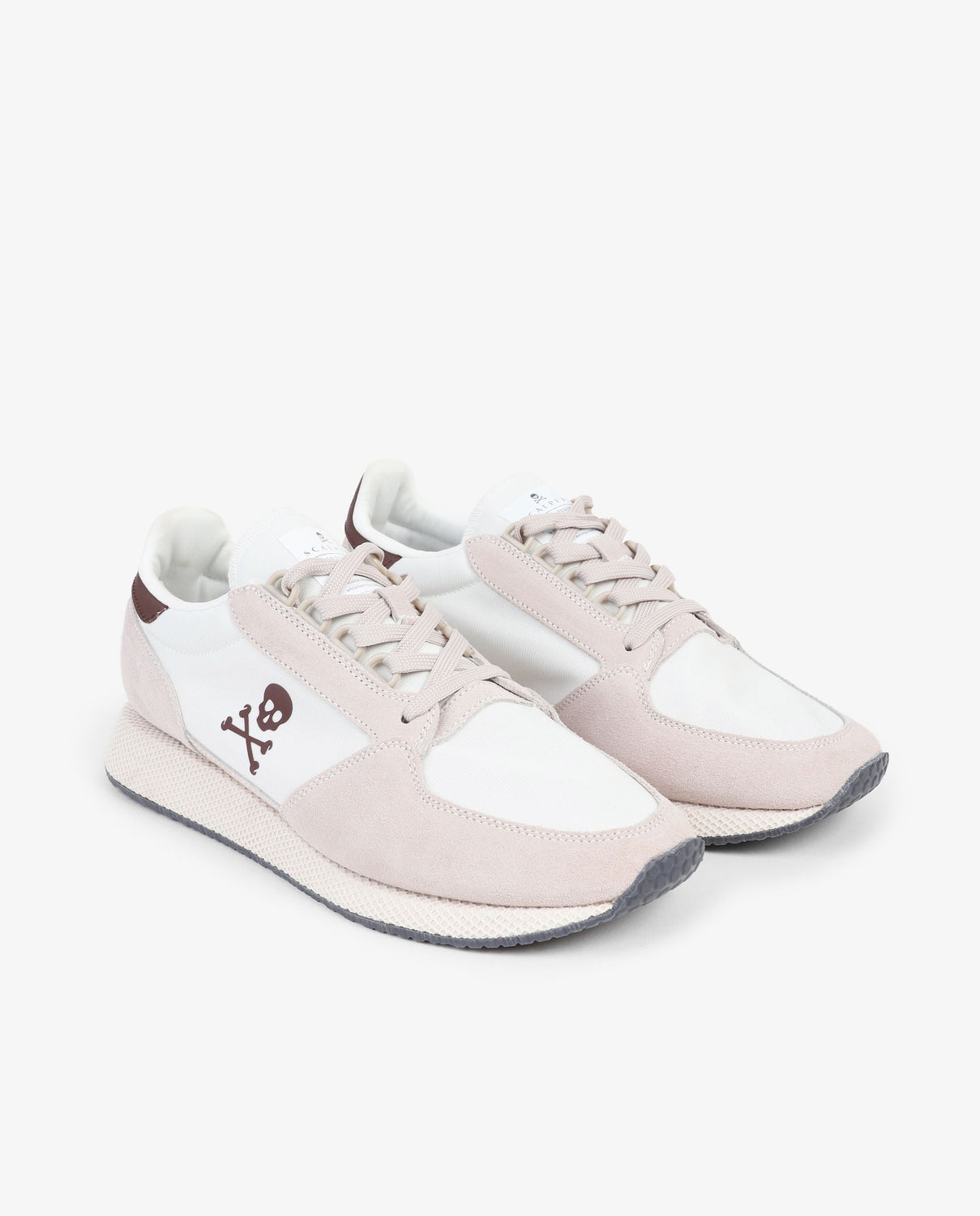Sneakers combinados confeccionados en serraje y nailon. Cierra con cordones, suela de goma y eva. Calavera de parche engomada en el lateral.