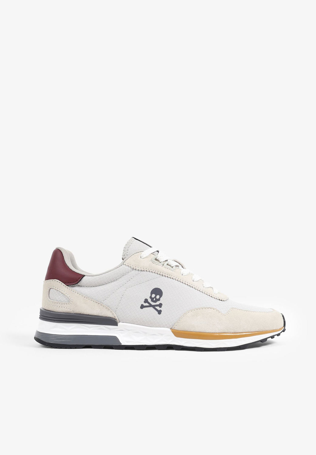 Sneakers confeccionadas en serraje y nailon. Corte bajo y cierre con cordones a tono. Suela phylon y eva. Detalle de aplique de calavera lateral.