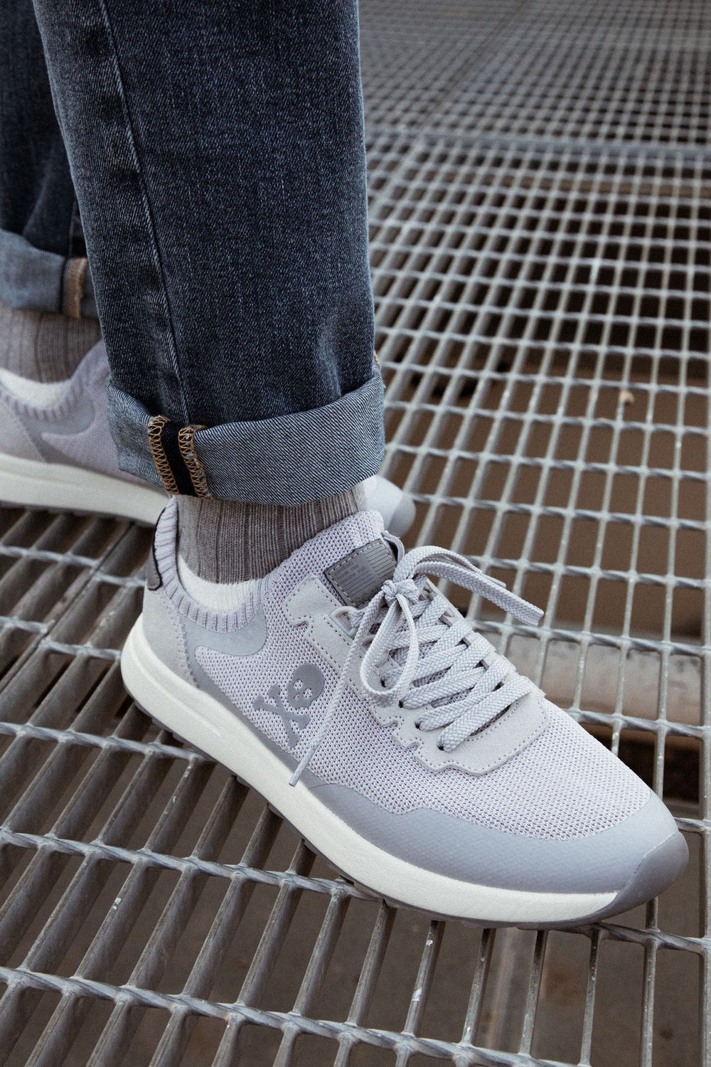 Sneakers tipo calcetín. Cierre con cordones a tono. Suela de goma y detalles en ante. Calavera lateral.