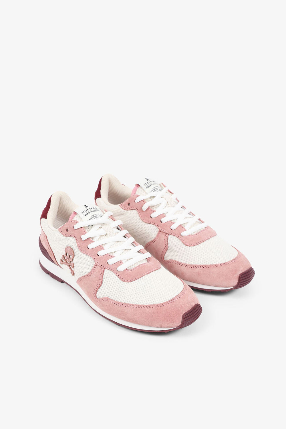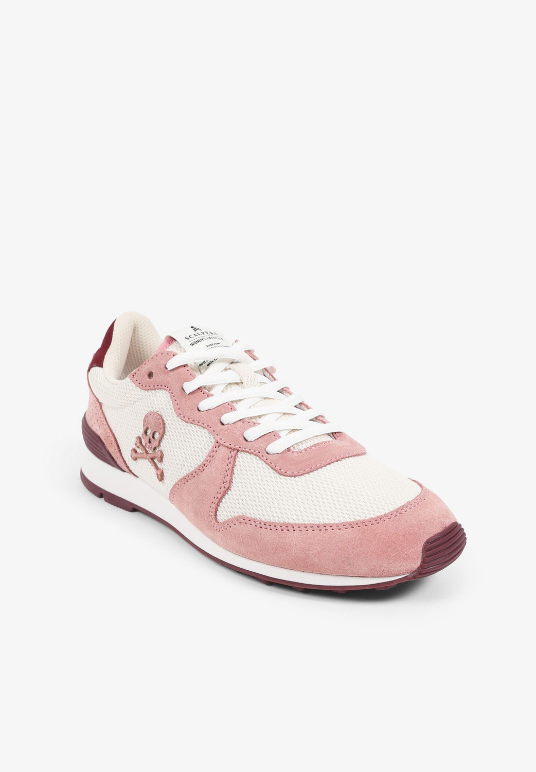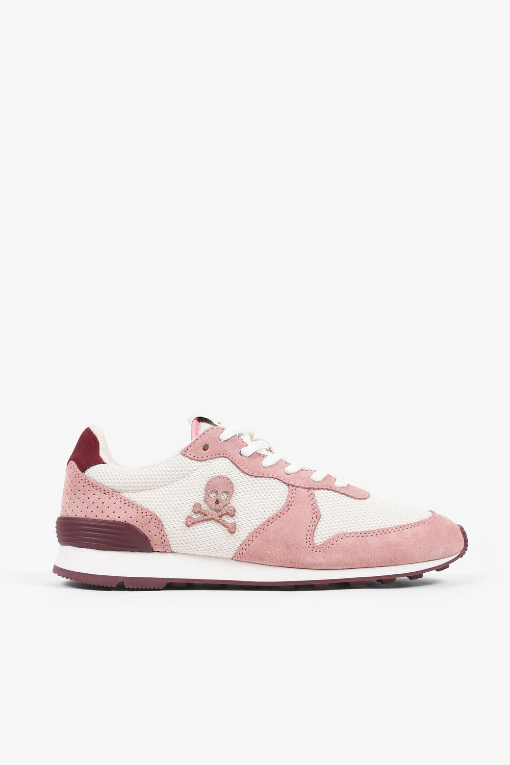 Sneakers confeccionadas en piel de serraje. Cierre con cordones y suela de goma. Detalle de calavera bordada en el lateral.