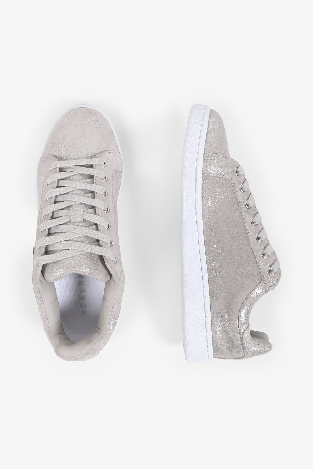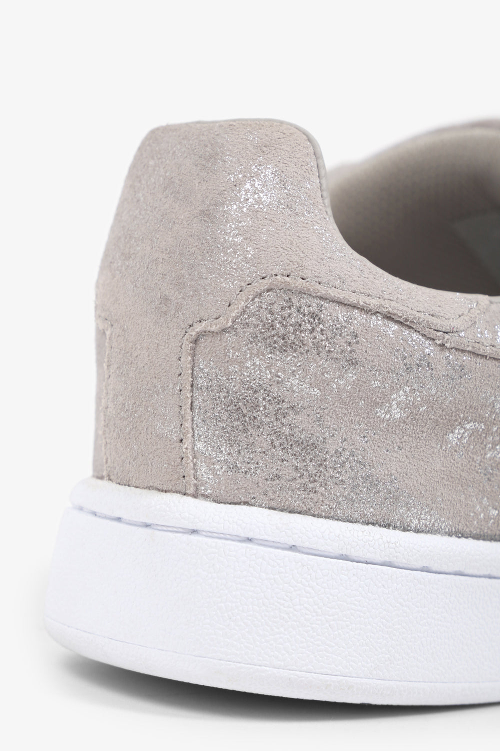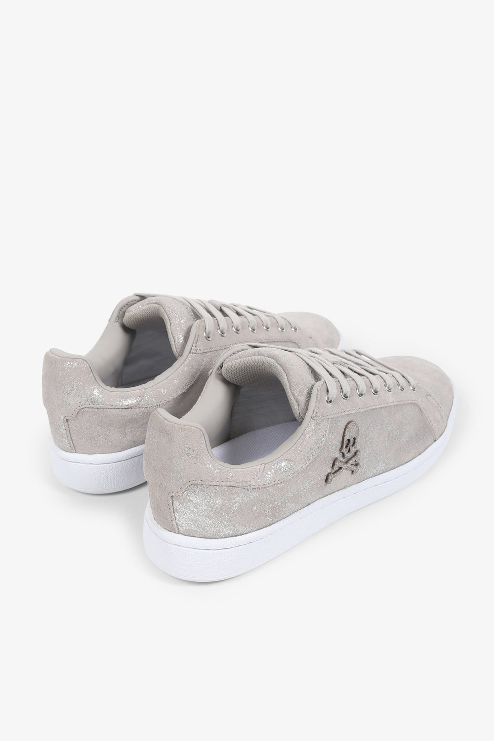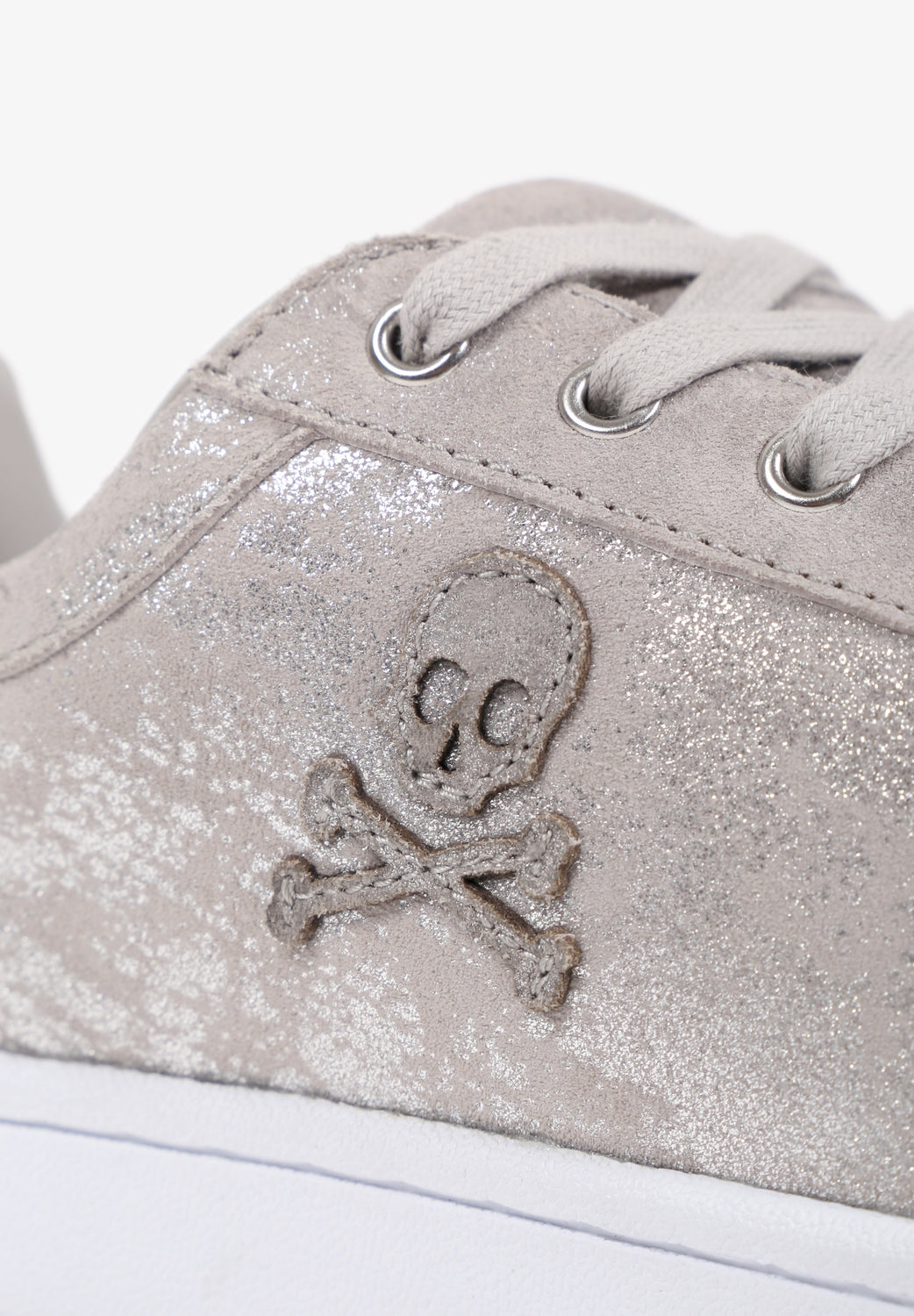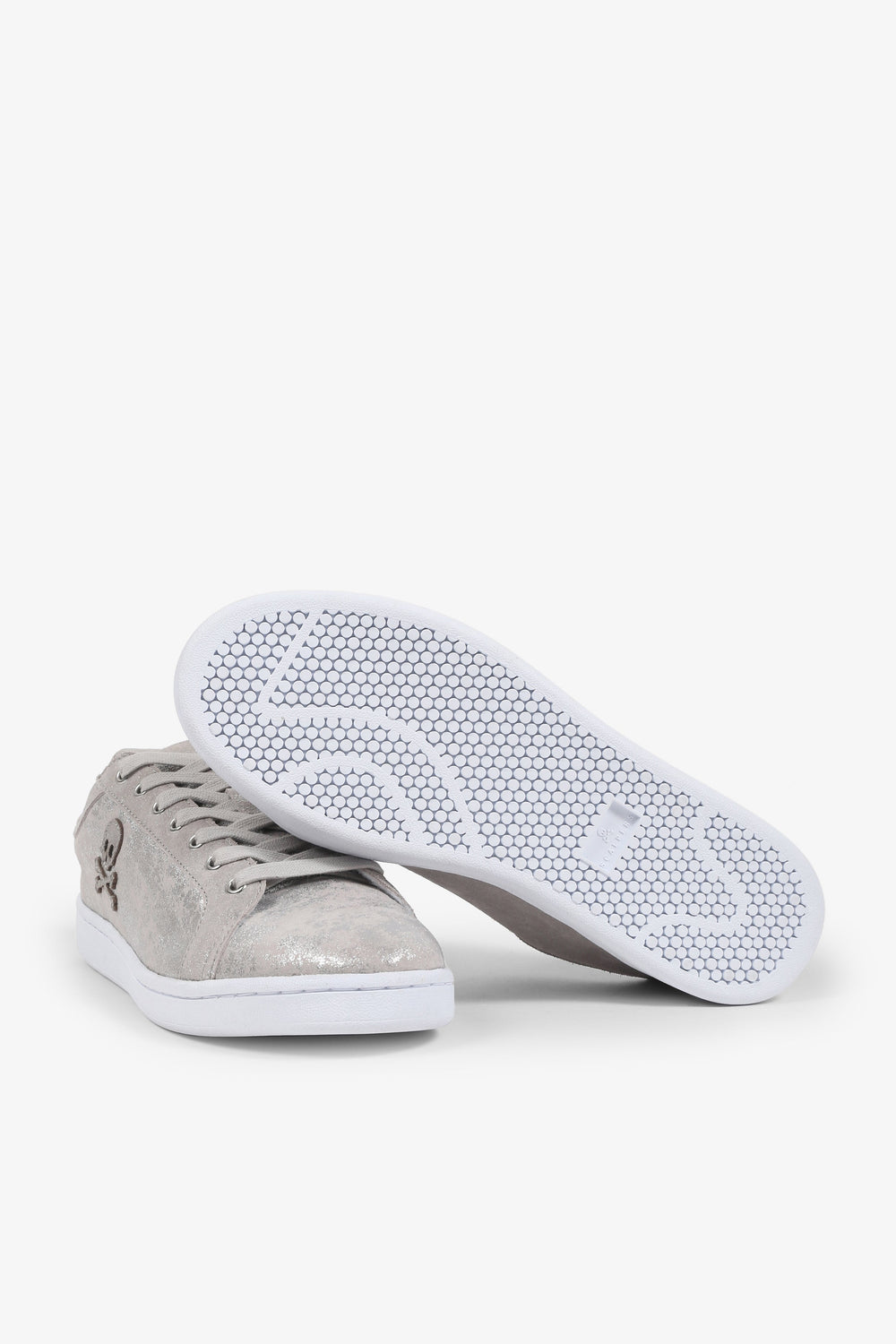 Sneakers bajas metalizadas confeccionadas en piel de serraje. Cierre con cordones a tono, suela de goma y detalle de calavera lateral.