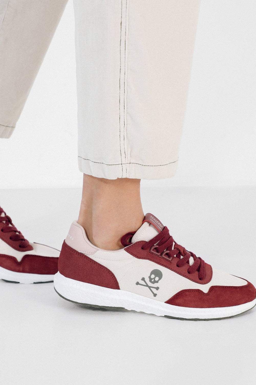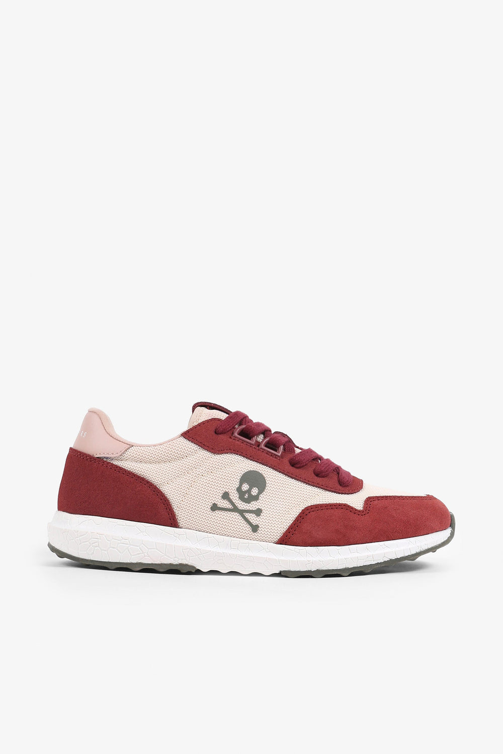 Sneakers confeccionadas en piel de serraje. Cierre con cordones a tono, suela de goma ancha y detalle a contraste. Detalle de calavera lateral.