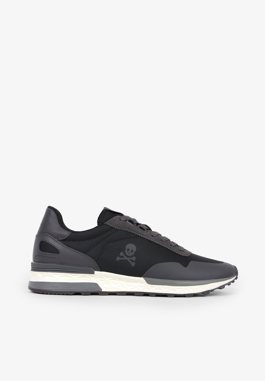 Sneakers confeccionadas en serraje y nailon. Corte bajo y cierre con cordones a tono. Rejilla transpirable y suela de eva y goma. Detalle de aplique de calavera.