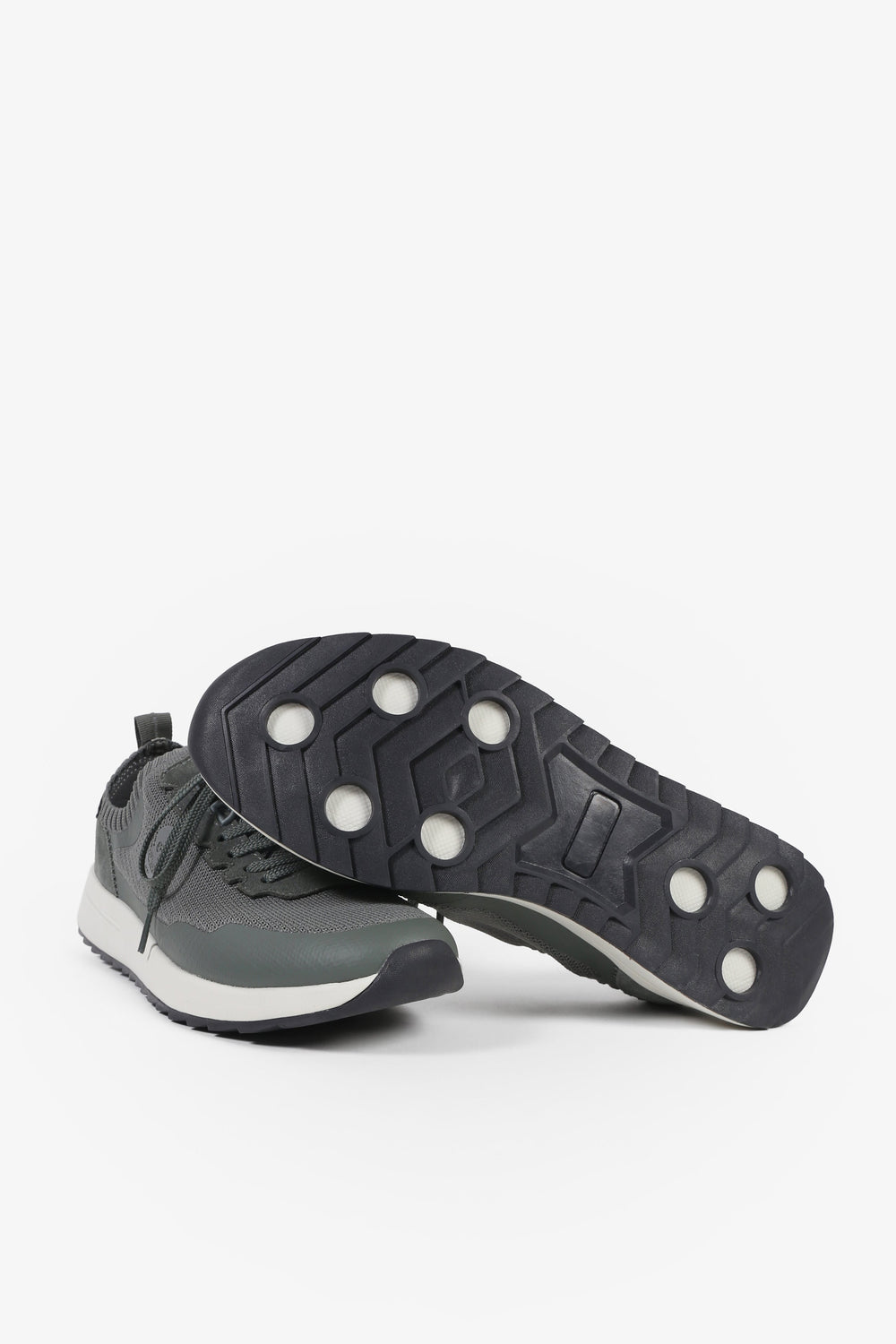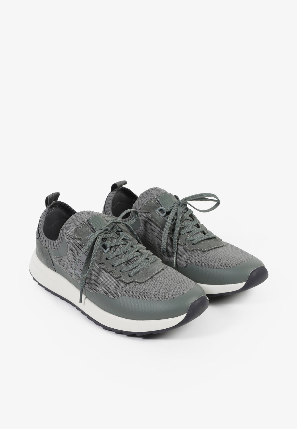 Sneakers tipo calcetín. Cierre con cordones a tono. Suela de goma y detalles en ante. Calavera lateral.