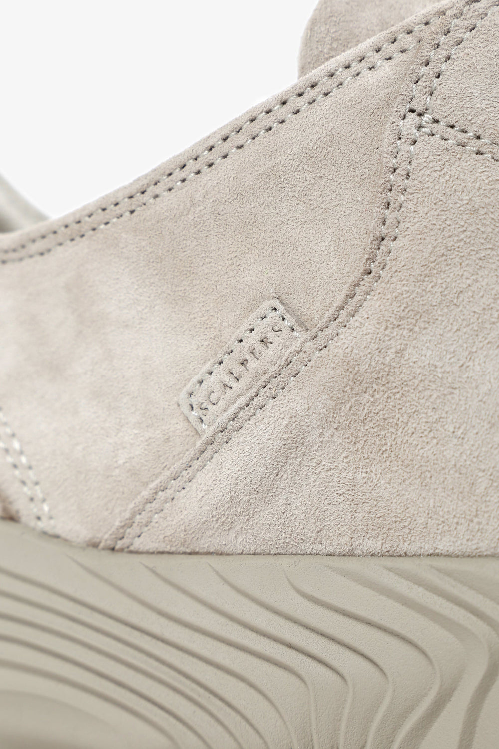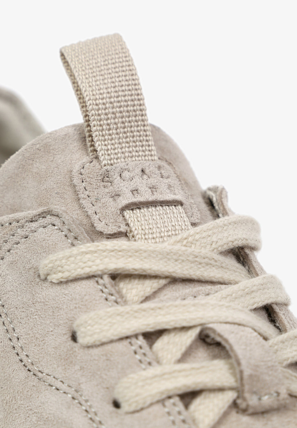 Sneakers baja confeccionadas en tejido 100% piel terminadas en ante. Cierre con cordones a tono y suela de goma. Detalle de calavera lateral.