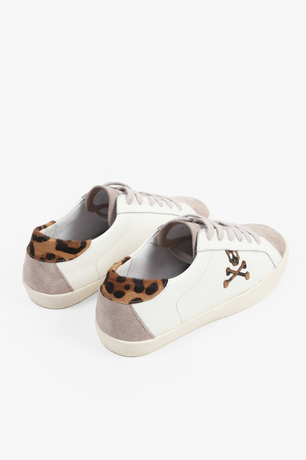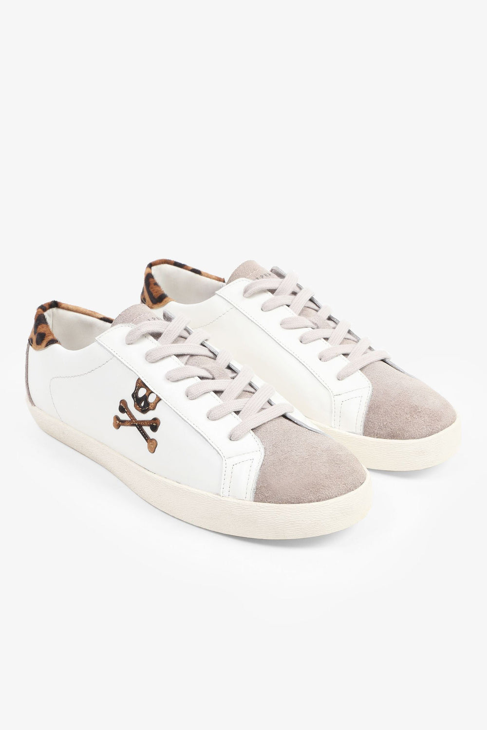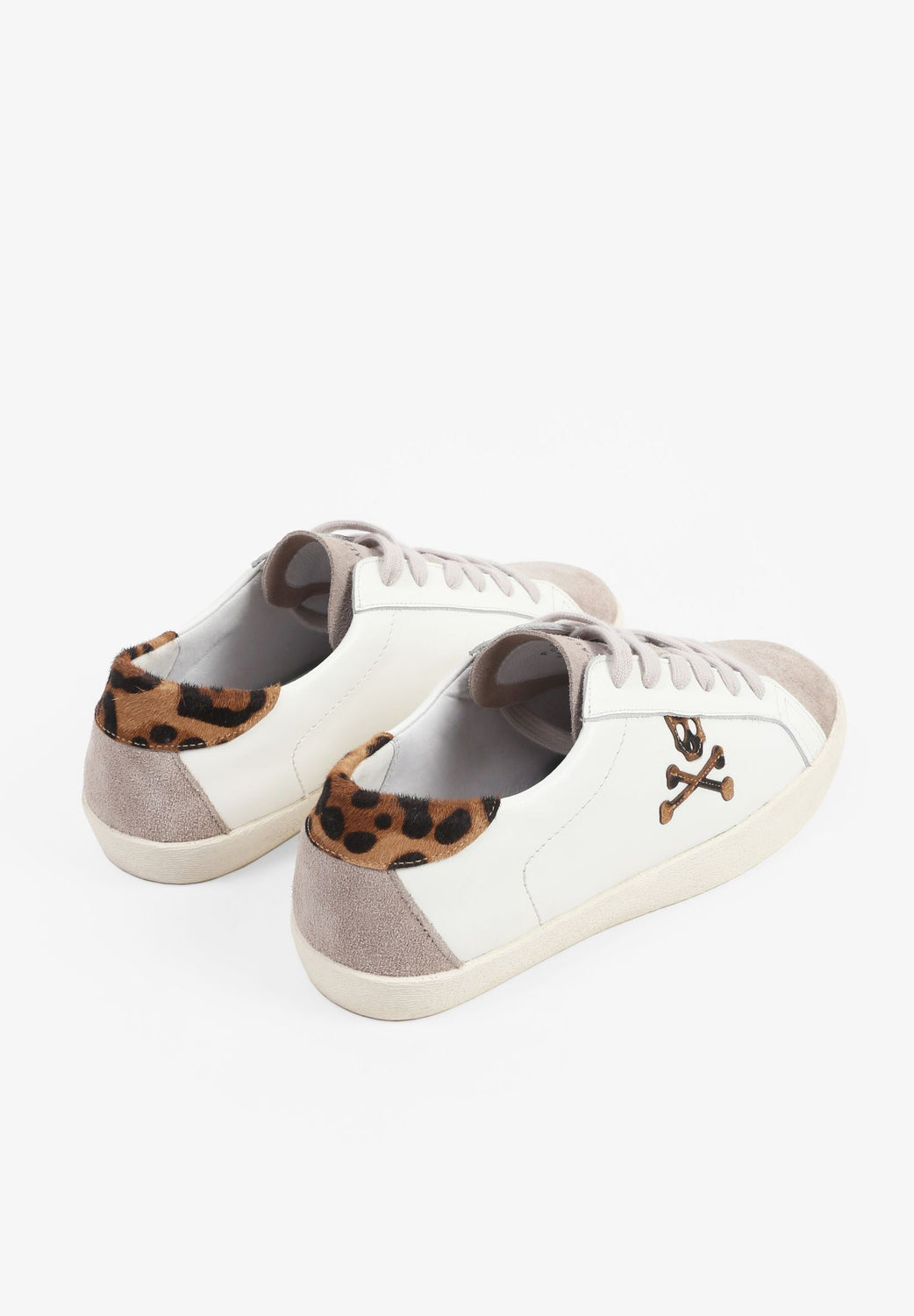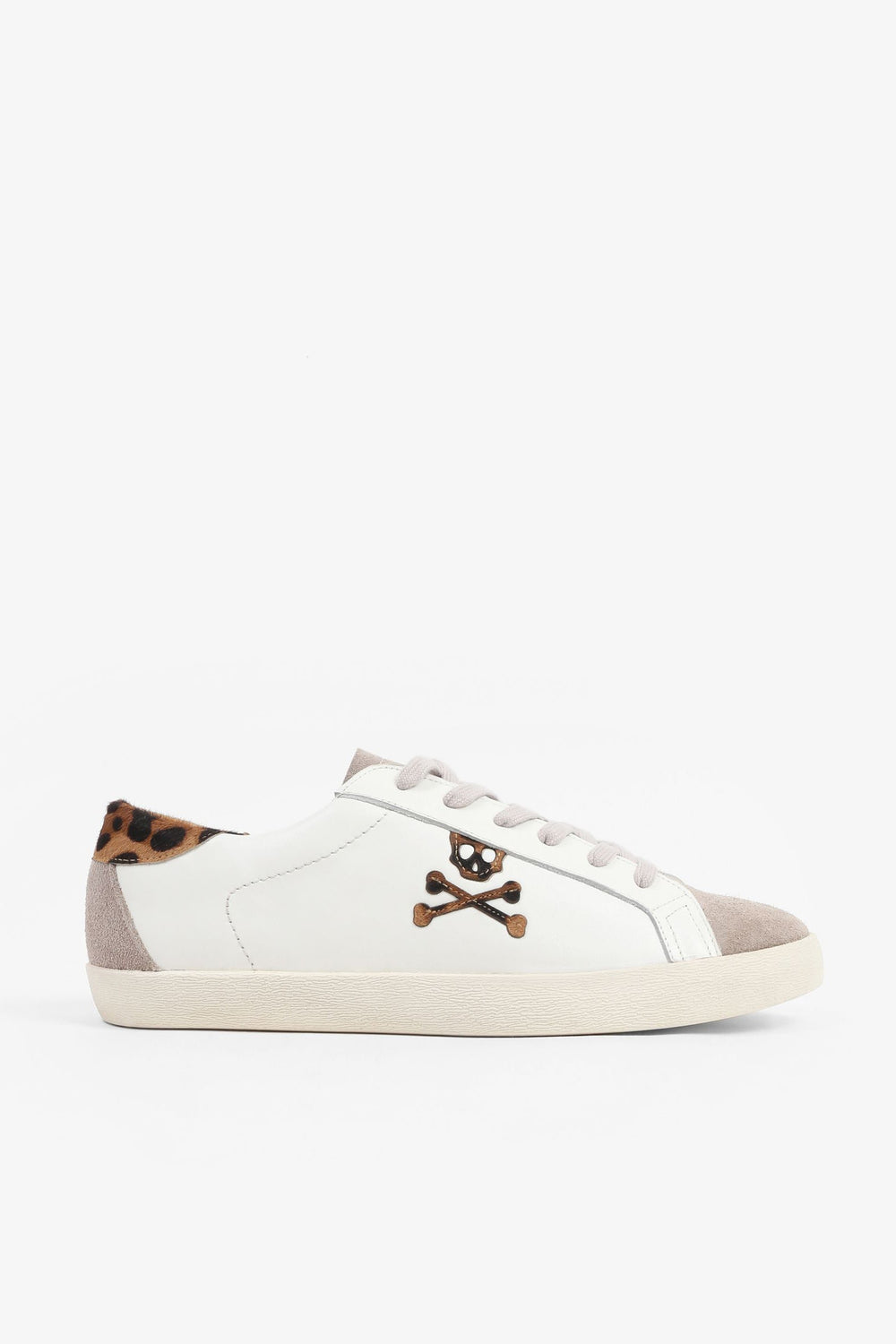 Sneakers bajas confeccionadas en piel. Cierre con cordones a contraste, suela de goma y detalle de estampado de leopardo y calavera lateral.