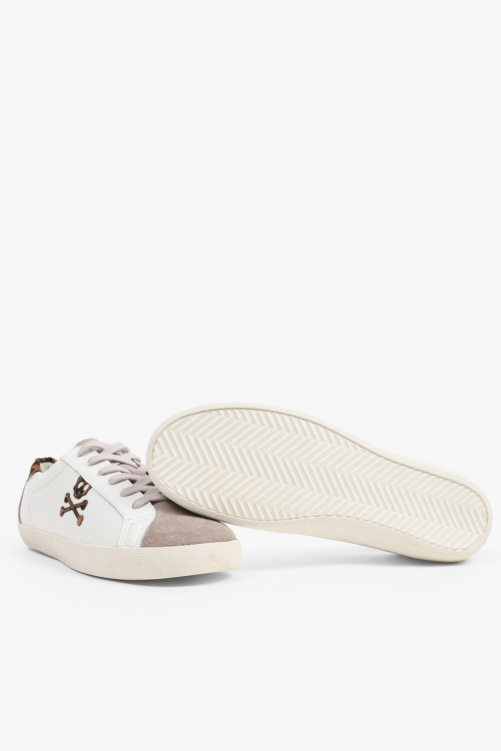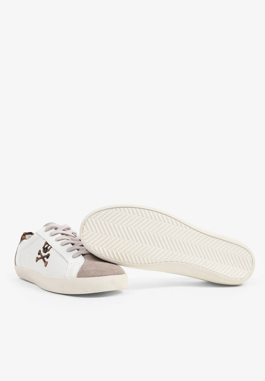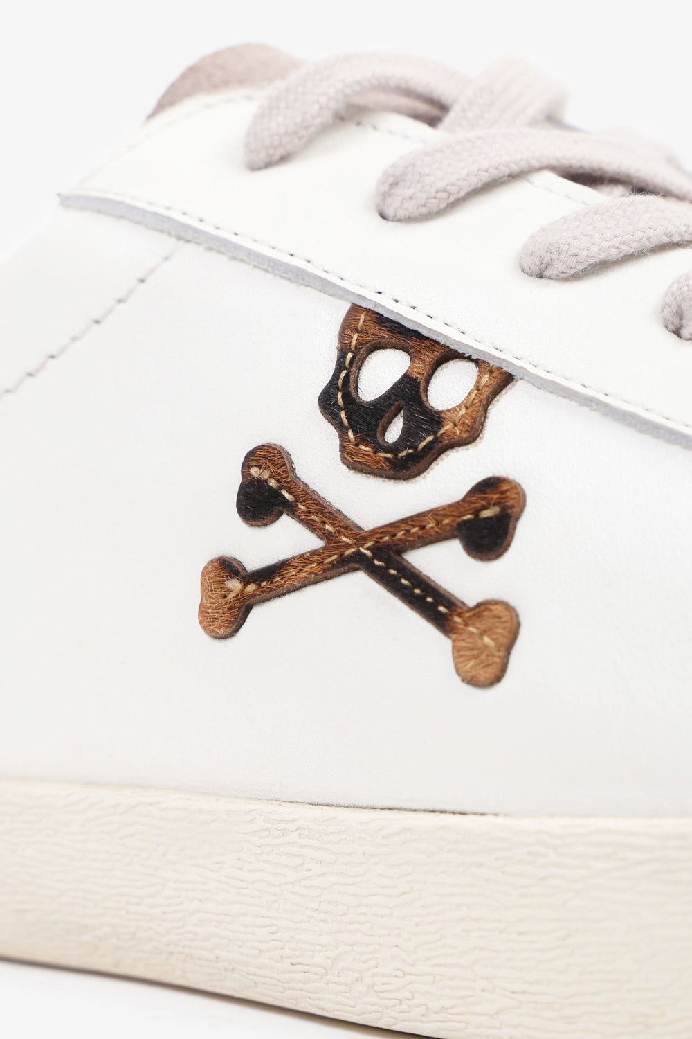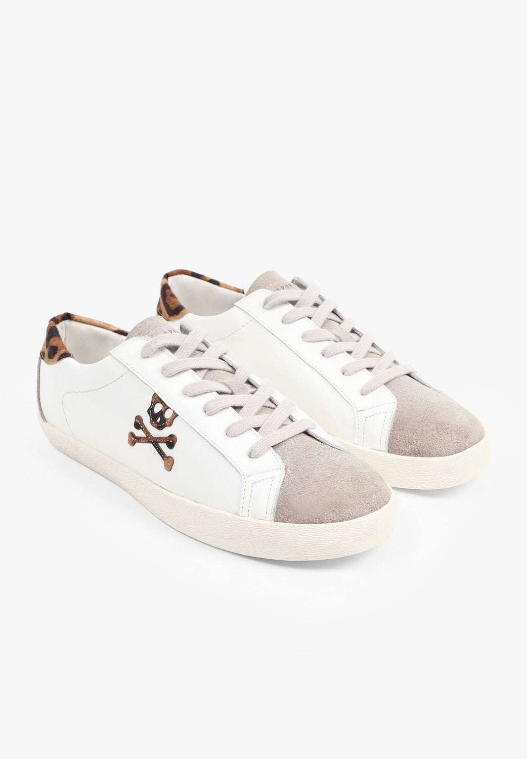 Sneakers bajas confeccionadas en piel. Cierre con cordones a contraste, suela de goma y detalle de estampado de leopardo y calavera lateral.
