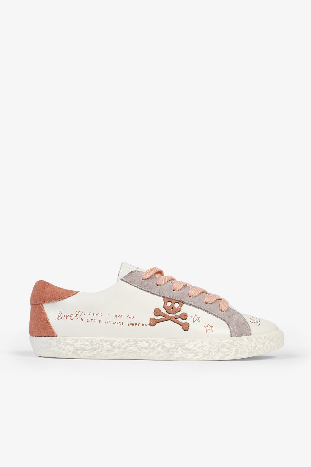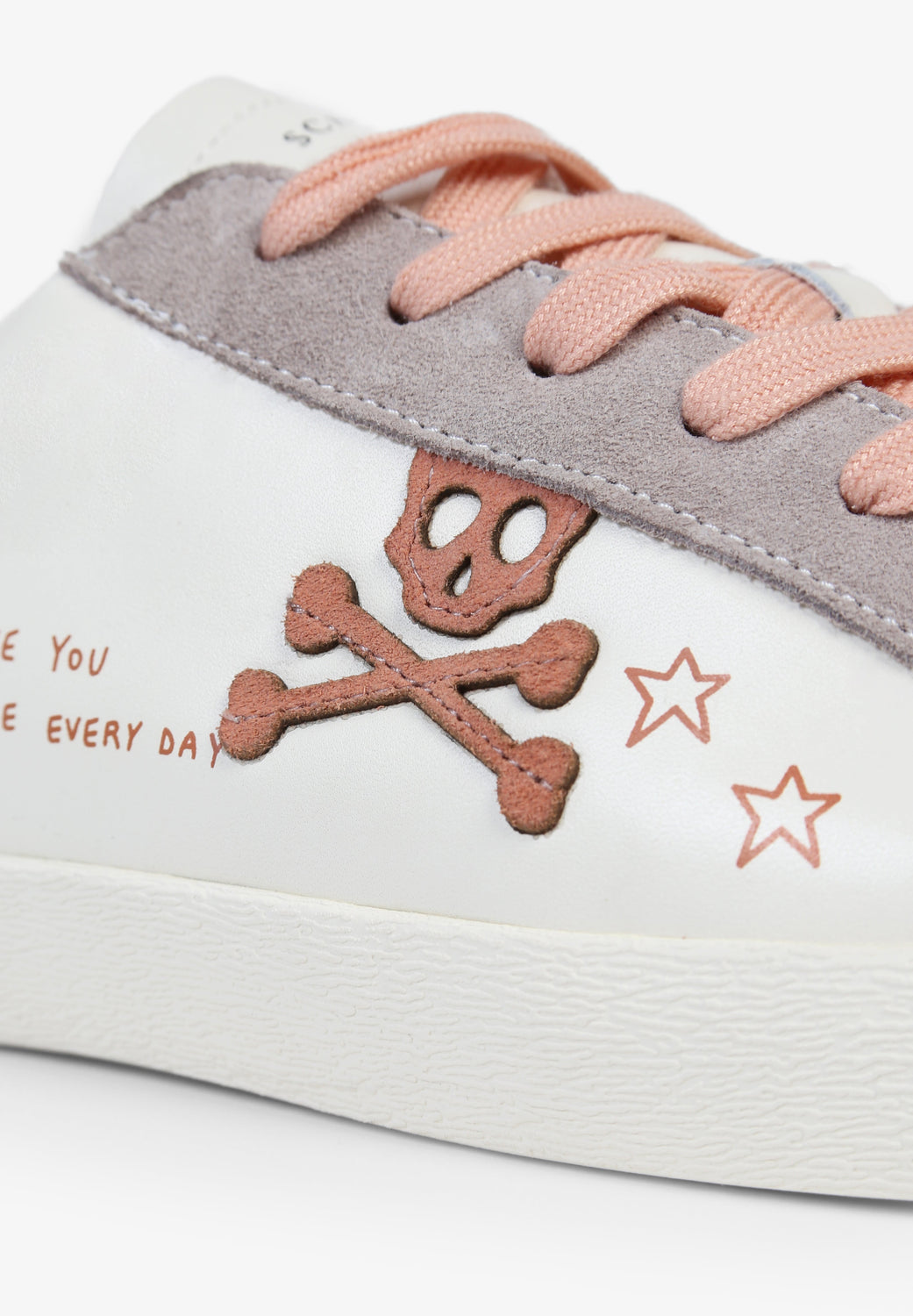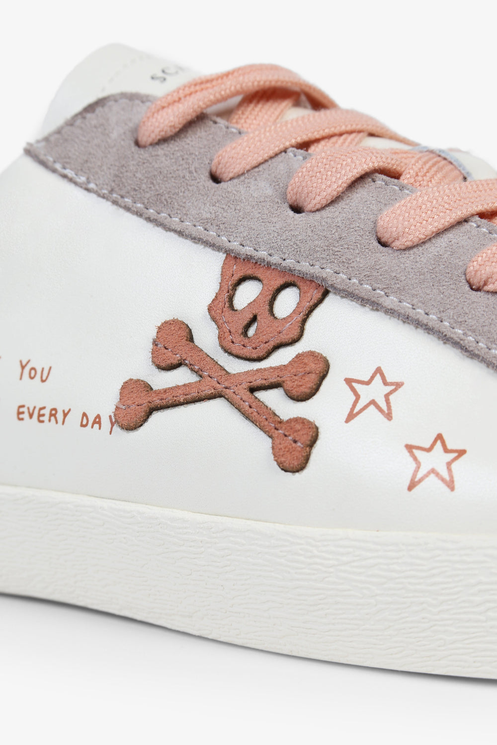 Sneakers bajas confeccionadas en piel. Cierre con cordones a contraste, suela de goma y detalle de prints y calavera lateral.