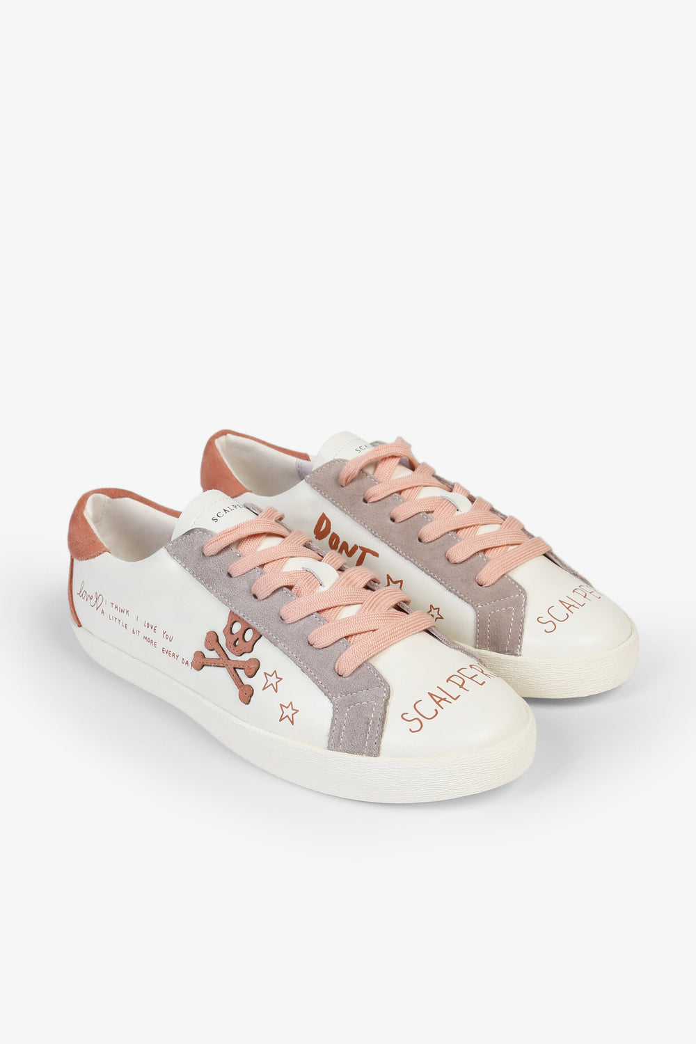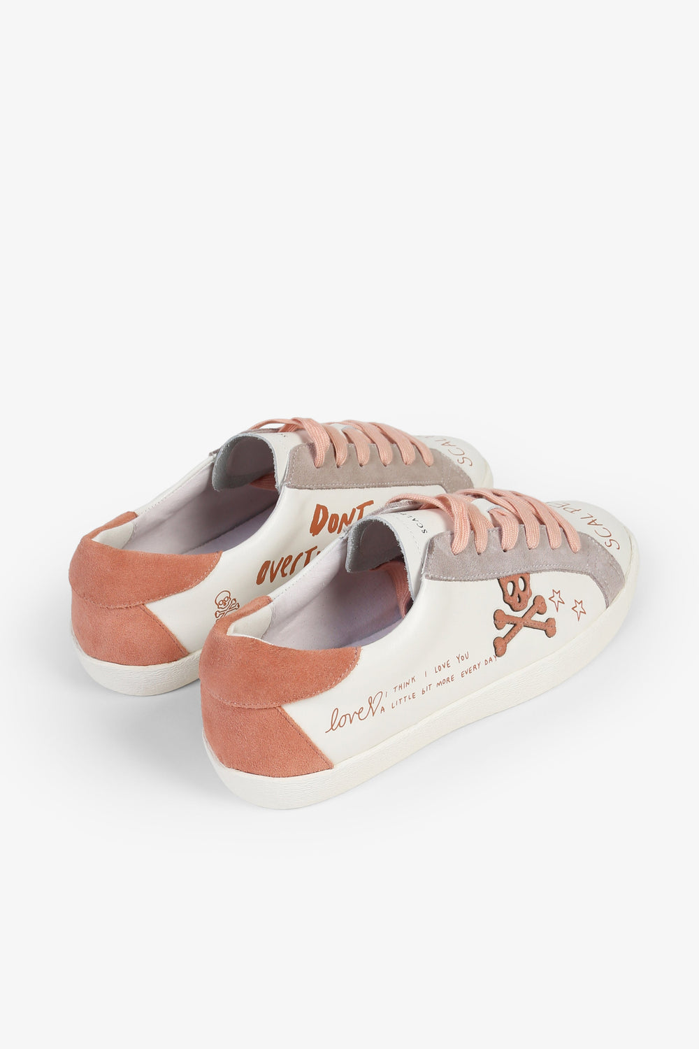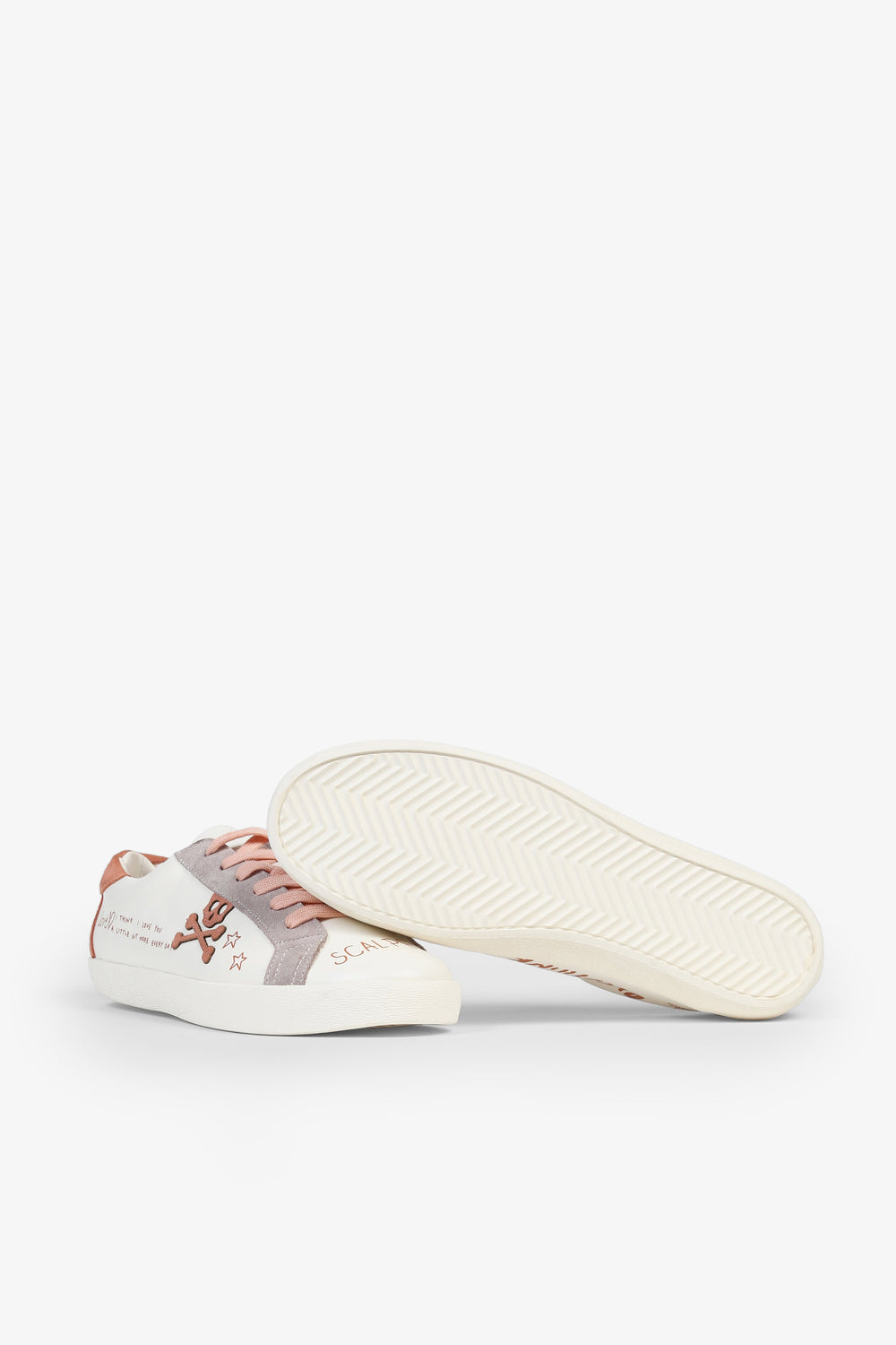 Sneakers bajas confeccionadas en piel. Cierre con cordones a contraste, suela de goma y detalle de prints y calavera lateral.