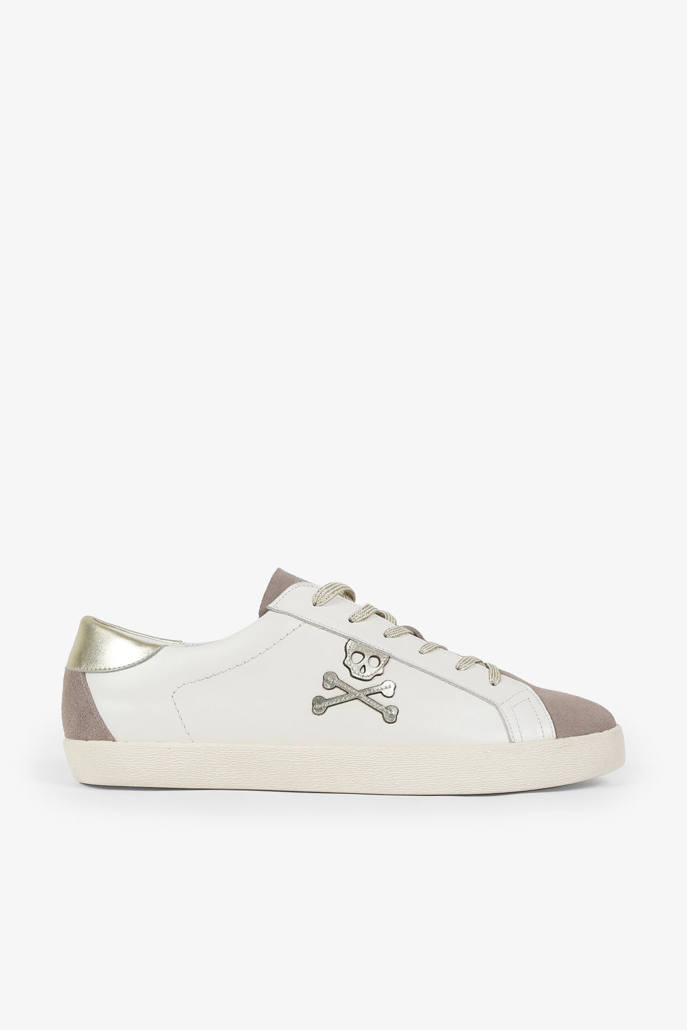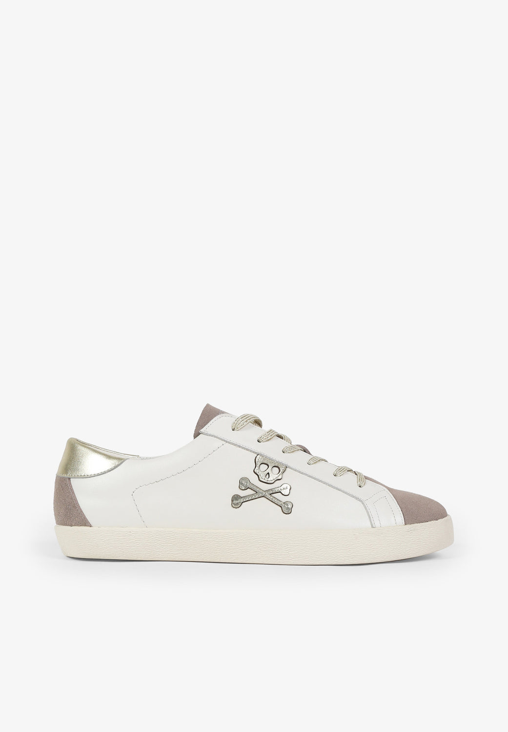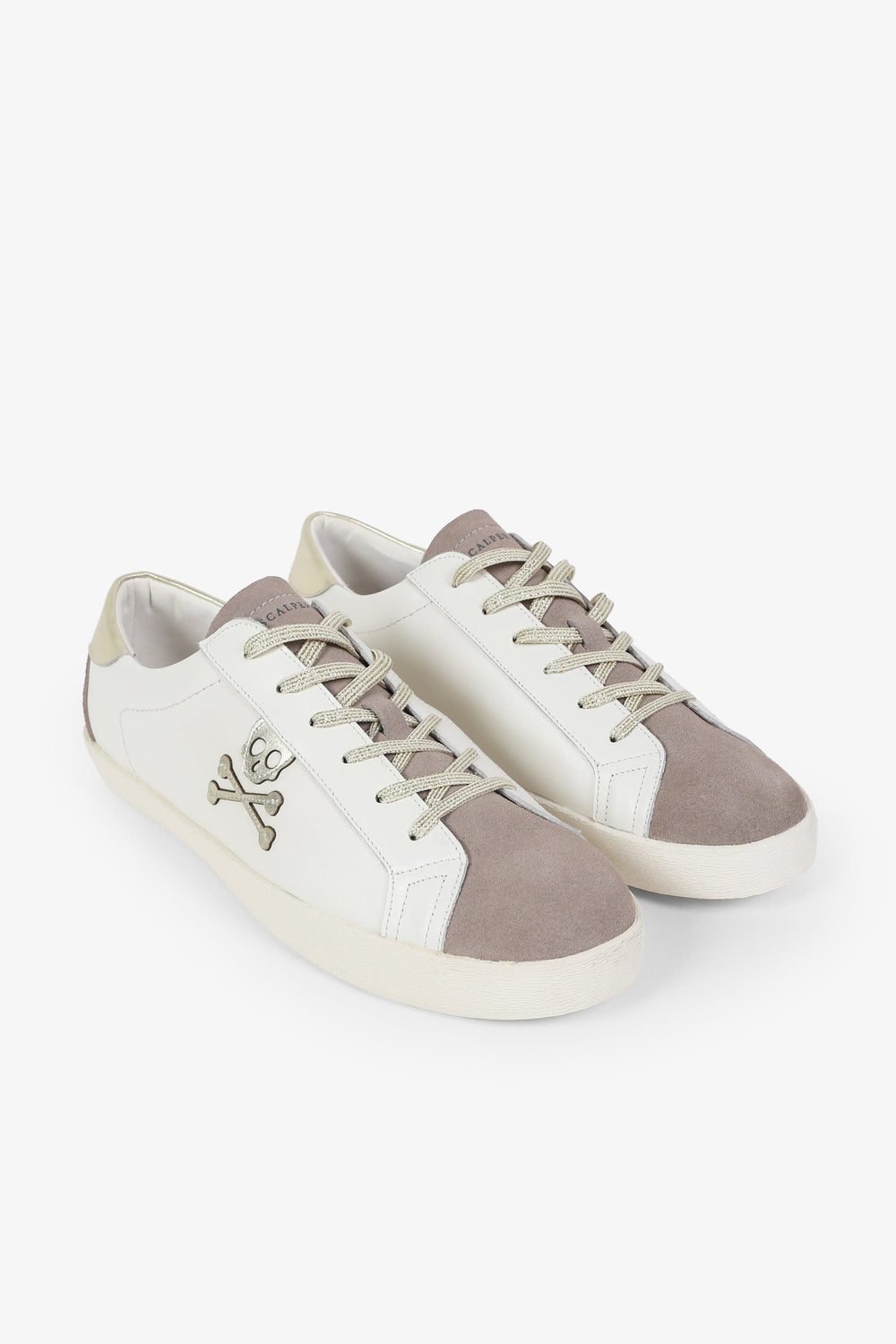 Sneakers bajas confeccionadas en piel. Cierre con cordones a contraste, suela de goma y detalle de prints y calavera lateral.