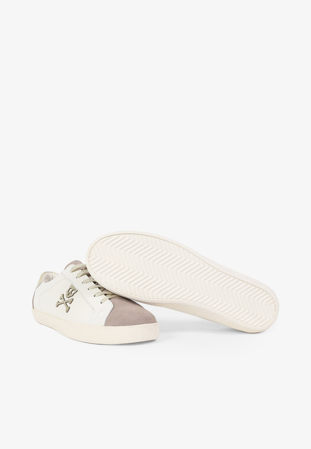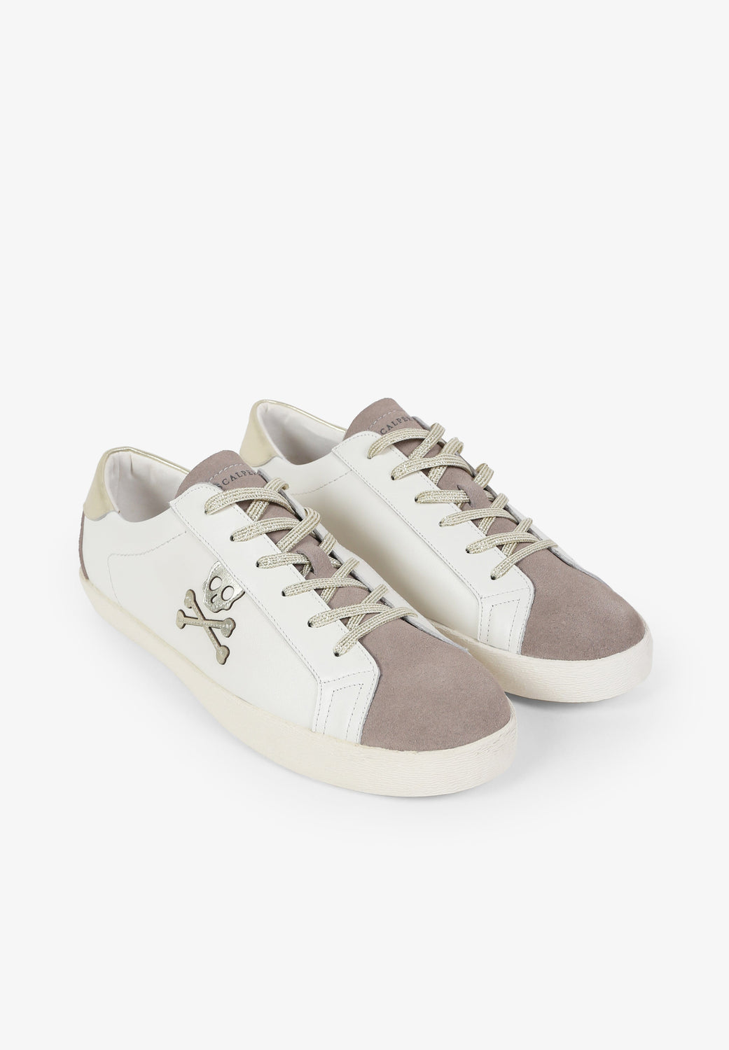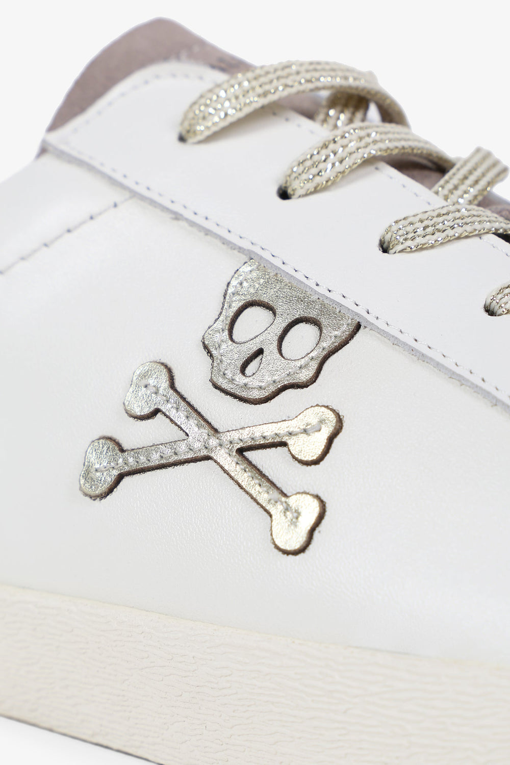 Sneakers bajas confeccionadas en piel. Cierre con cordones a contraste, suela de goma y detalle de prints y calavera lateral.