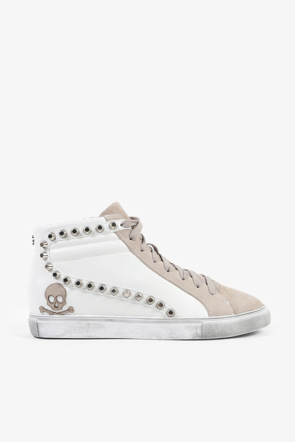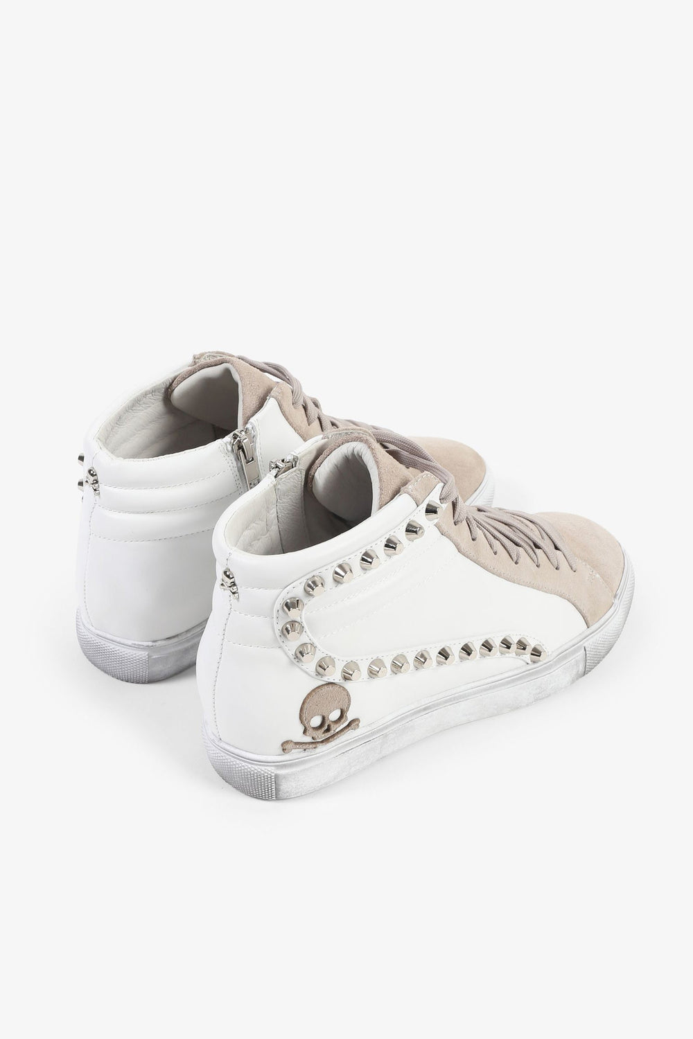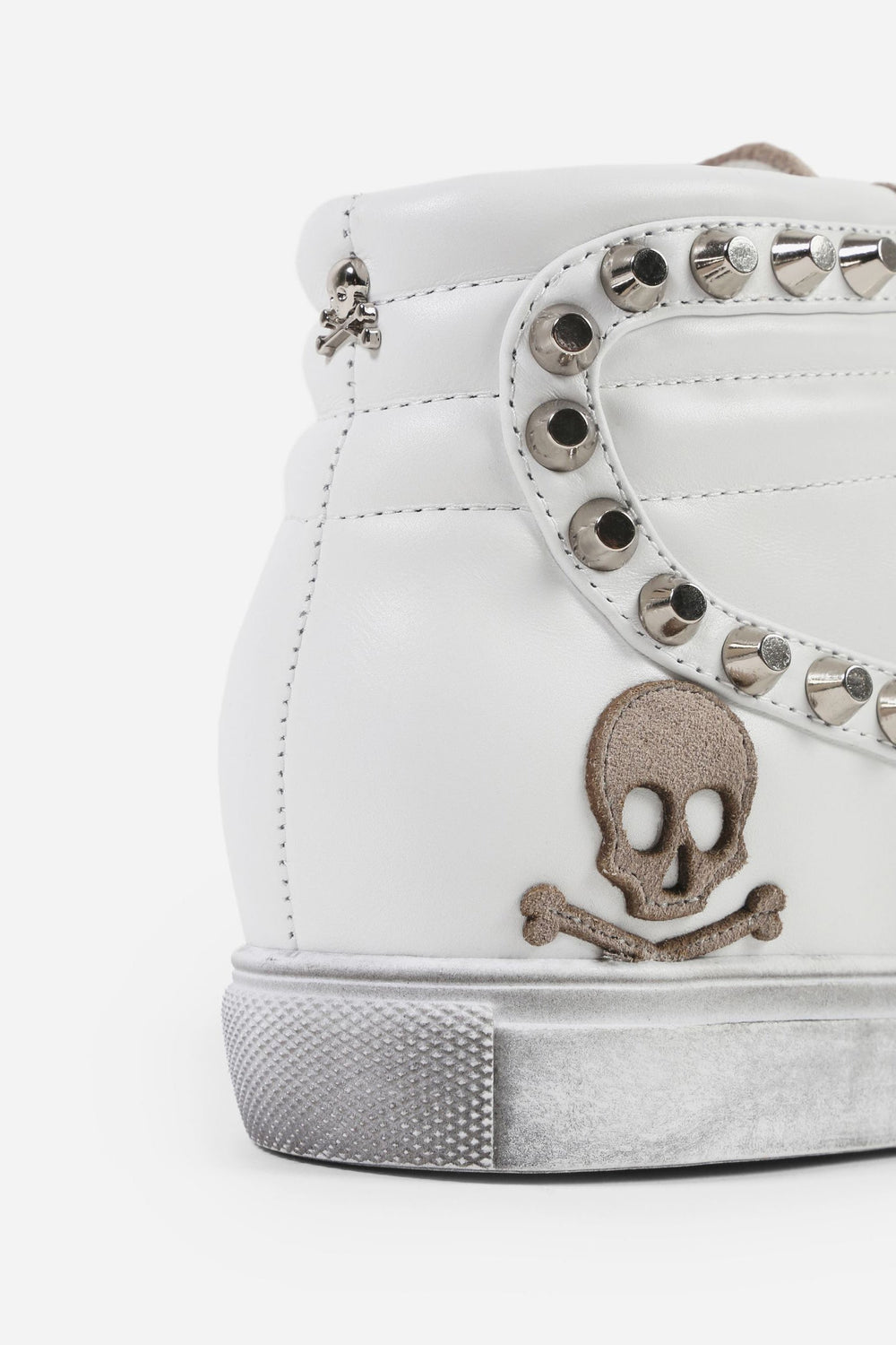 Sneakers tipo bota confeccionada piel. Cierre con cordones a tono y cremallera lateral, suela de goma y detalle de tachuelas y calavera bordada lateral.