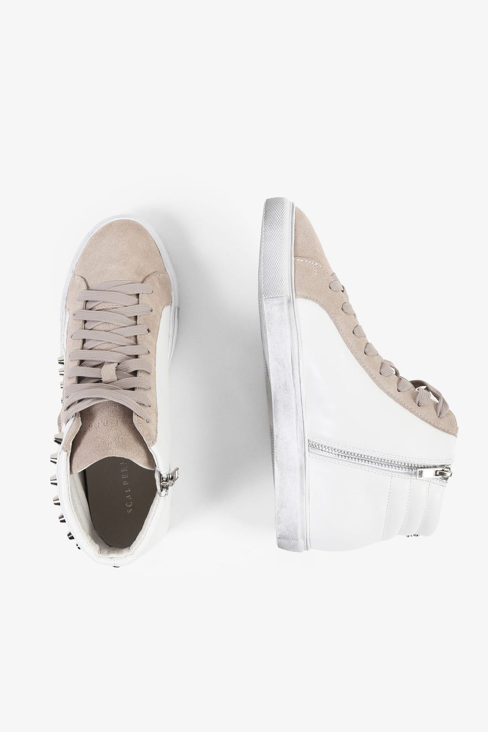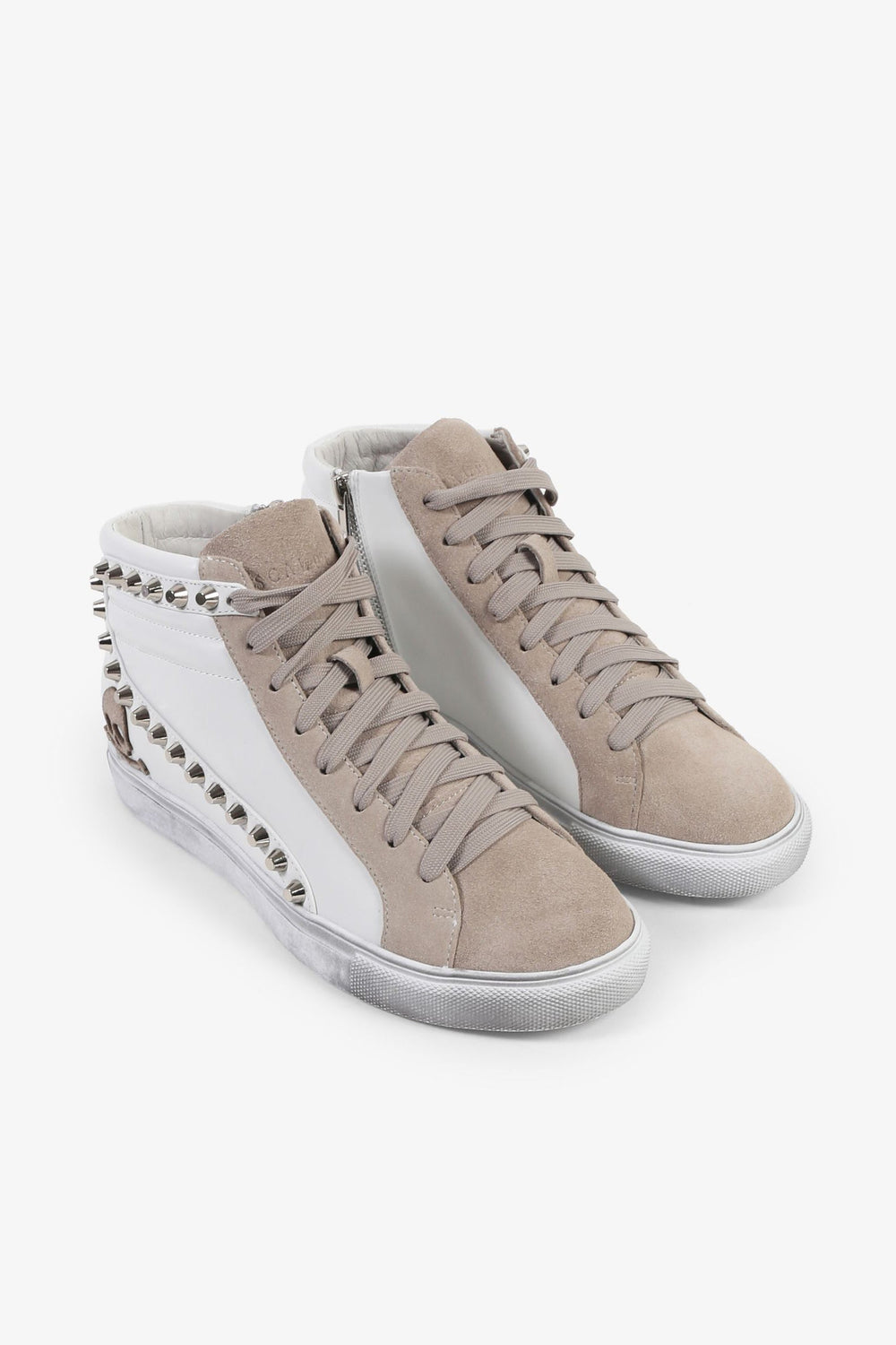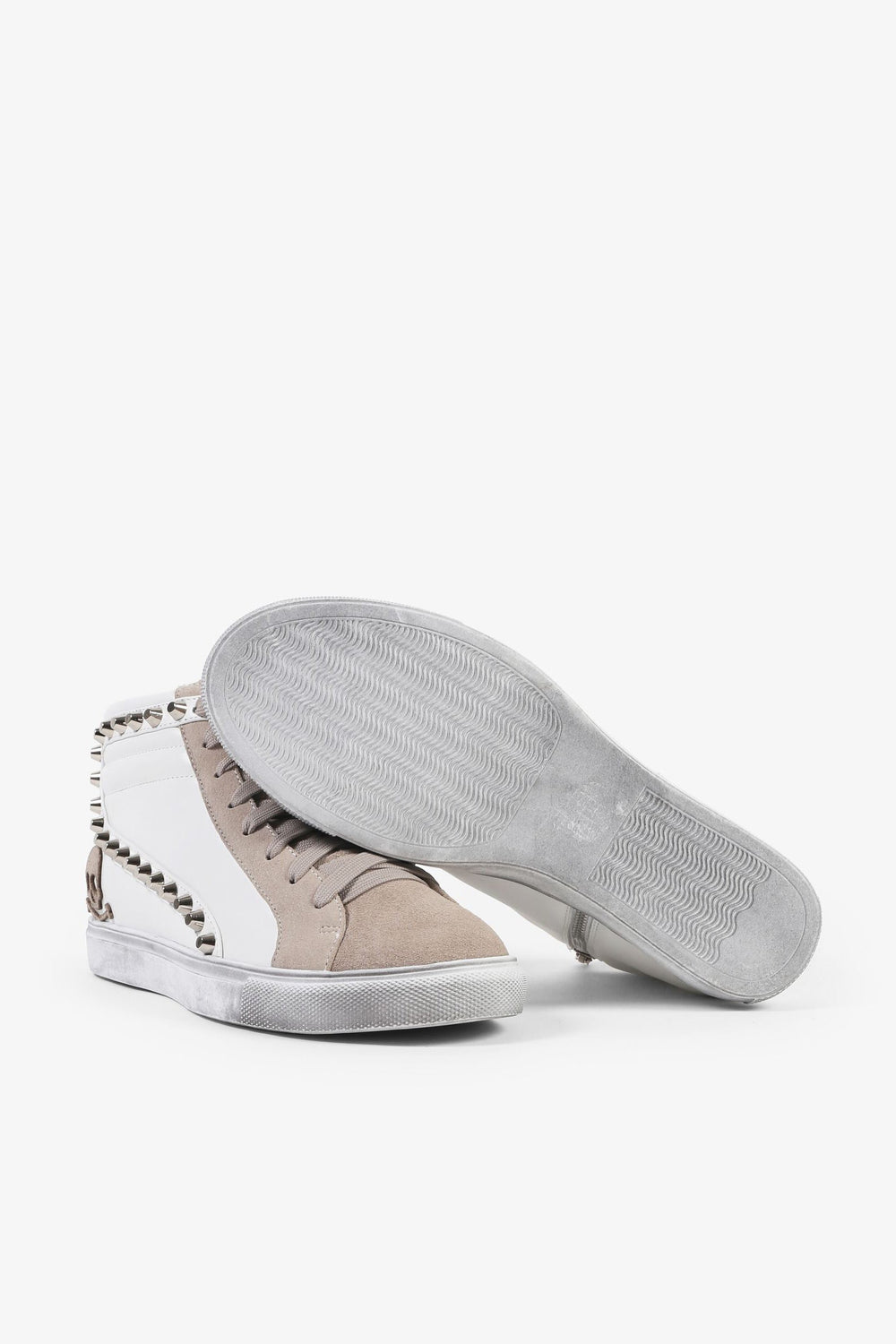 Sneakers tipo bota confeccionada piel. Cierre con cordones a tono y cremallera lateral, suela de goma y detalle de tachuelas y calavera bordada lateral.