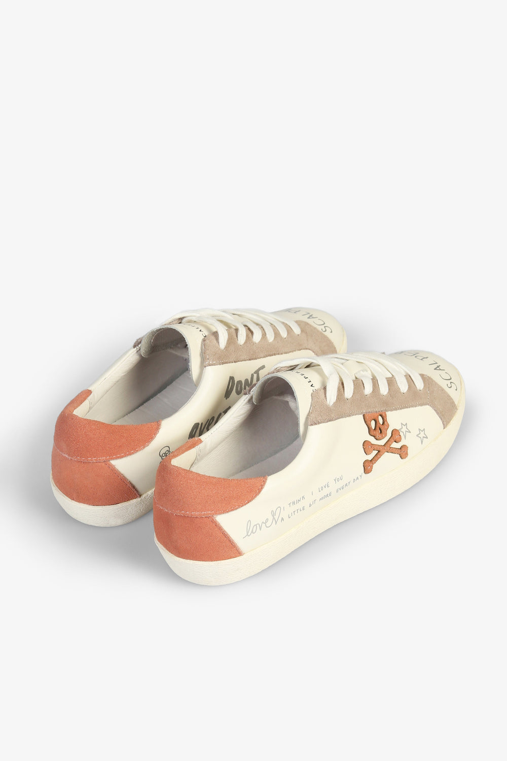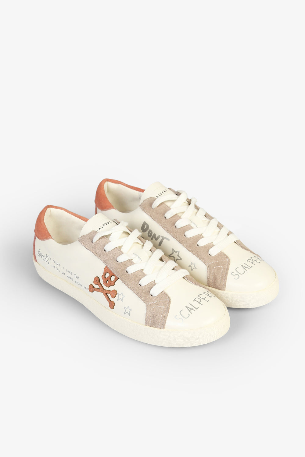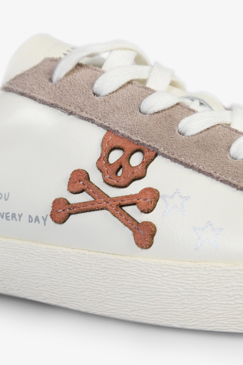 Sneakers bajas confeccionadas en piel. Cierre con cordones a contraste, suela de goma y detalle de prints y calavera lateral.
