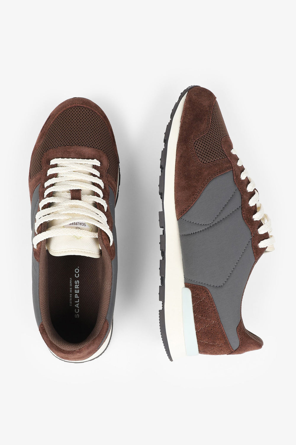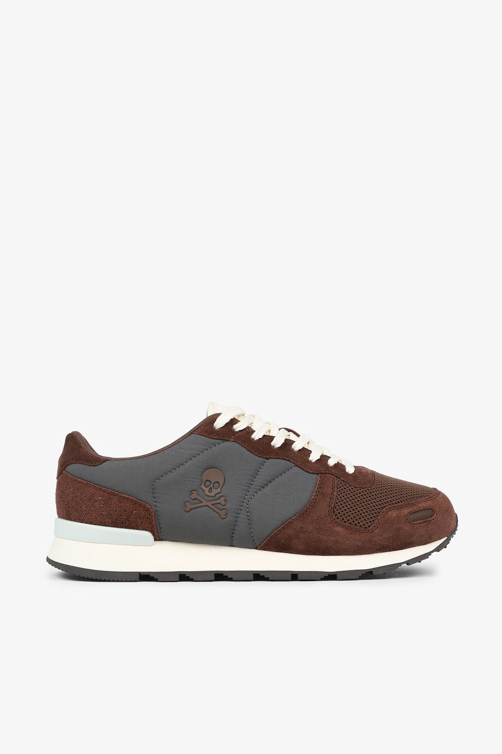 Sneakers confeccionadas en tejido combinado de piel en serraje y nailon.