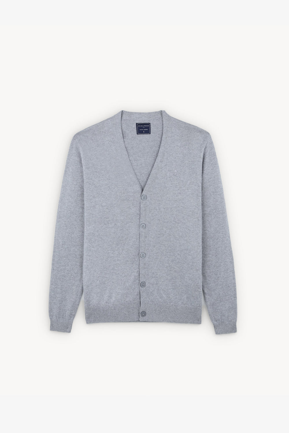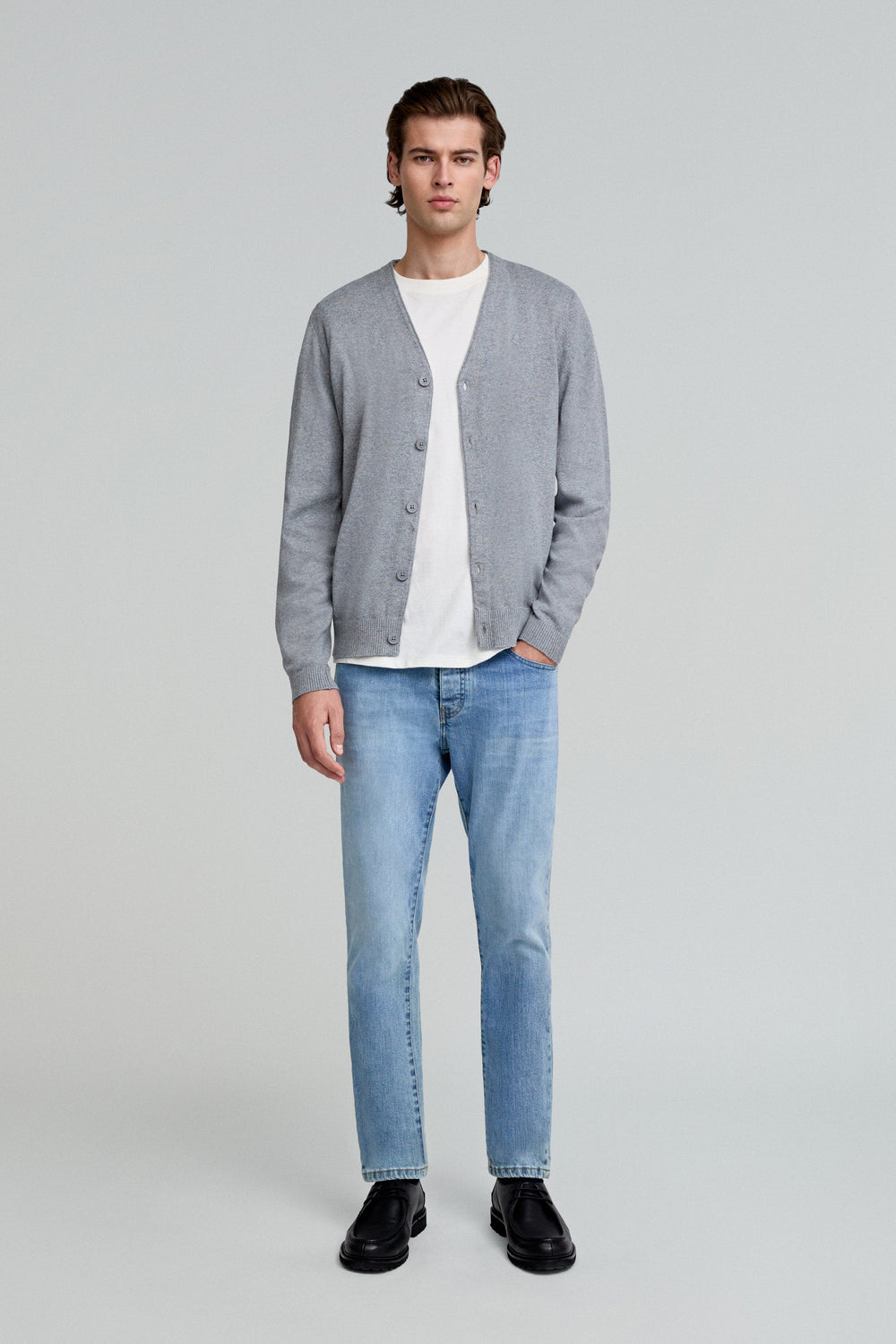 Cárdigan confeccionado en mezcla de algodón BCI y cashmere. Manga larga. Cierre mediante abotonadura frontal.