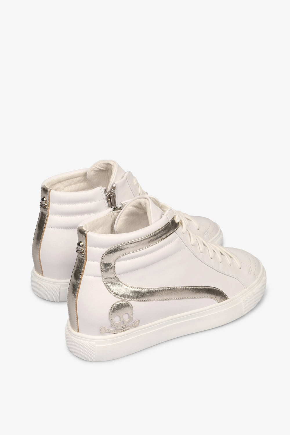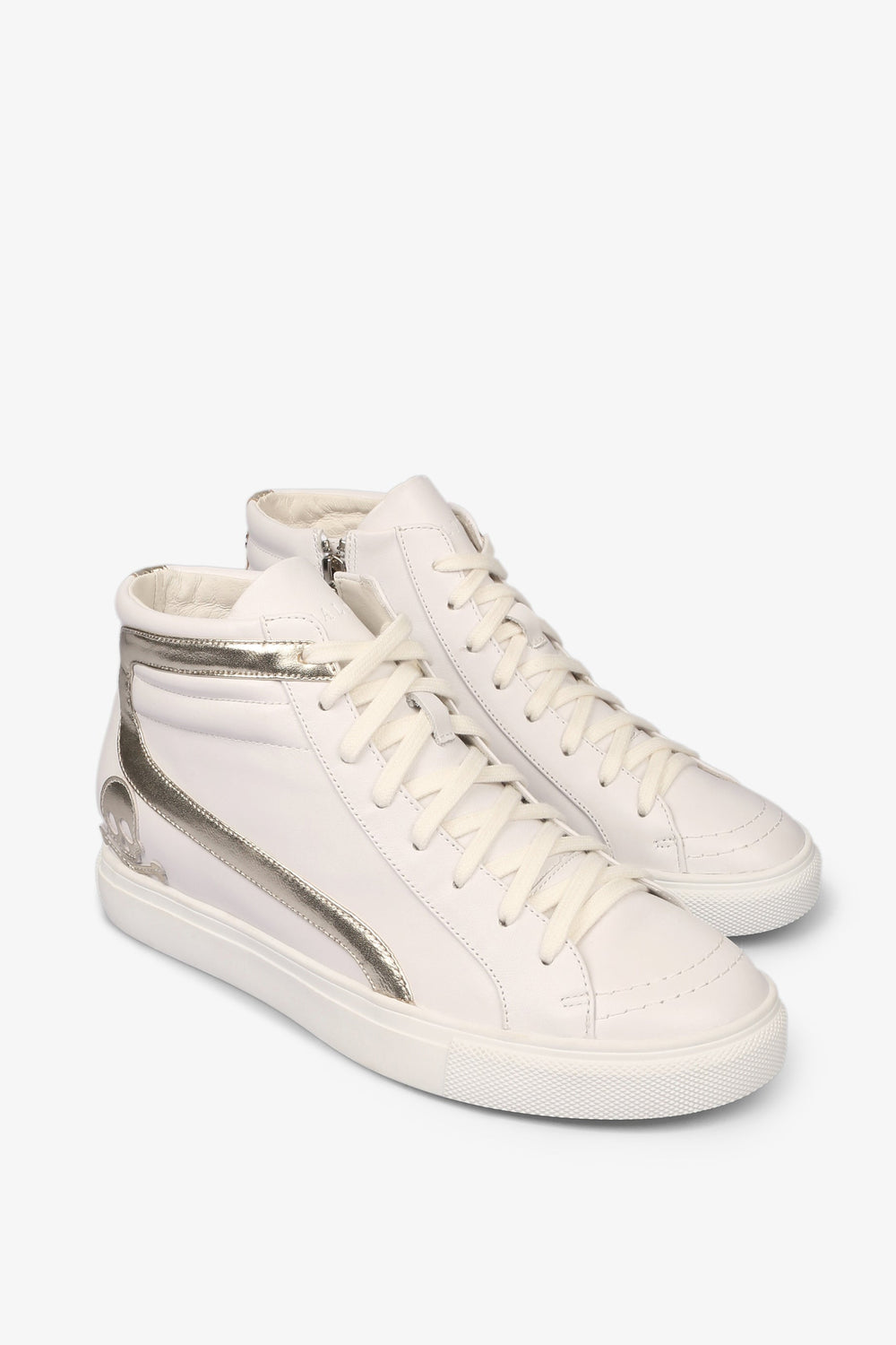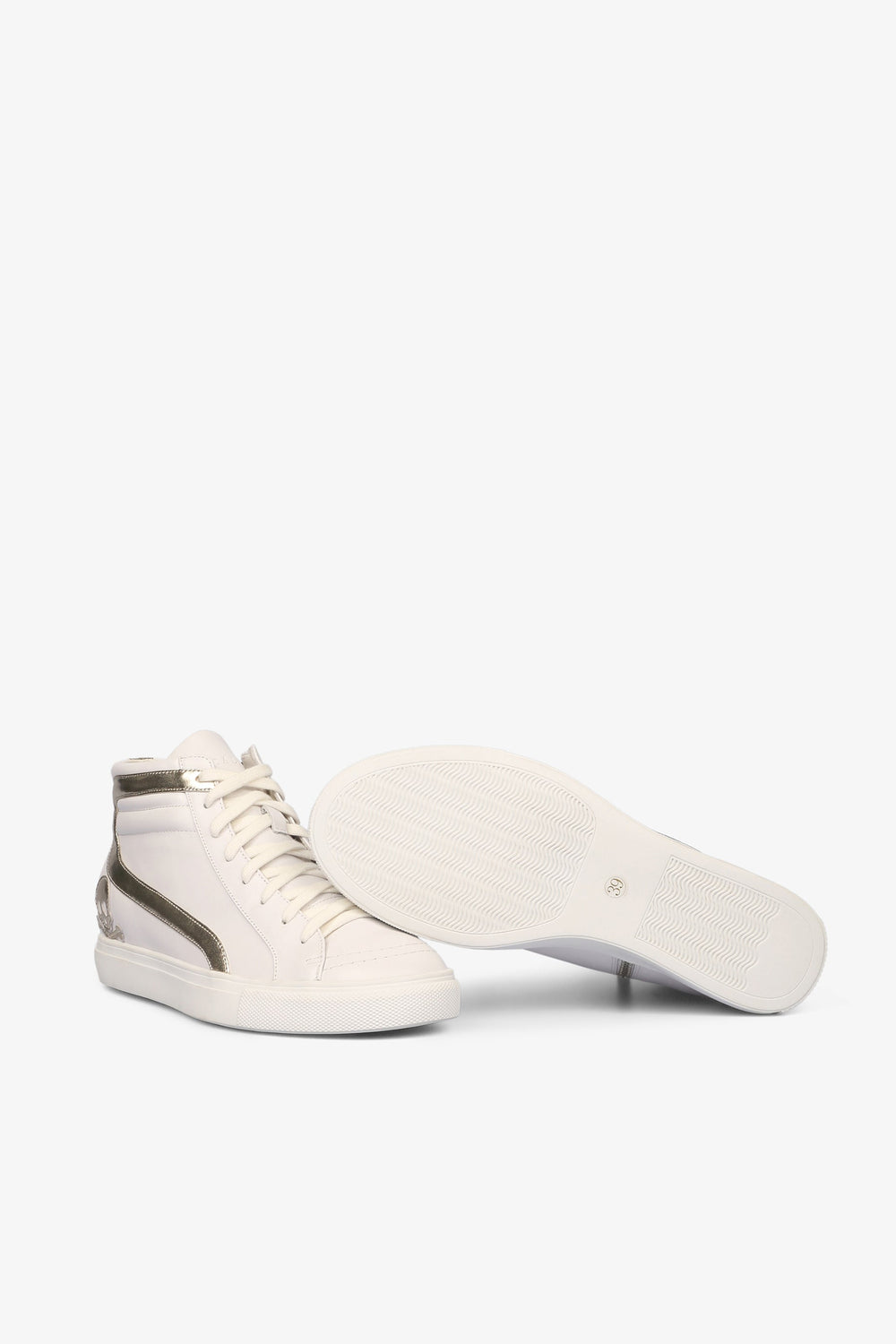 Sneakers de bota alta con detalles dorados.