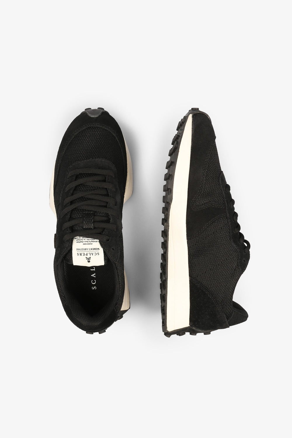 Sneakers con suela dentada y subida.