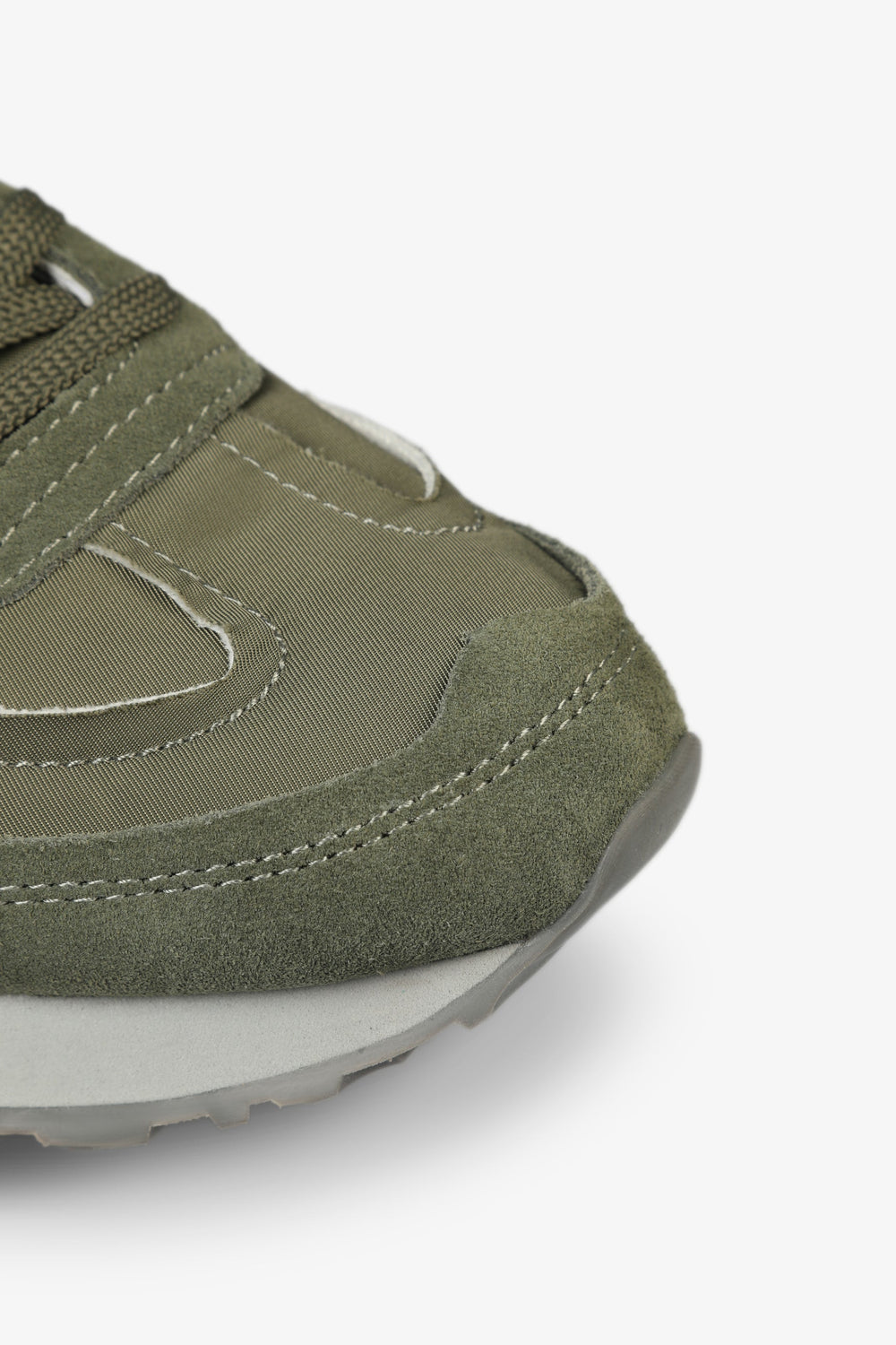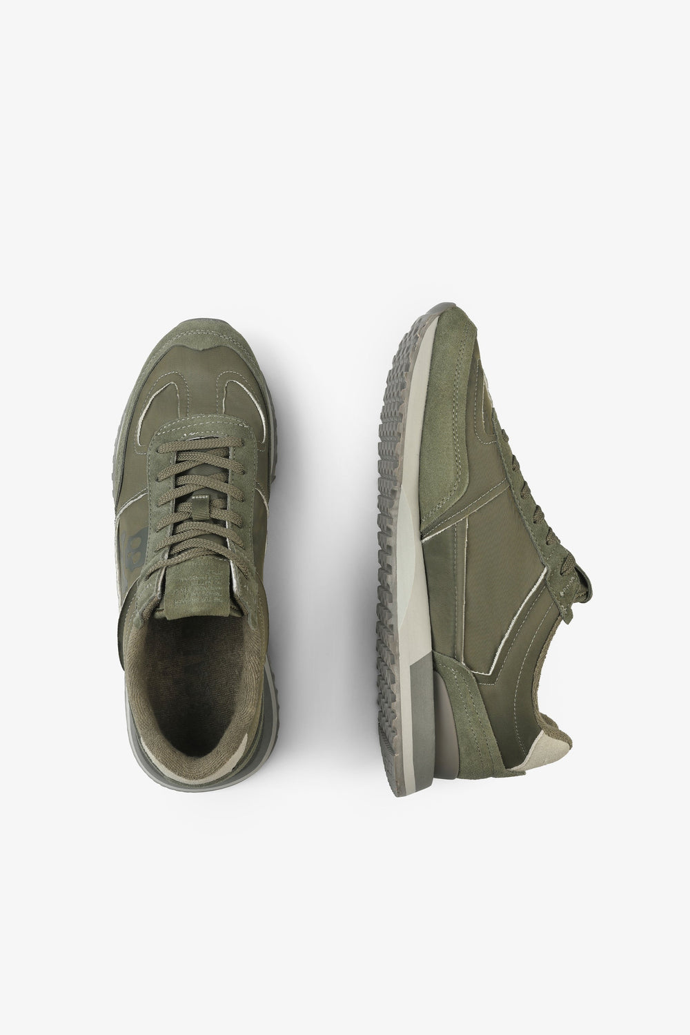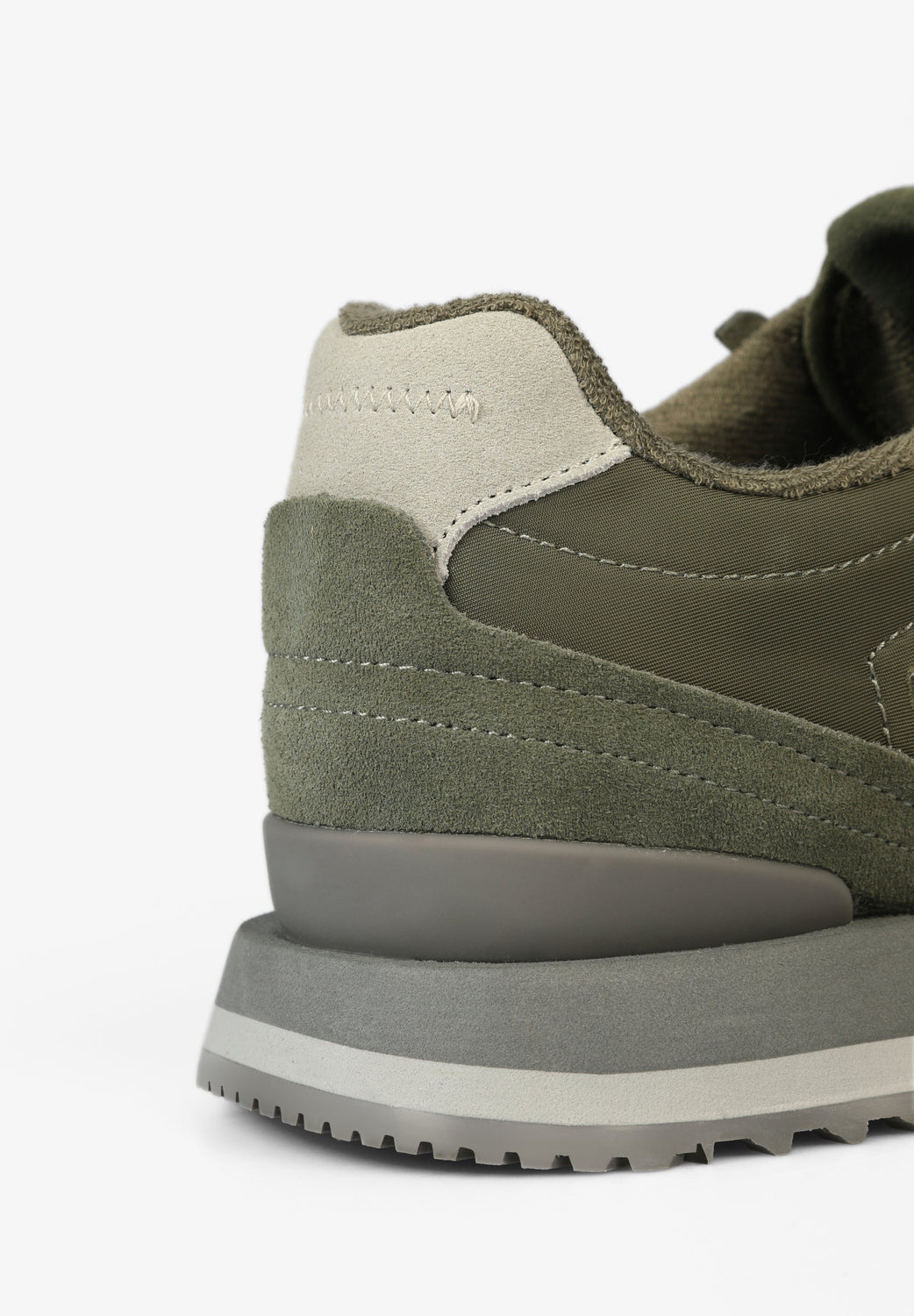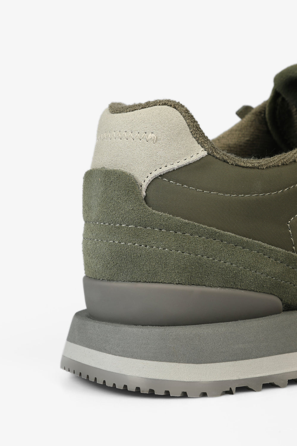- Confeccionada en nylon y piel reciclada acabada en ante