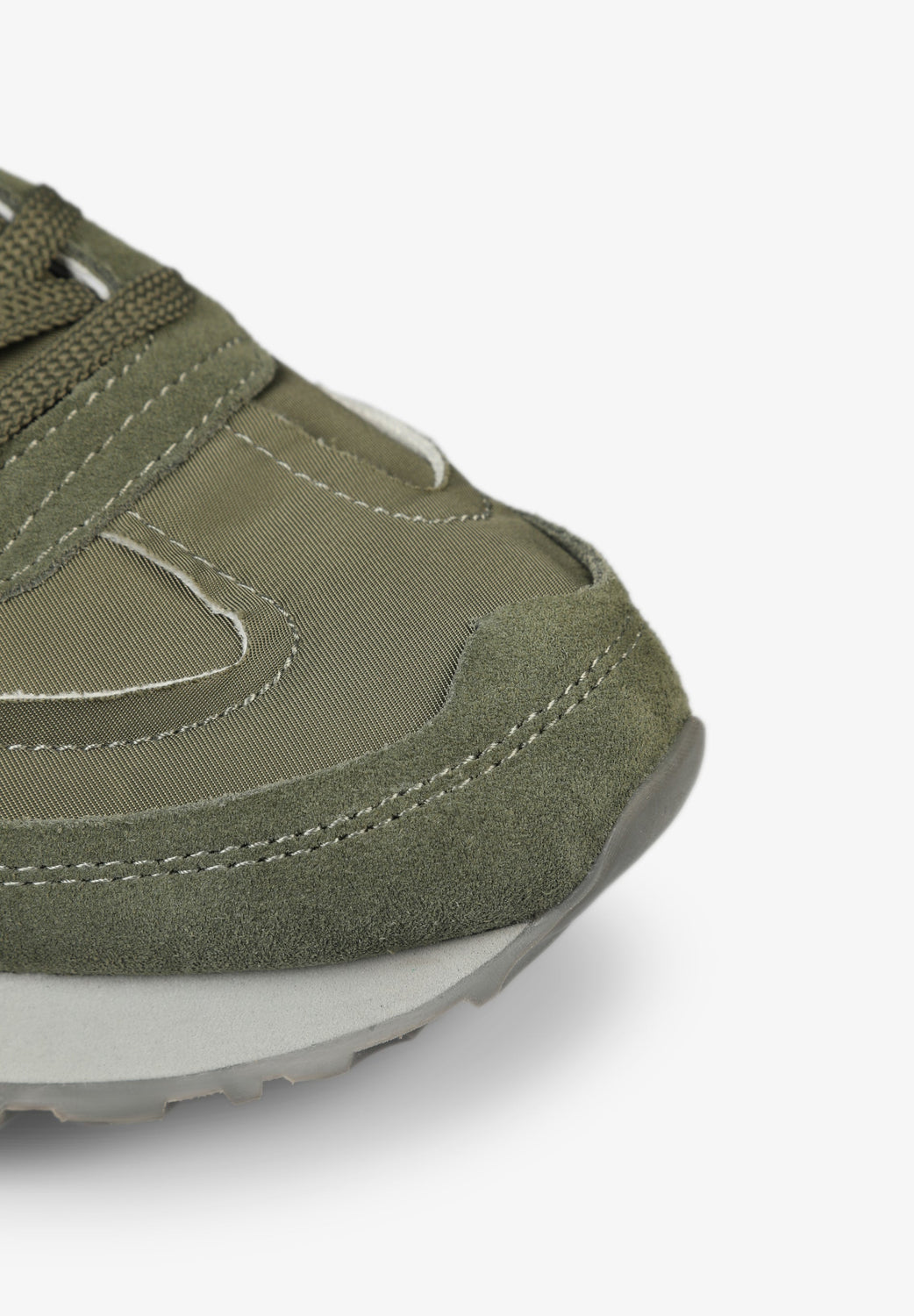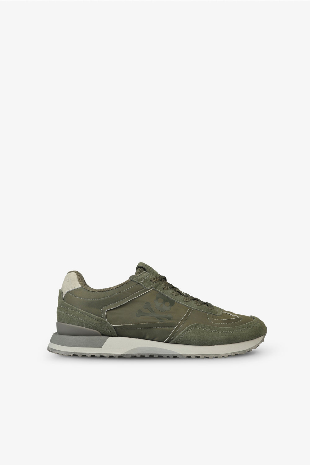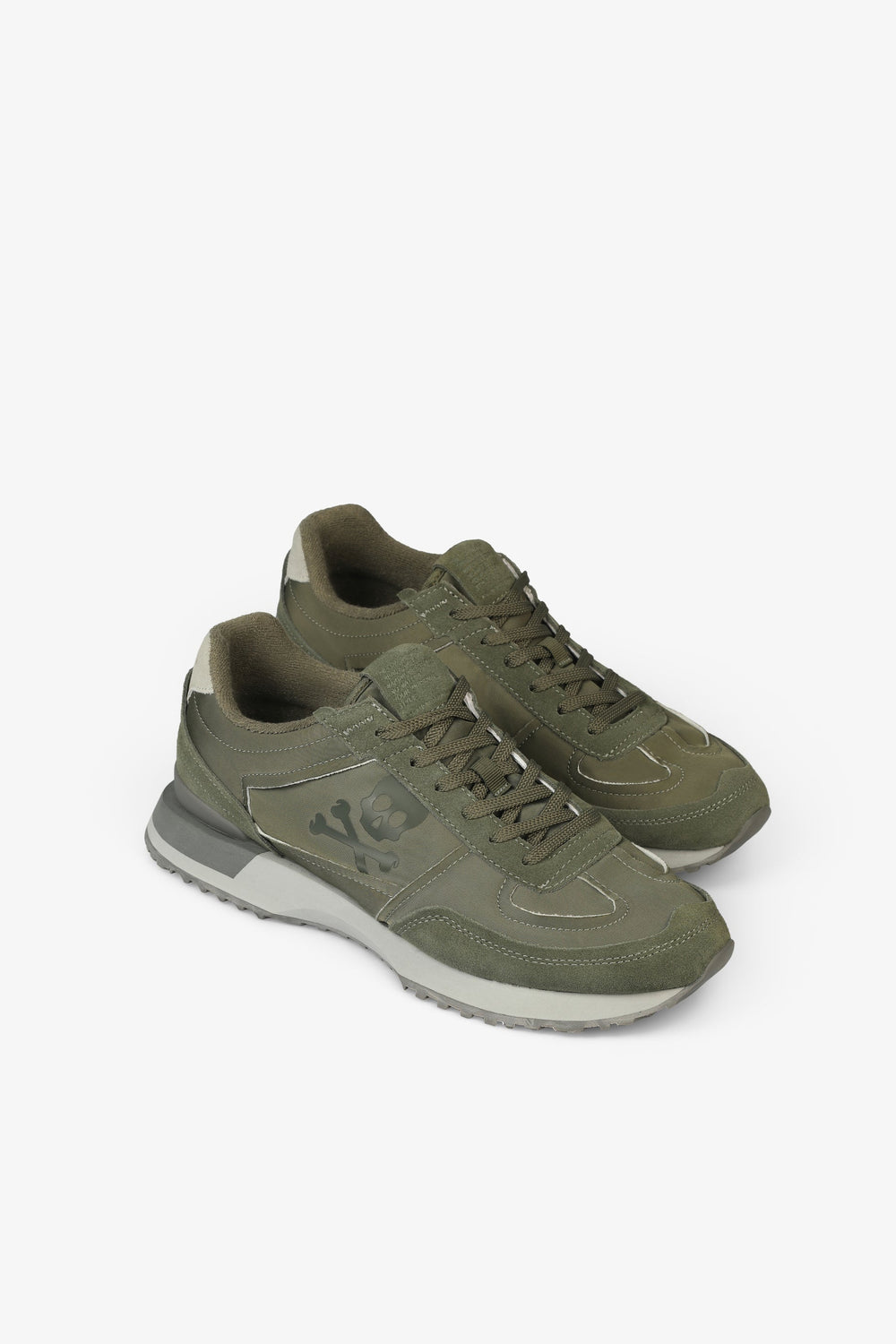 - Confeccionada en nylon y piel reciclada acabada en ante