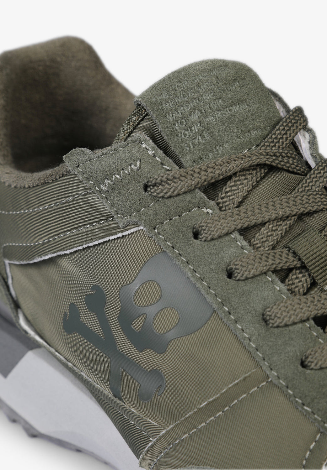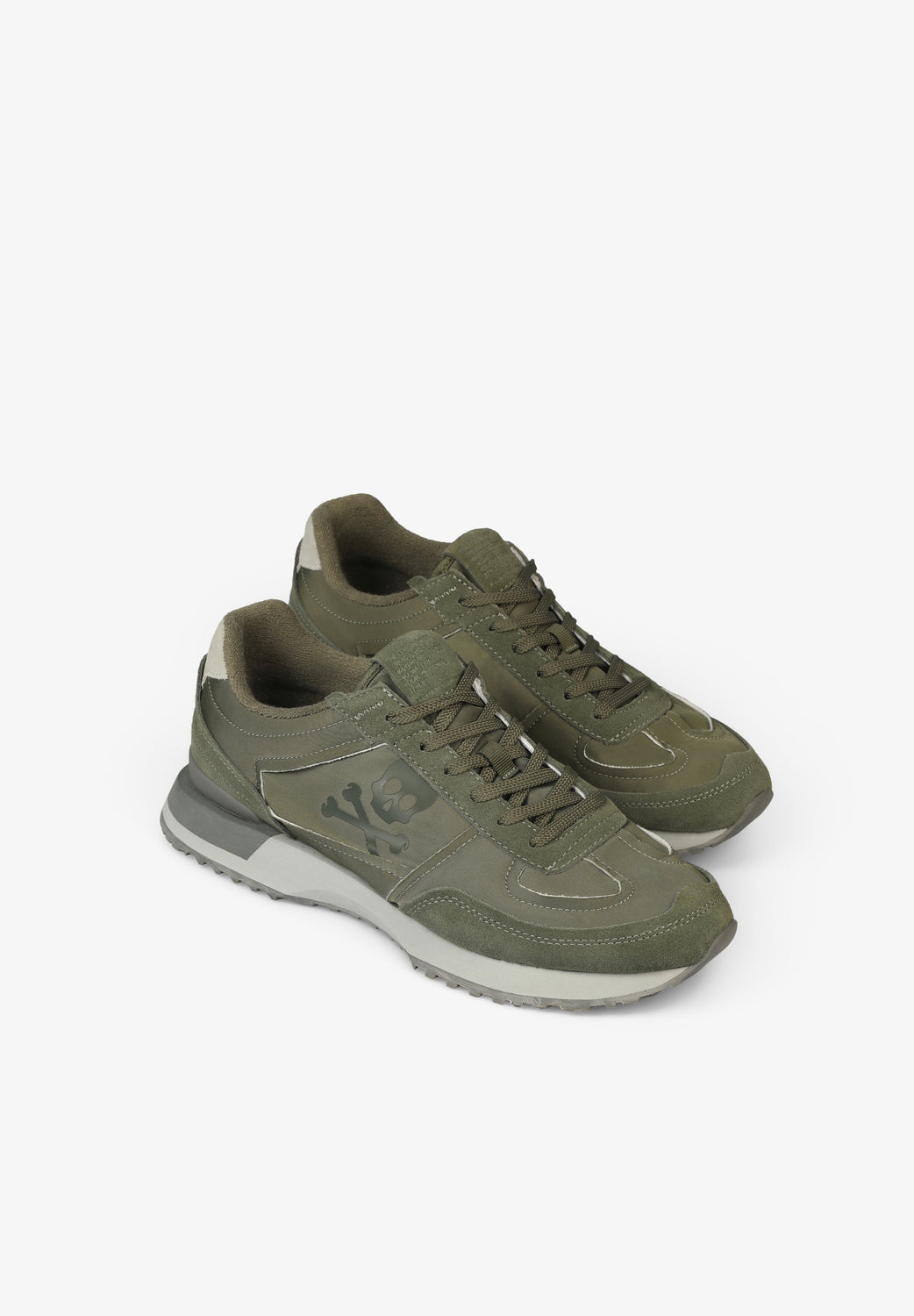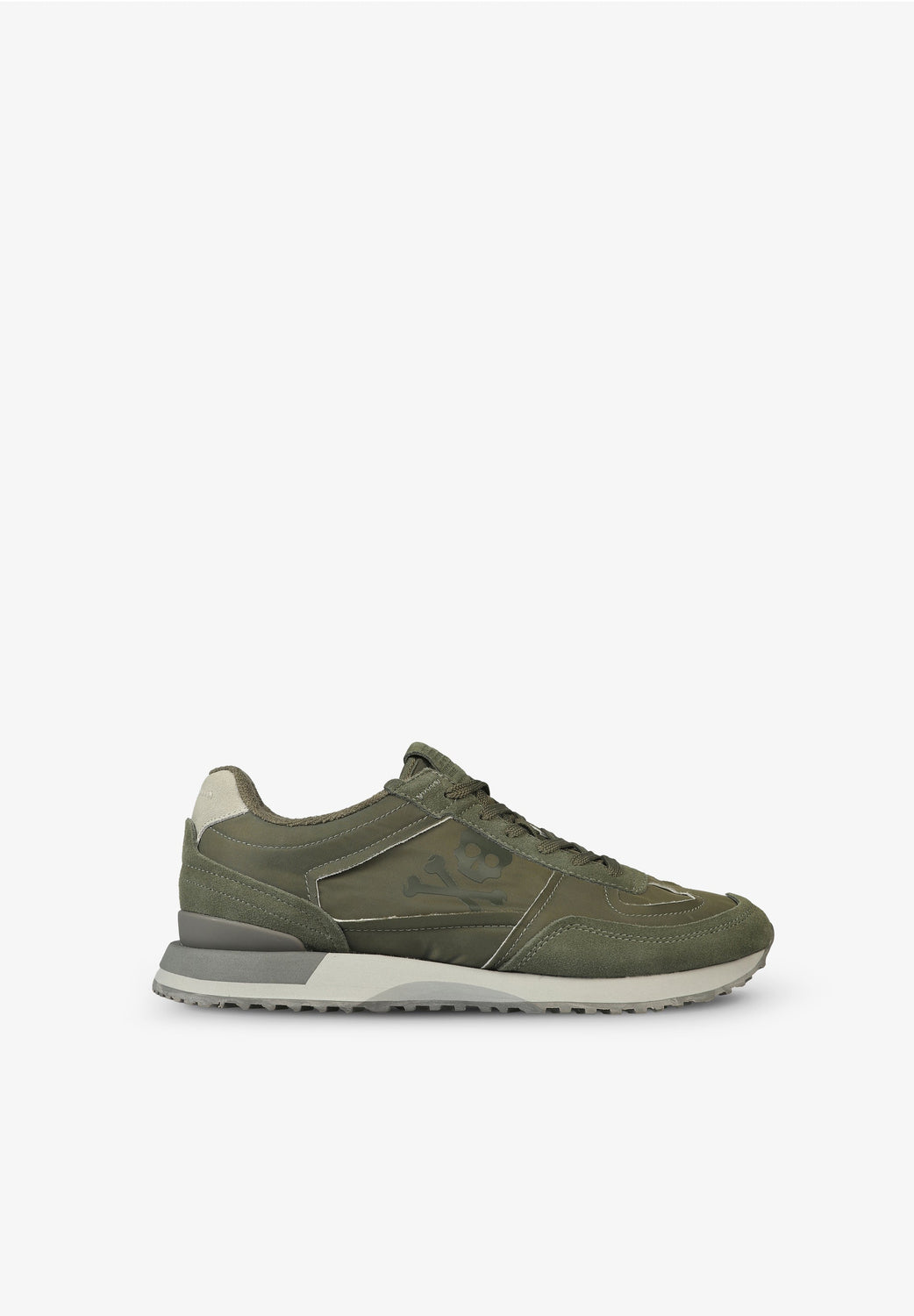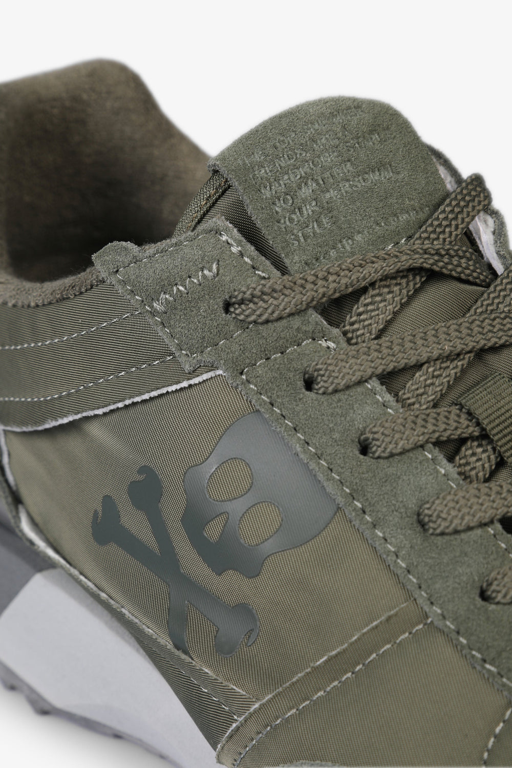 - Confeccionada en nylon y piel reciclada acabada en ante