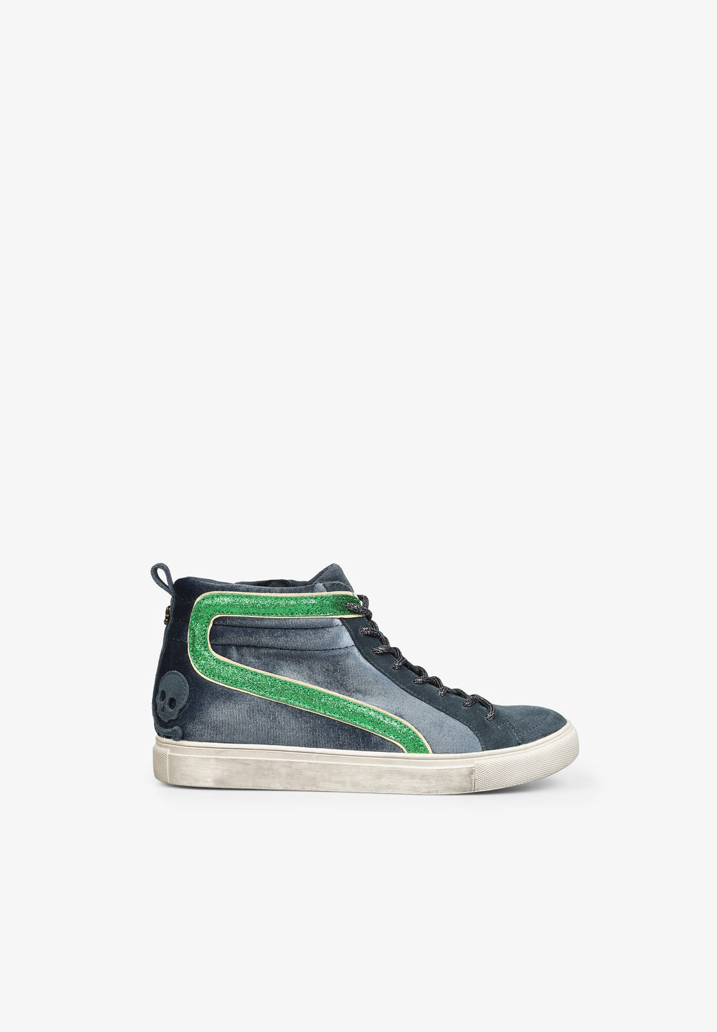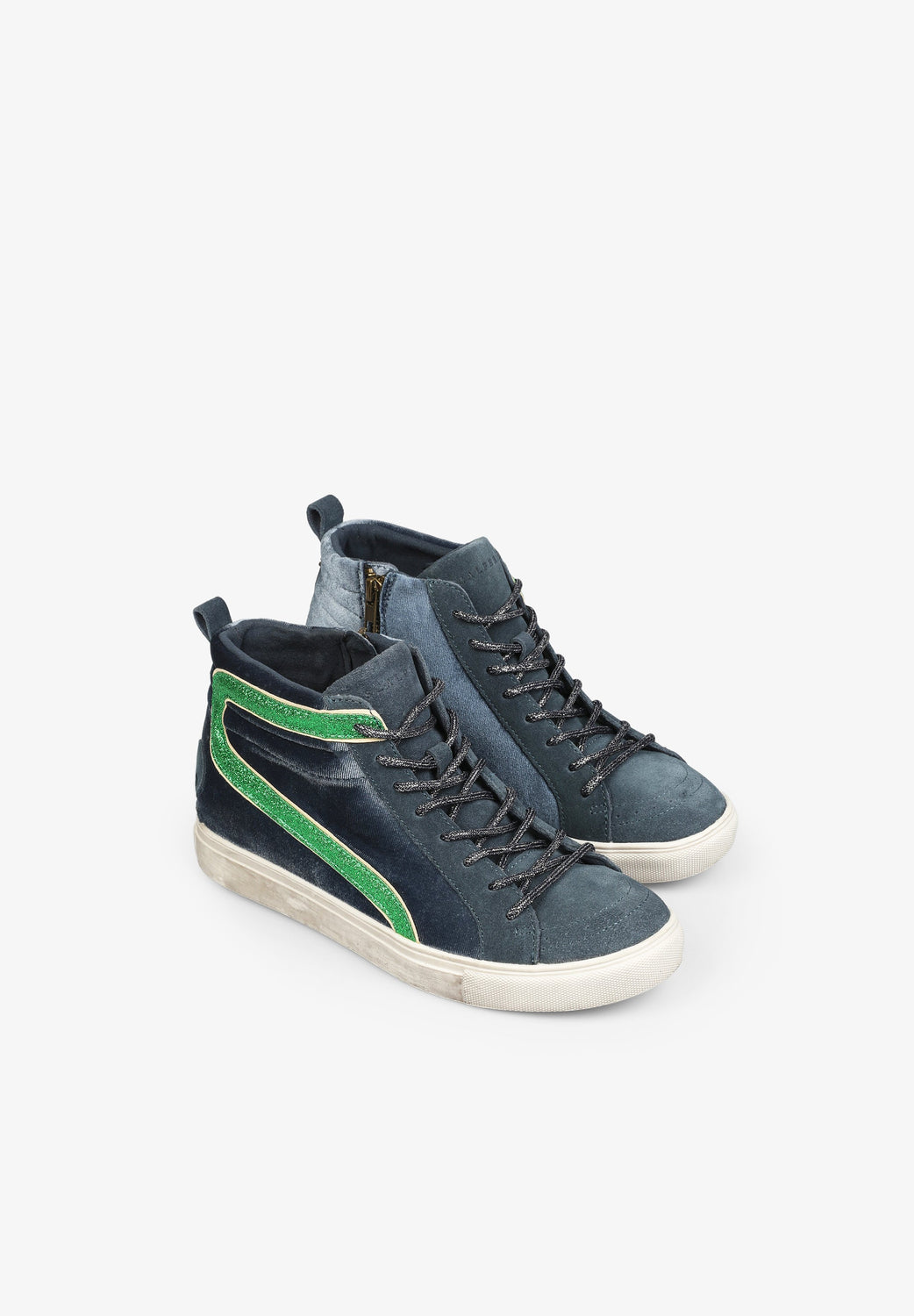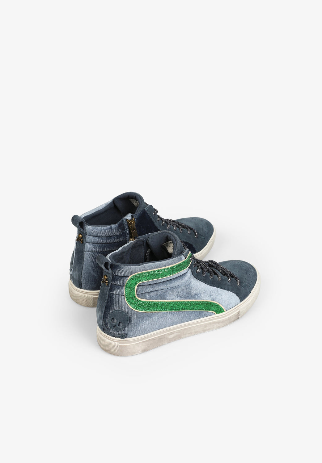- Cierre con cremallera lateral y cordones con detalles en lurex