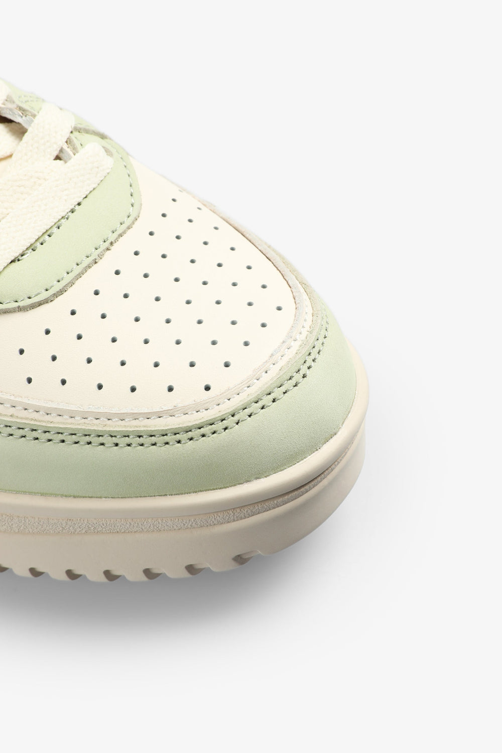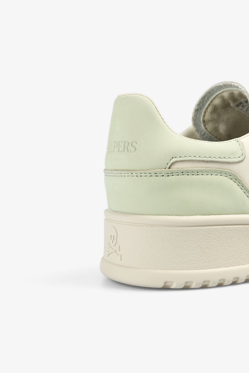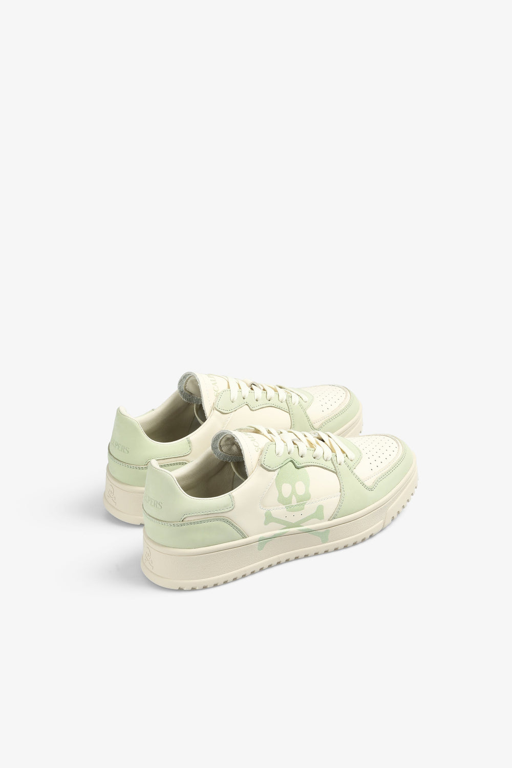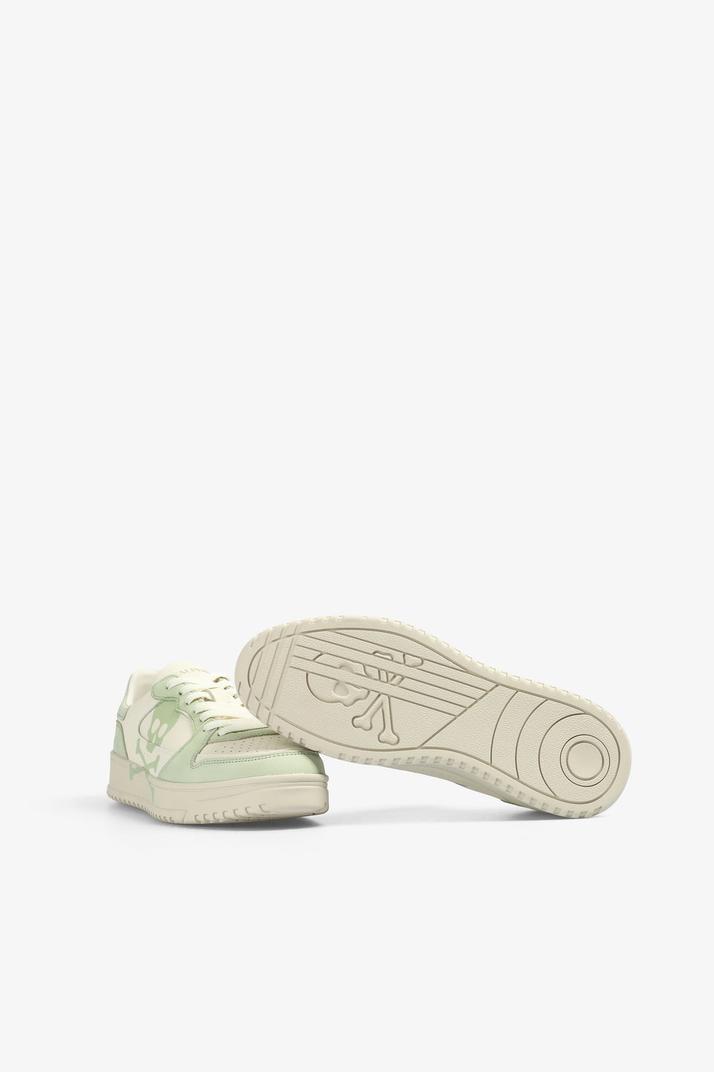 Sneakers con detalle de calavera lateral en glitter. Confeccionadas en piel. Cierre con cordones a tono. Suela de goma reciclada con detalle de calavera grabada. Talón metalizado.