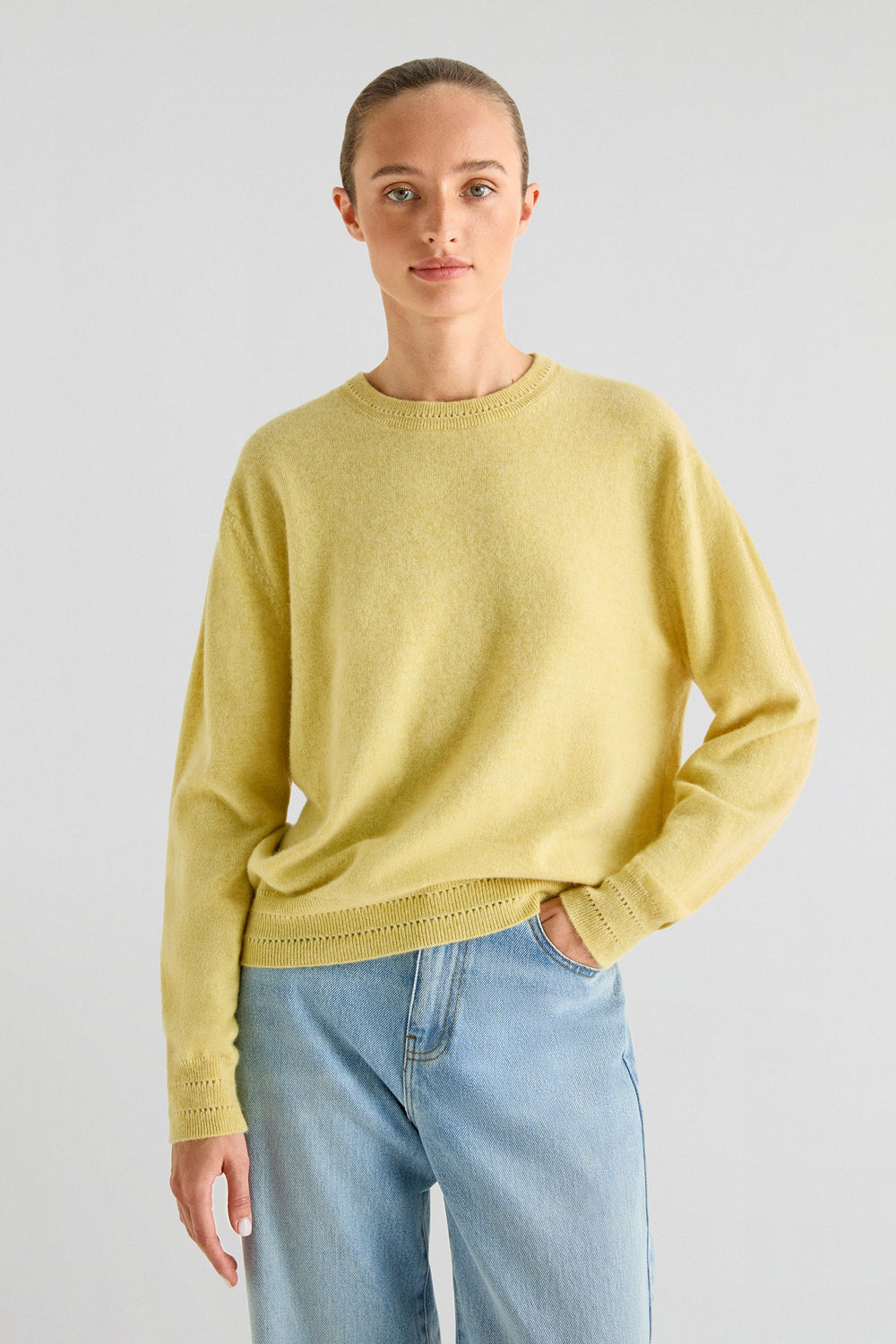 Jersey confeccionado en 100% cashmere. Regular fit, cuello redondo y manga larga.