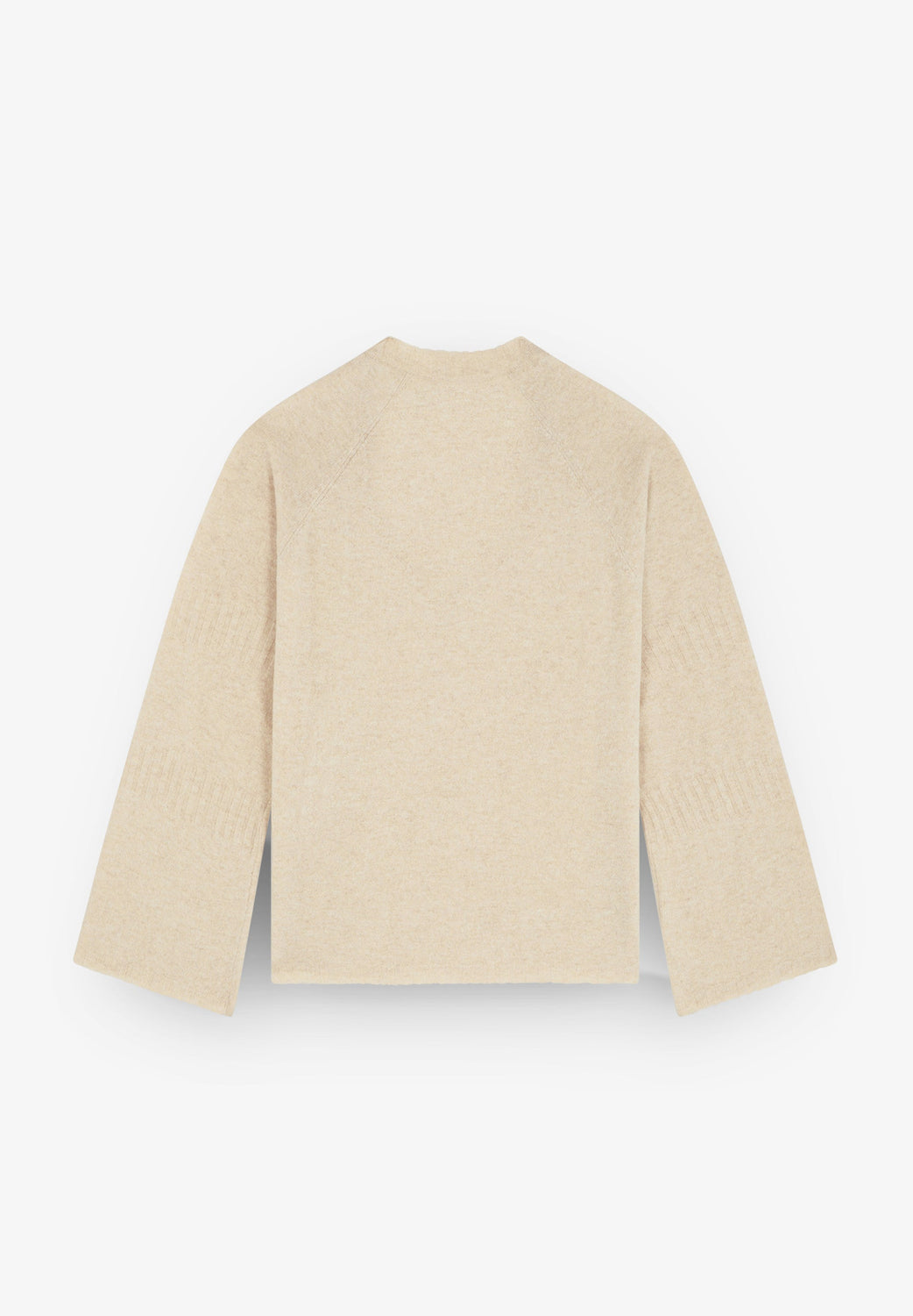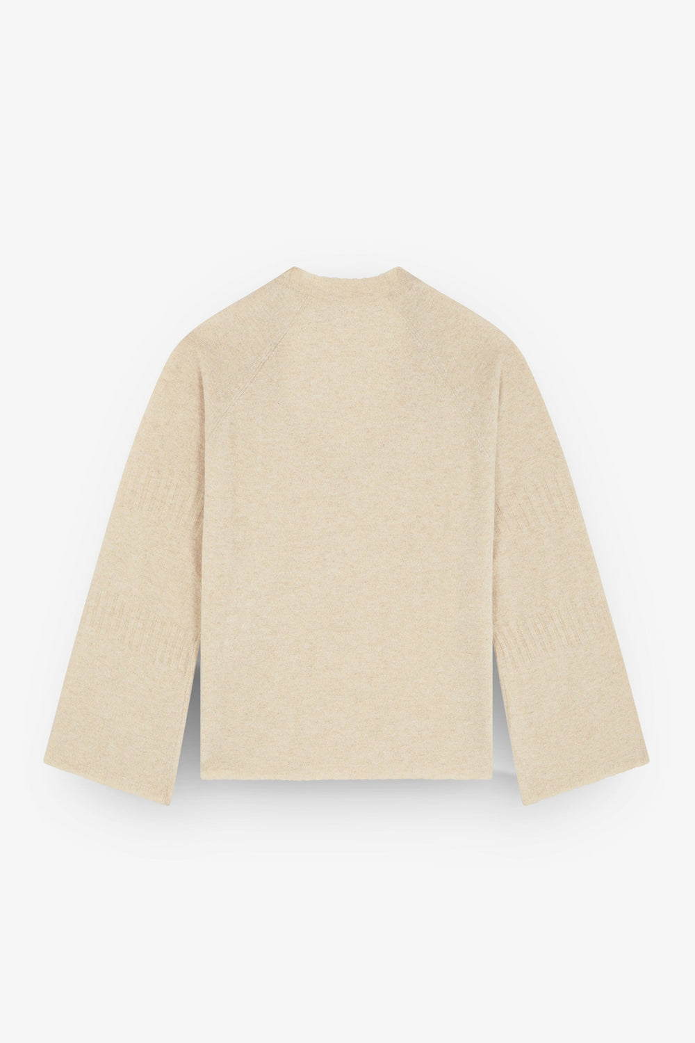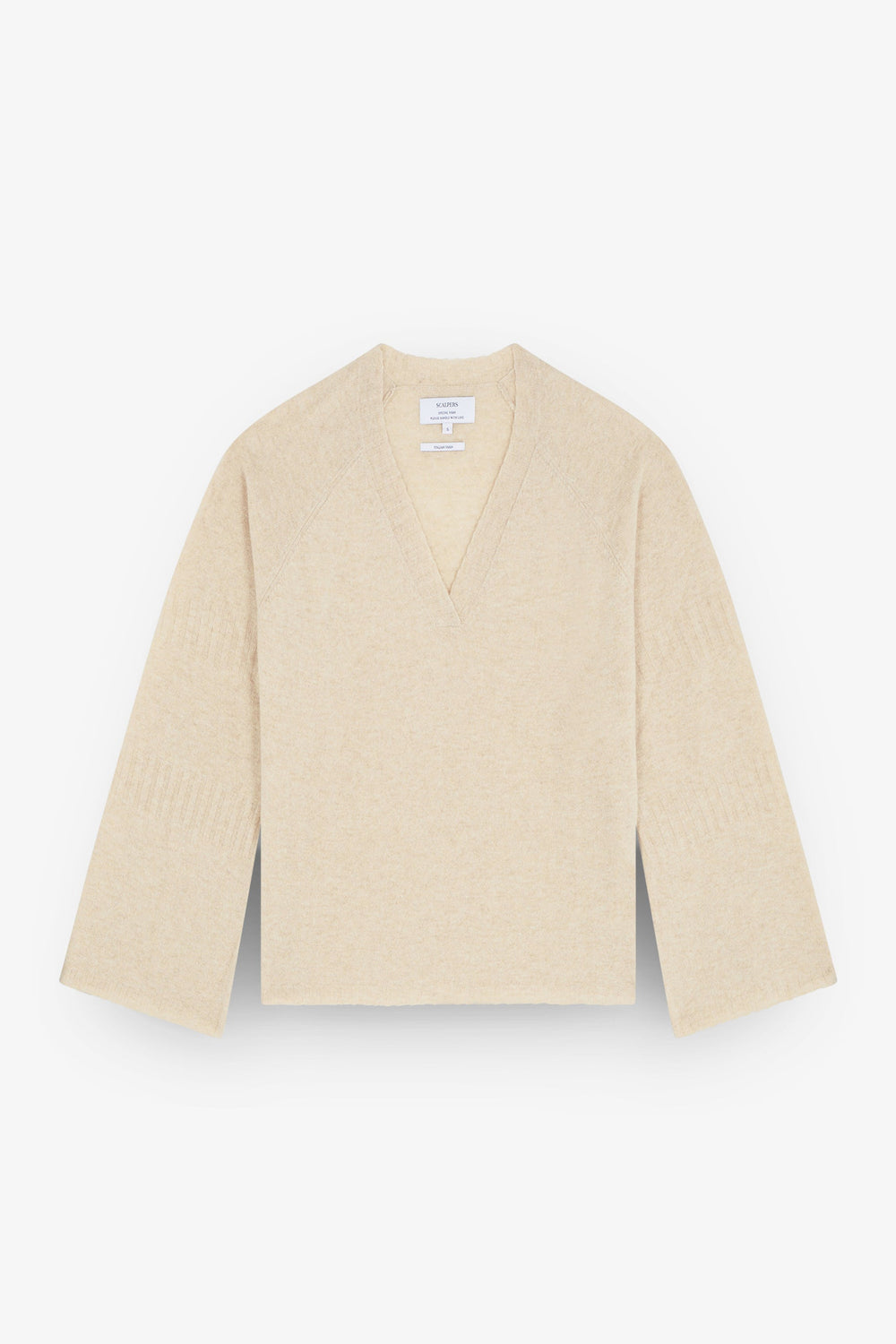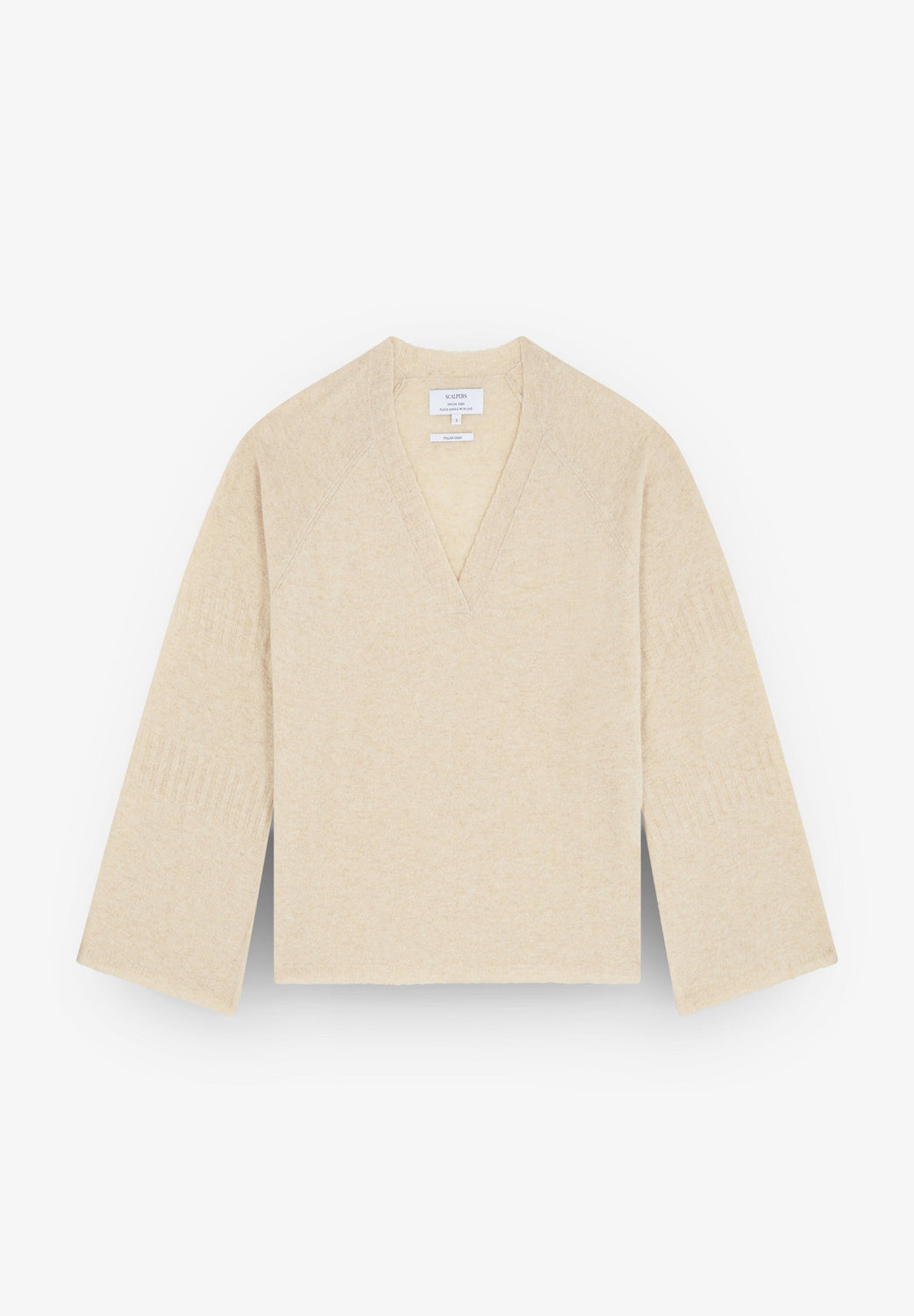 Jersey confeccionado en mezcla de lana. Regular fit, cuello de pico y manga larga con detalles.