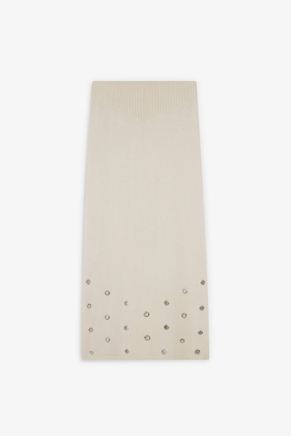 Falda midi de punto confeccionada en mezcla de algodón. Slim fit y detalle de ojales en el bajo.