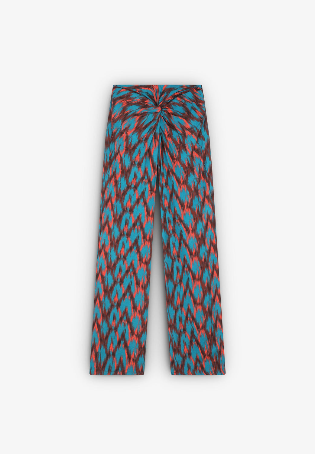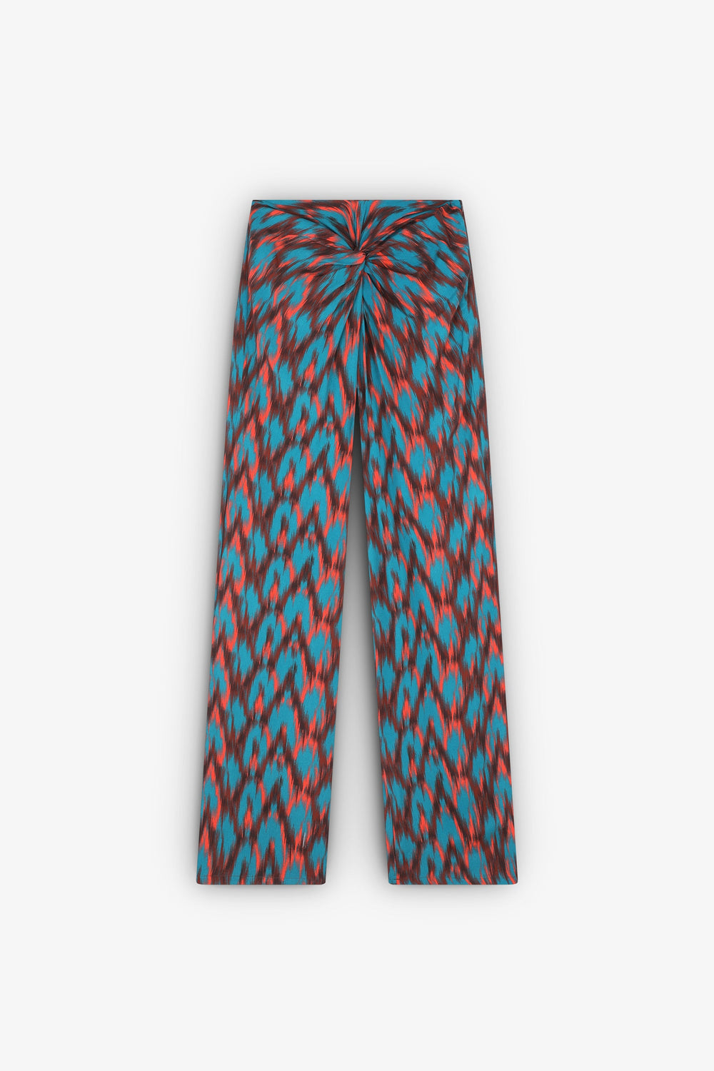 Pantalón con frunce frontal. Confeccionado en tejido fluido. Corte Full Length. Cierre con cremallera lateral.