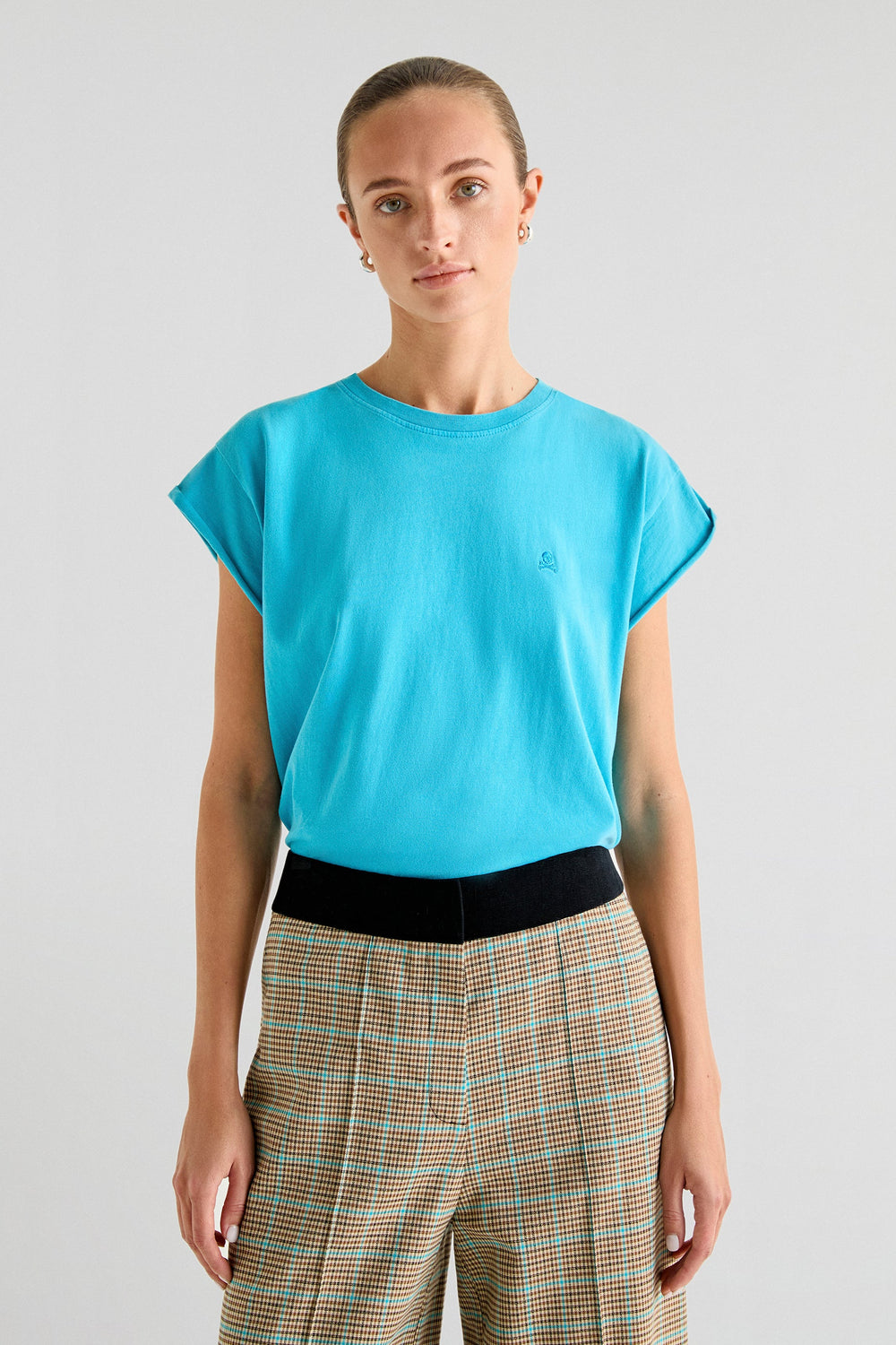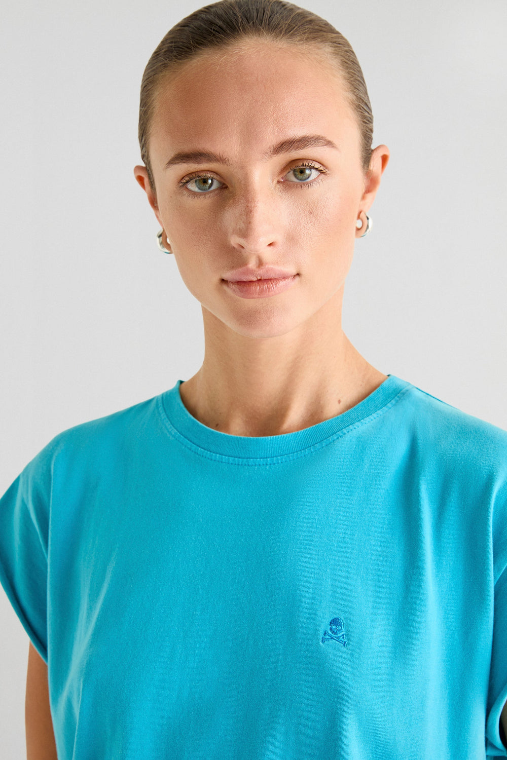 Camiseta confeccionada en 100% algodón BCI. Regular fit, cuello redondo y manga corta. Detalle de calavera bordada a tono.