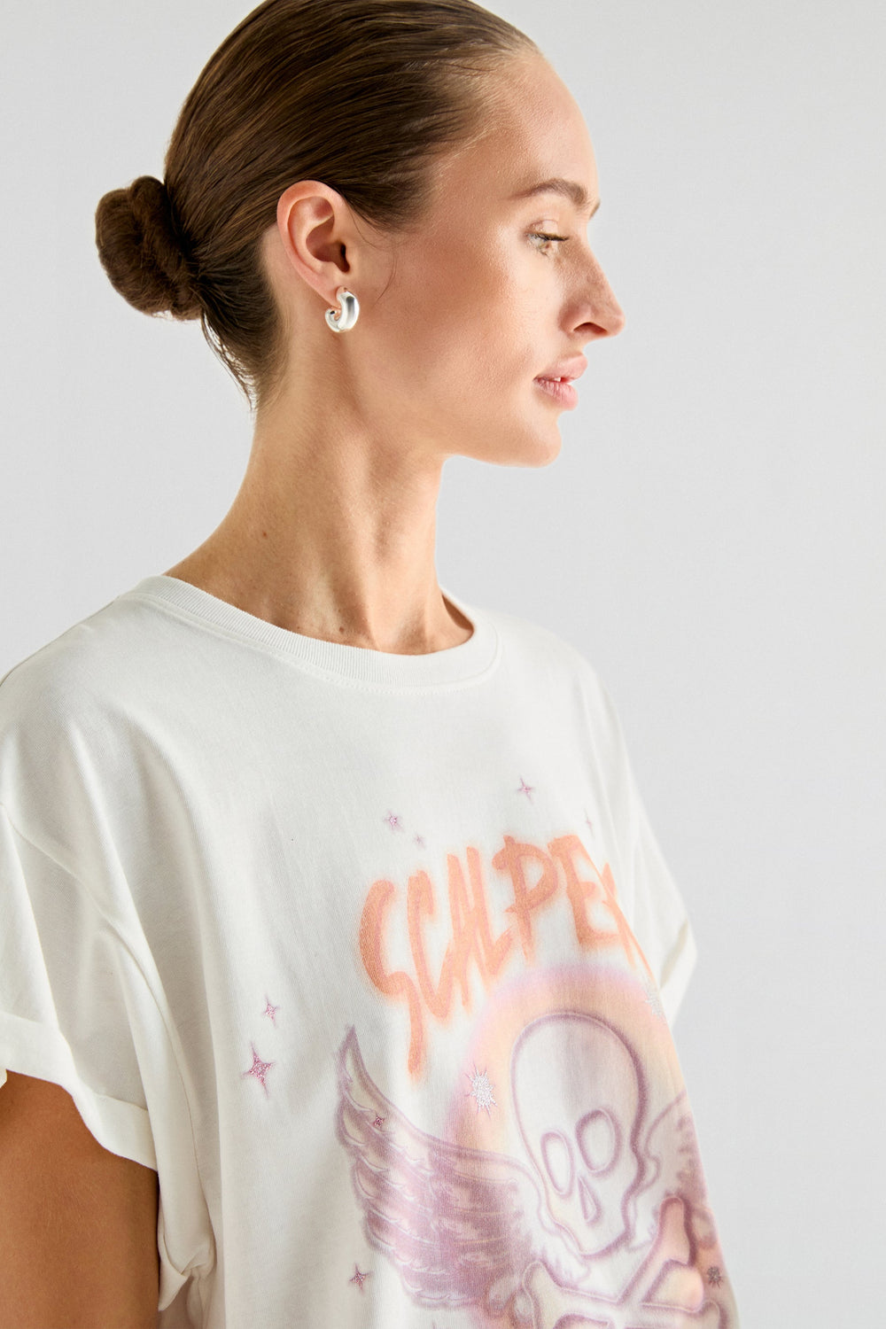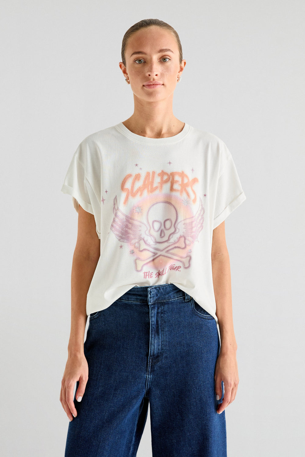 Camiseta confeccionada en 100% algodón BCI. Regular fit, cuello redondo y manga corta. Detalle de print frontal y trasero tipo festival.