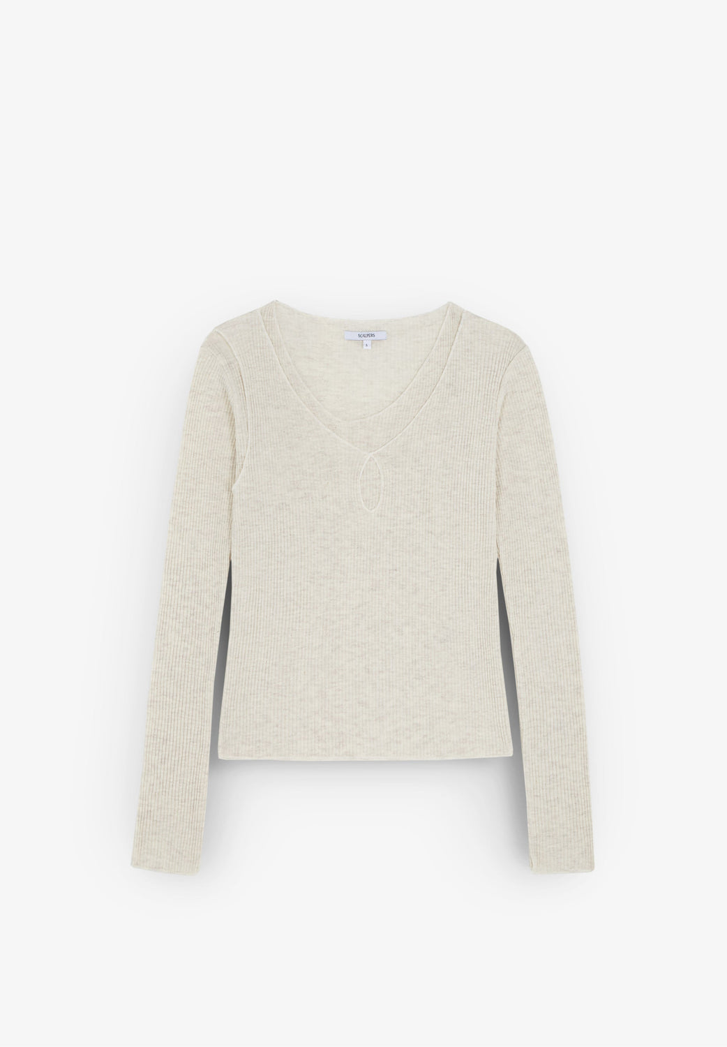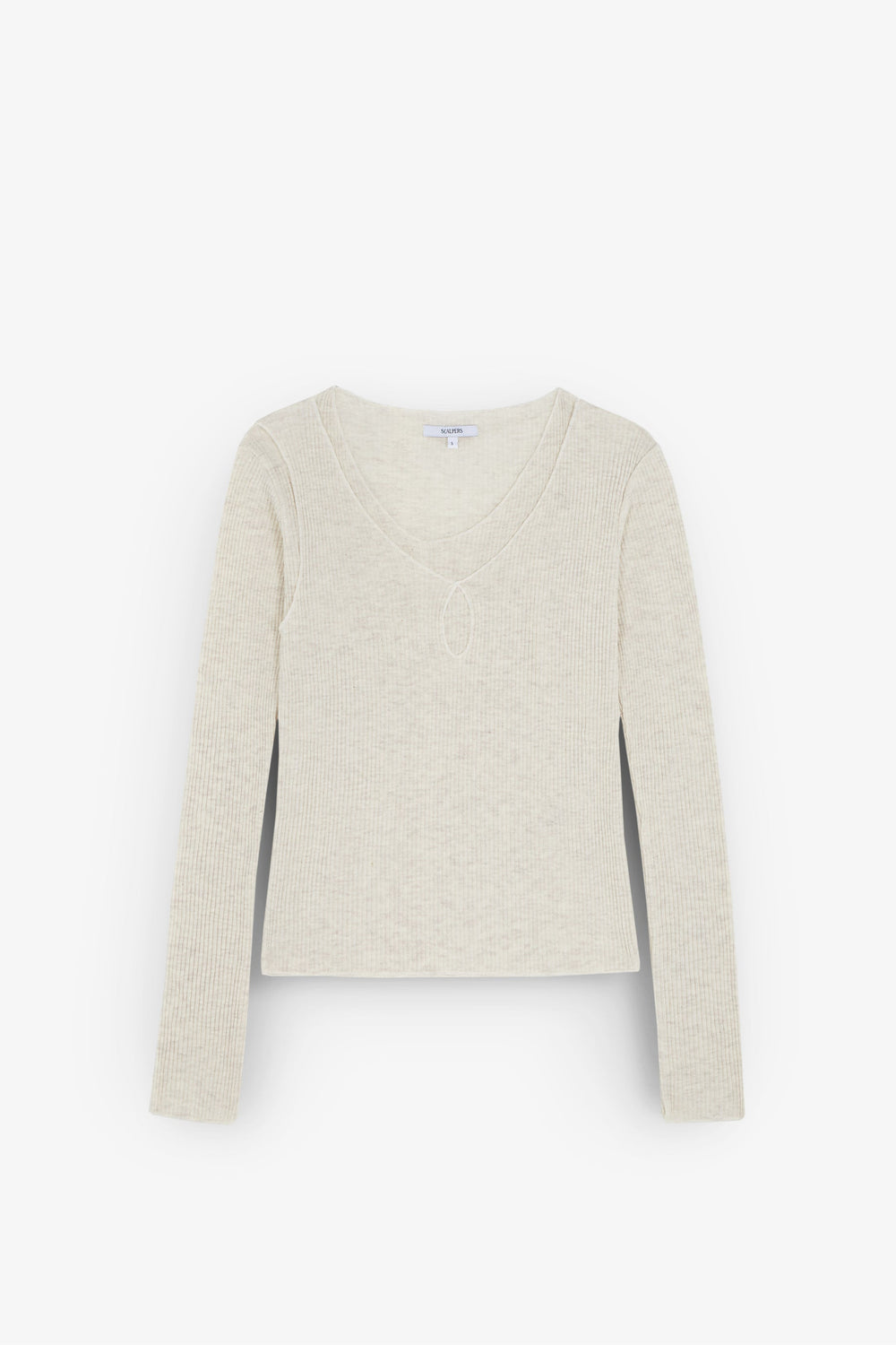Camiseta de canalé confeccionada en algodón ligeramente elástica. Slim fit, escote de pico doble con abertura y manga larga.