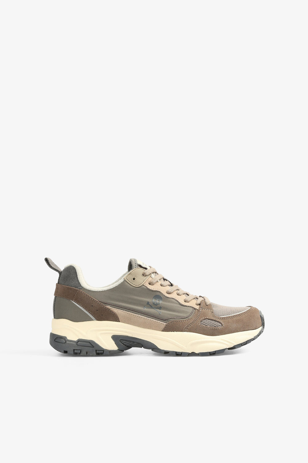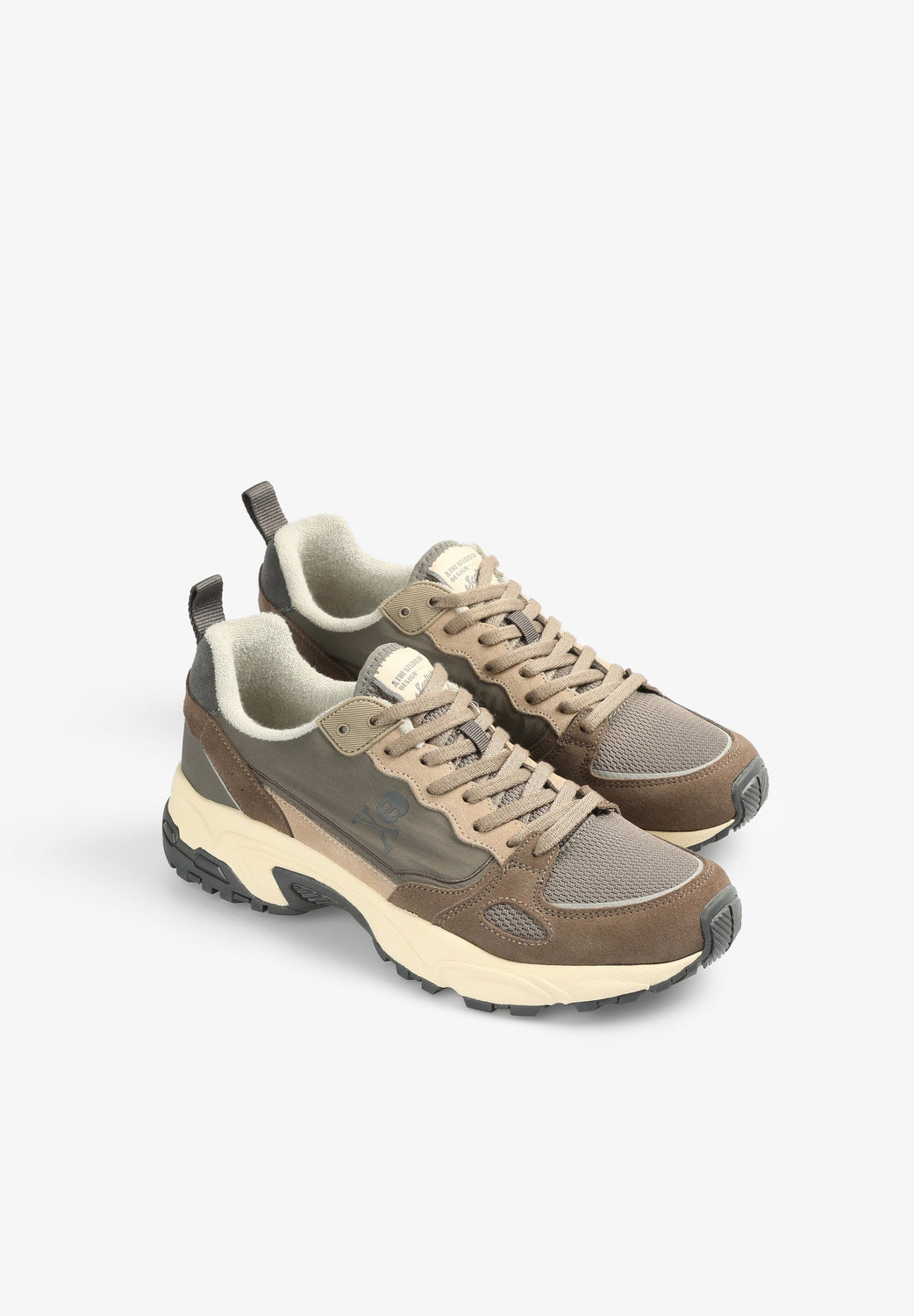 Sneakers combinada con serraje, mesh y tejido técnico.