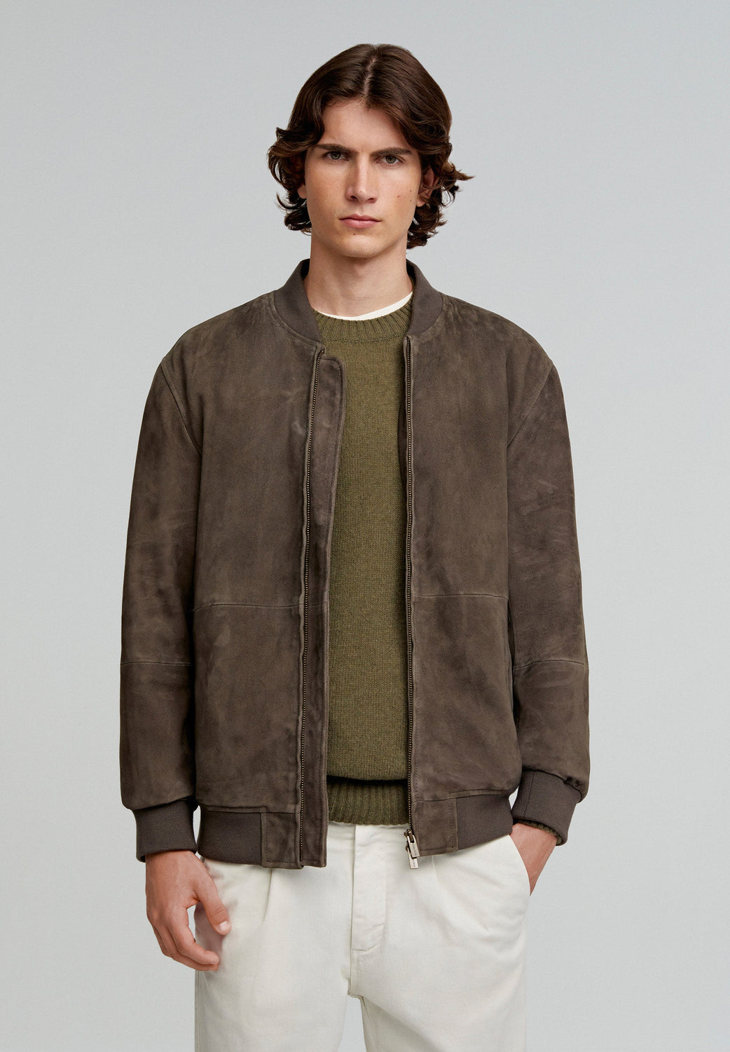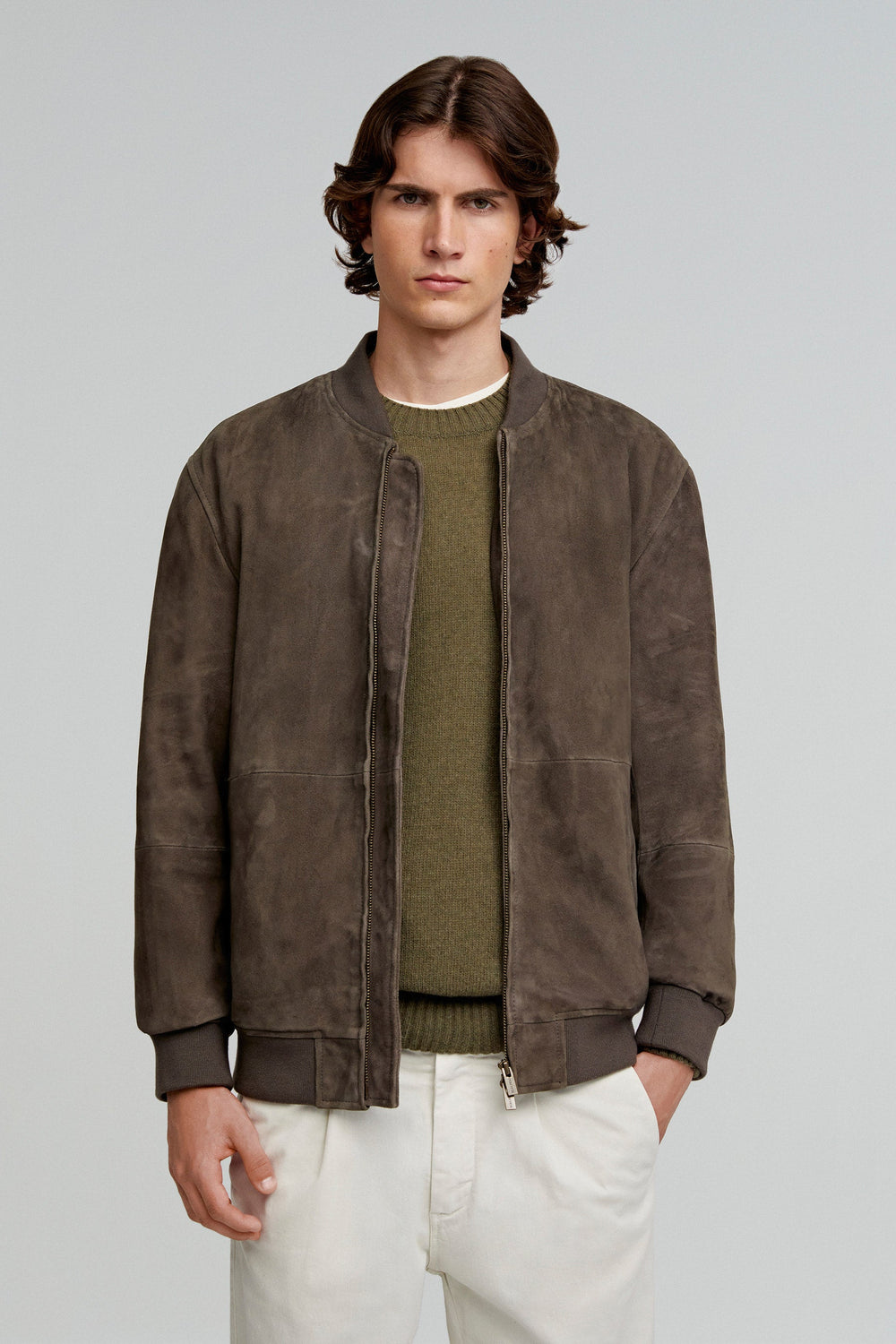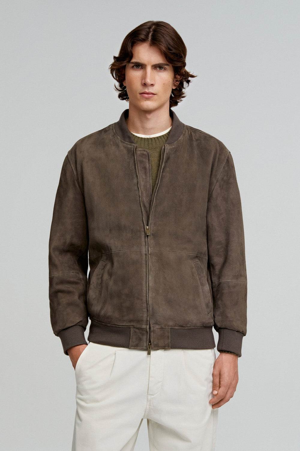 Chaqueta confeccionada en 100% piel. Regular fit, cierre con cremallera y cuello en rib. Manga larga terminada en puño con ribs y bolsillos laterales.