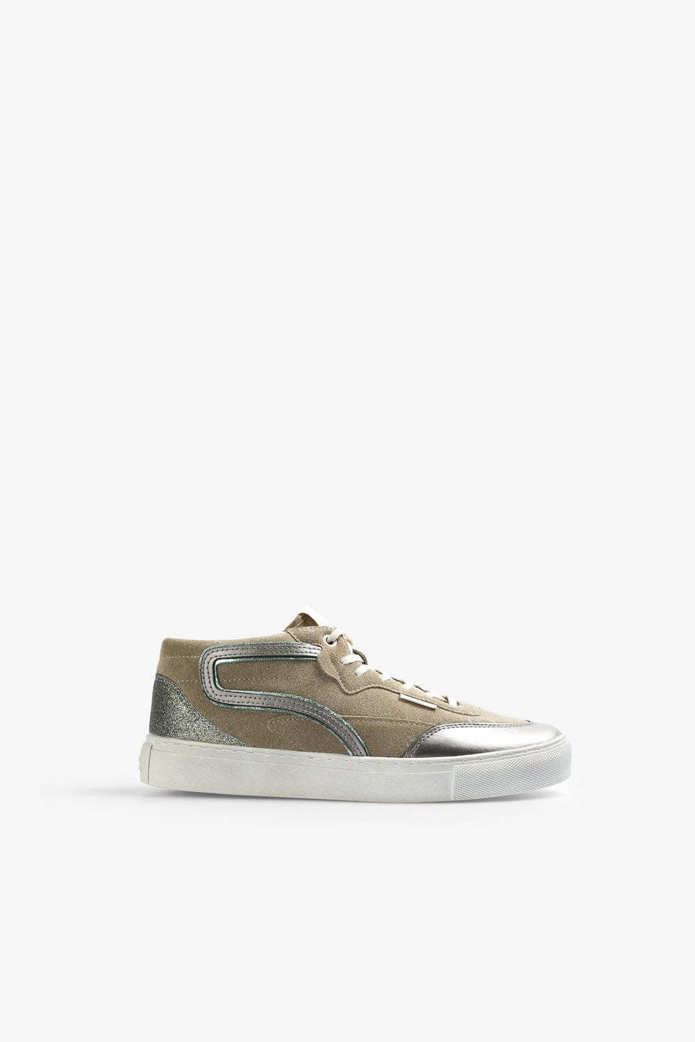Sneakers tipo bota confeccionadas en piel terminada en serraje. Cierre con cordones, suela de goma y detalles metalizados.