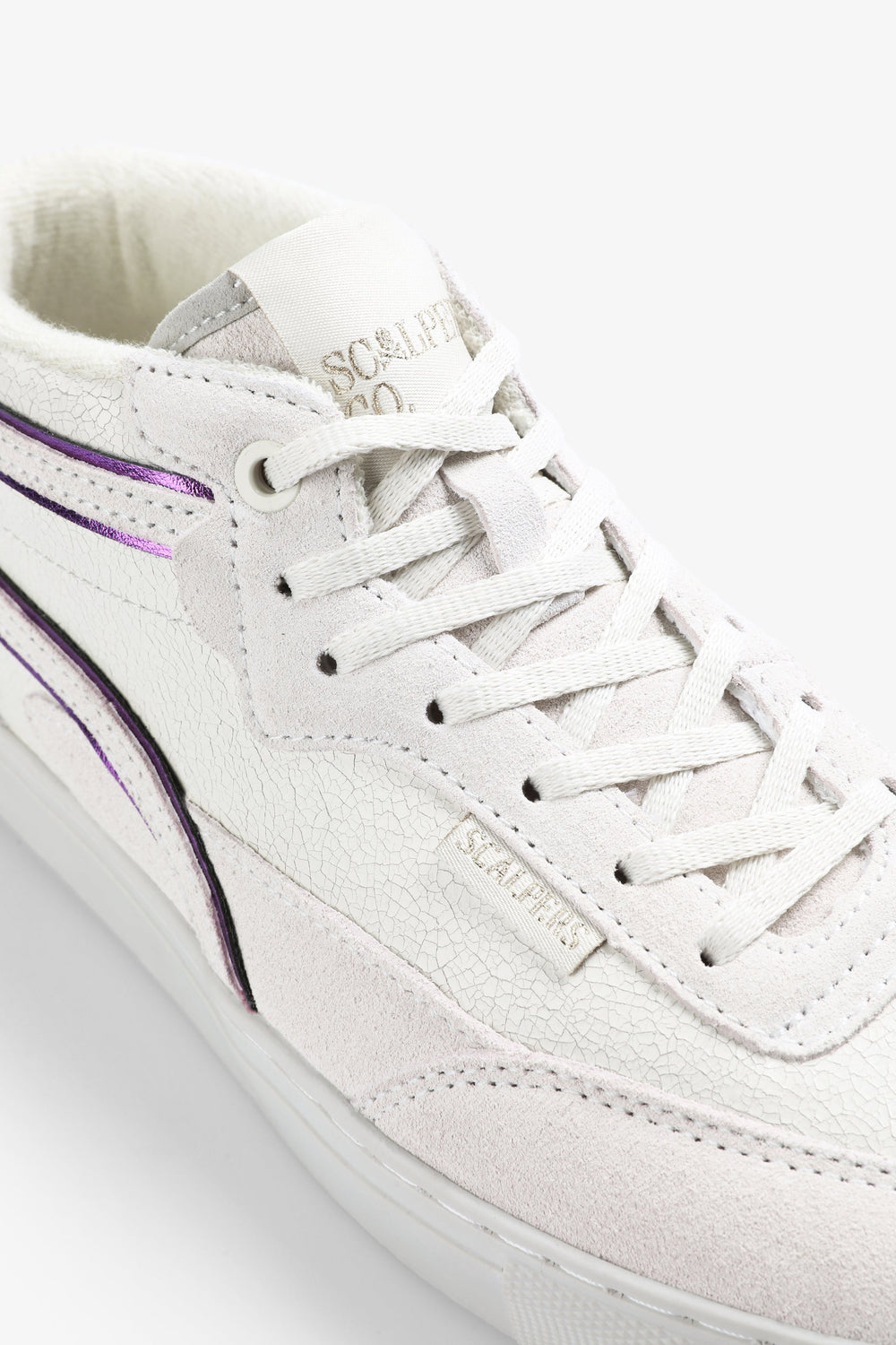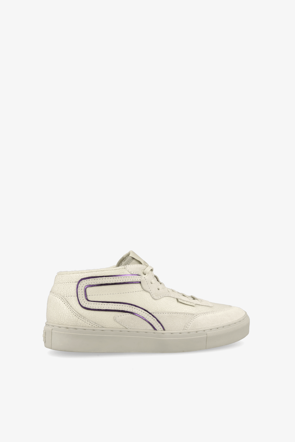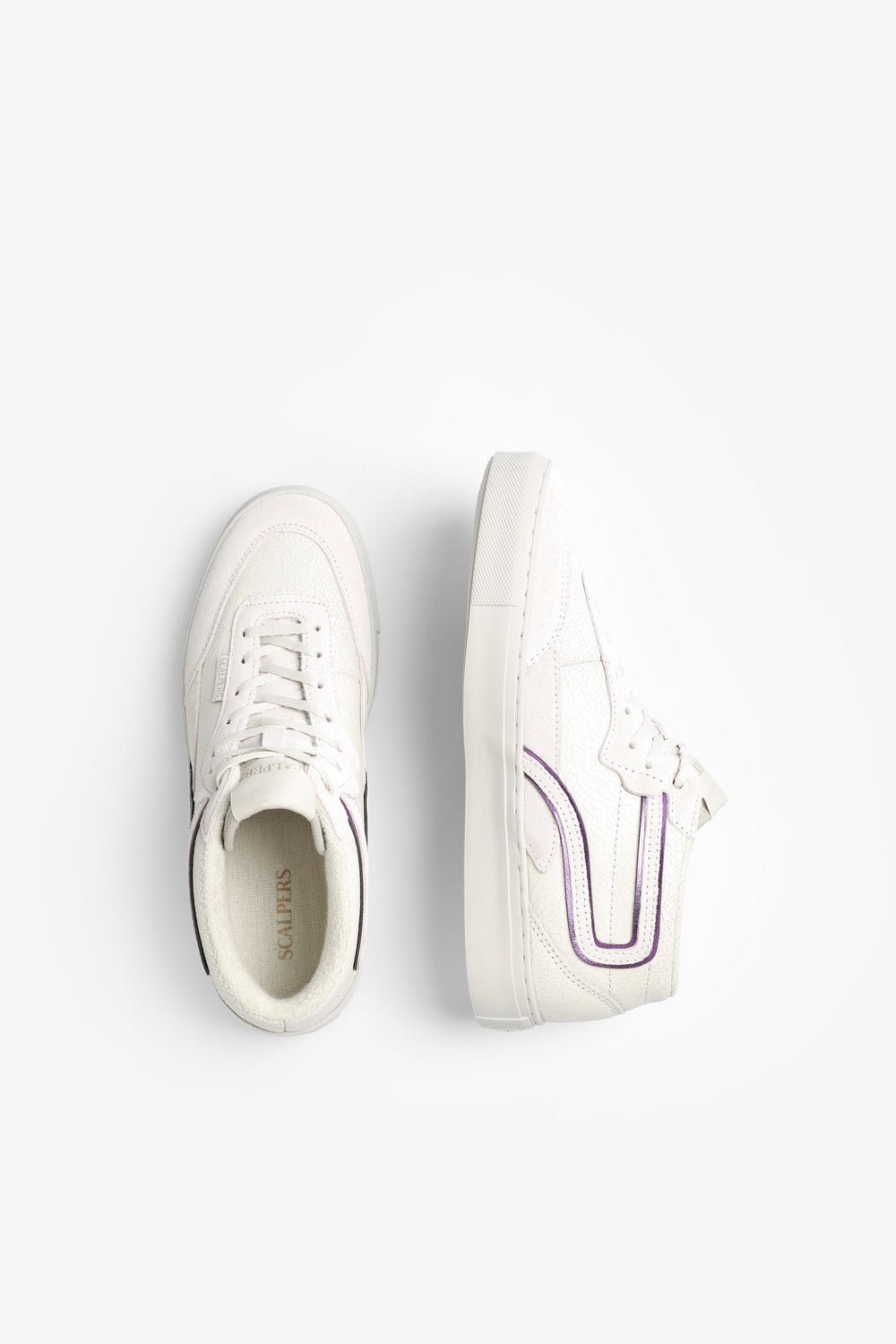 Sneakers tipo bota confeccionadas en piel terminada en serraje. Cierre con cordones, suela de goma y detalles metalizados.