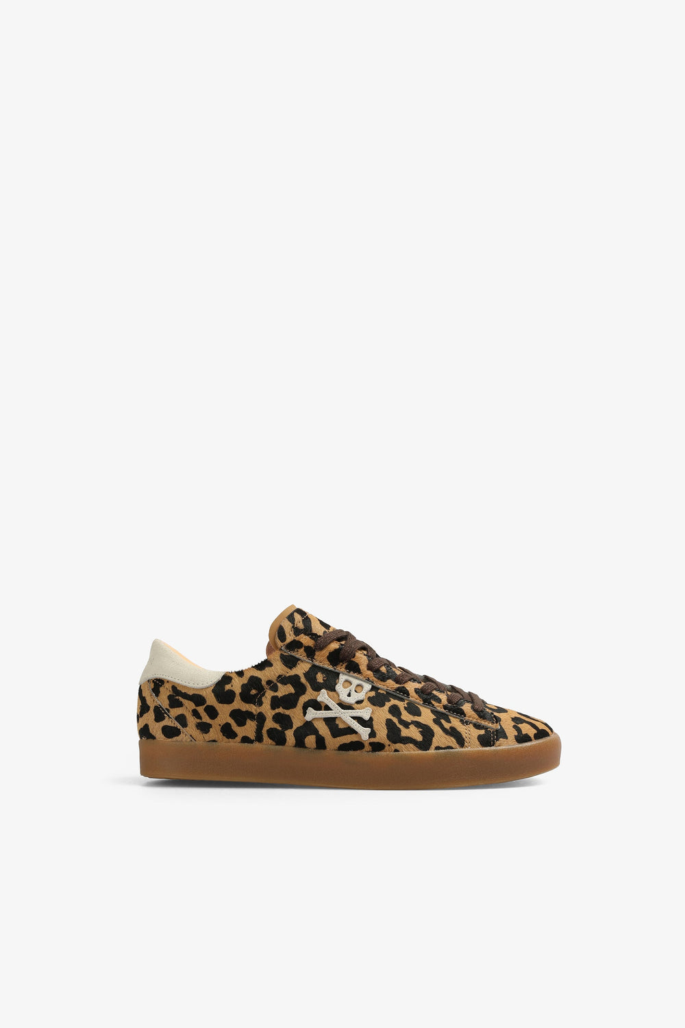 Sneakers bajas animal print confeccionadas en piel. Cierre con cordones, suela de goma y calavera.