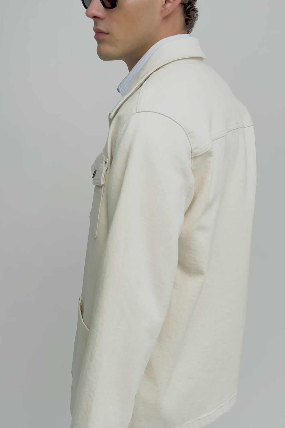 Sobrecamisa denim confeccionada en 100% algodón orgánico. Regular fit, cuello clásico y cierre con botones. Manga larga. Bolsillo con tapeta en pecho y de parche. Etiqueta en el bajo.
