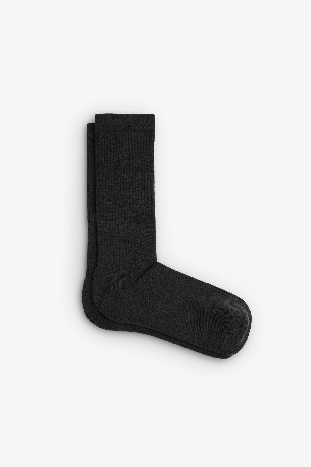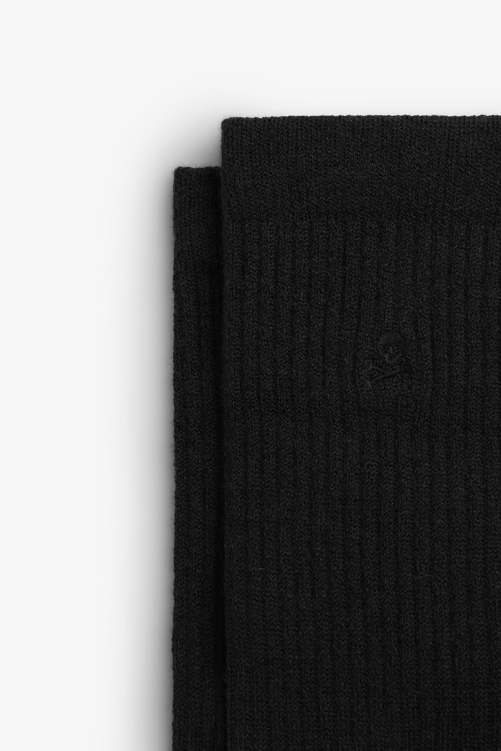 Calcetines premium confeccionados en mezcla de lana. Calavera bordada a tono.