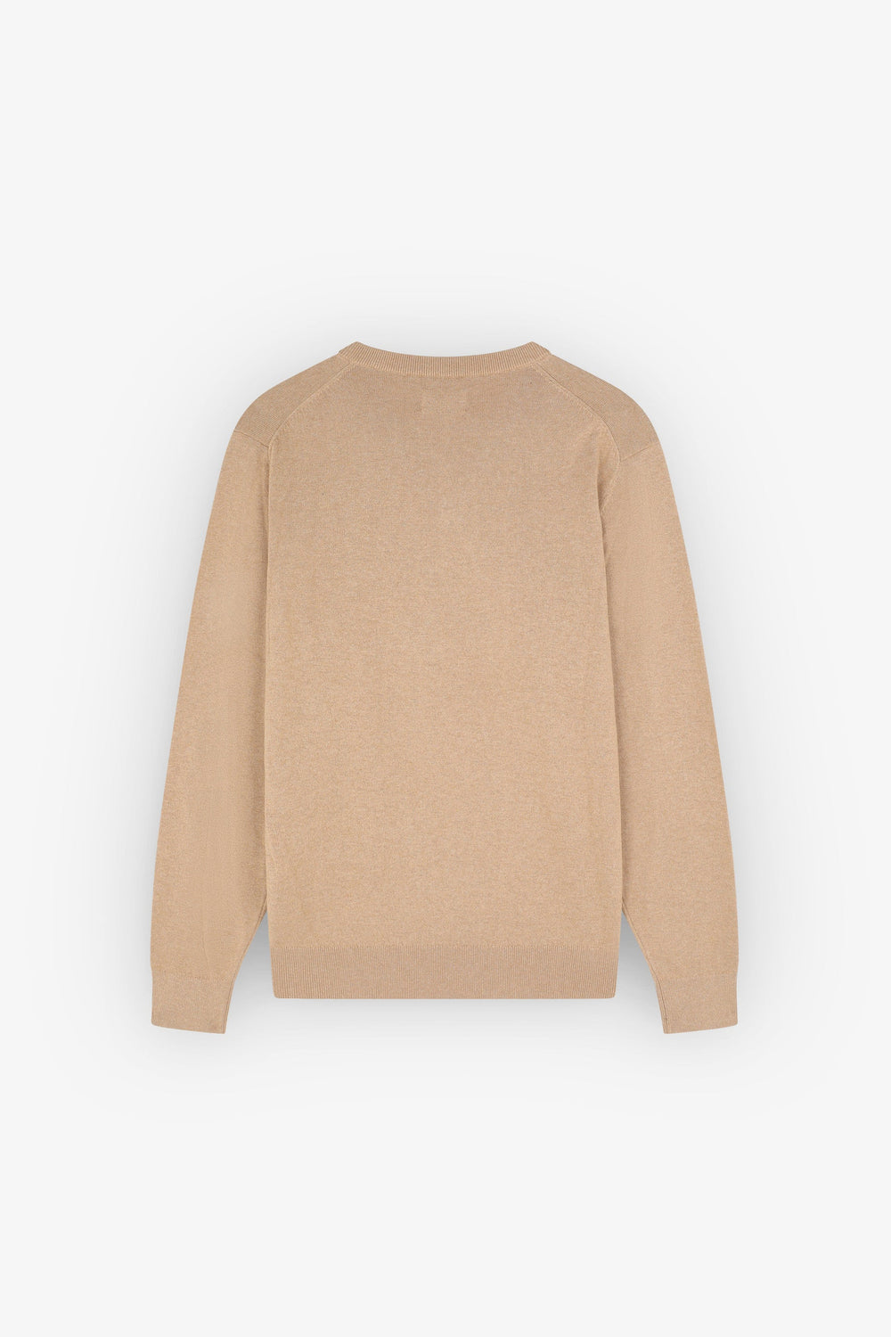 Jersey confeccionado en mezcla de algodón BCI y cashmere. Regular fit, cuello de pico y manga larga. Calavera bordada a tono.