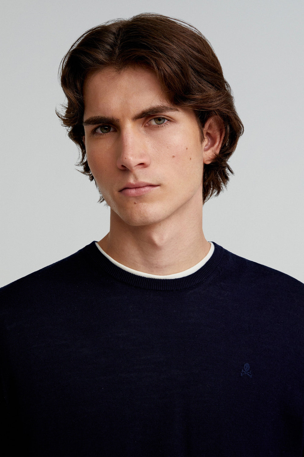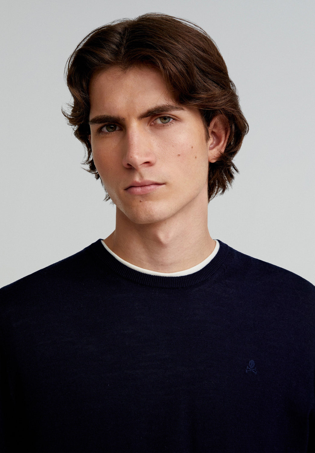 Jersey confeccionado en 100% lana merino. Regular fit, cuello redondo y manga larga. Calavera bordada a tono.