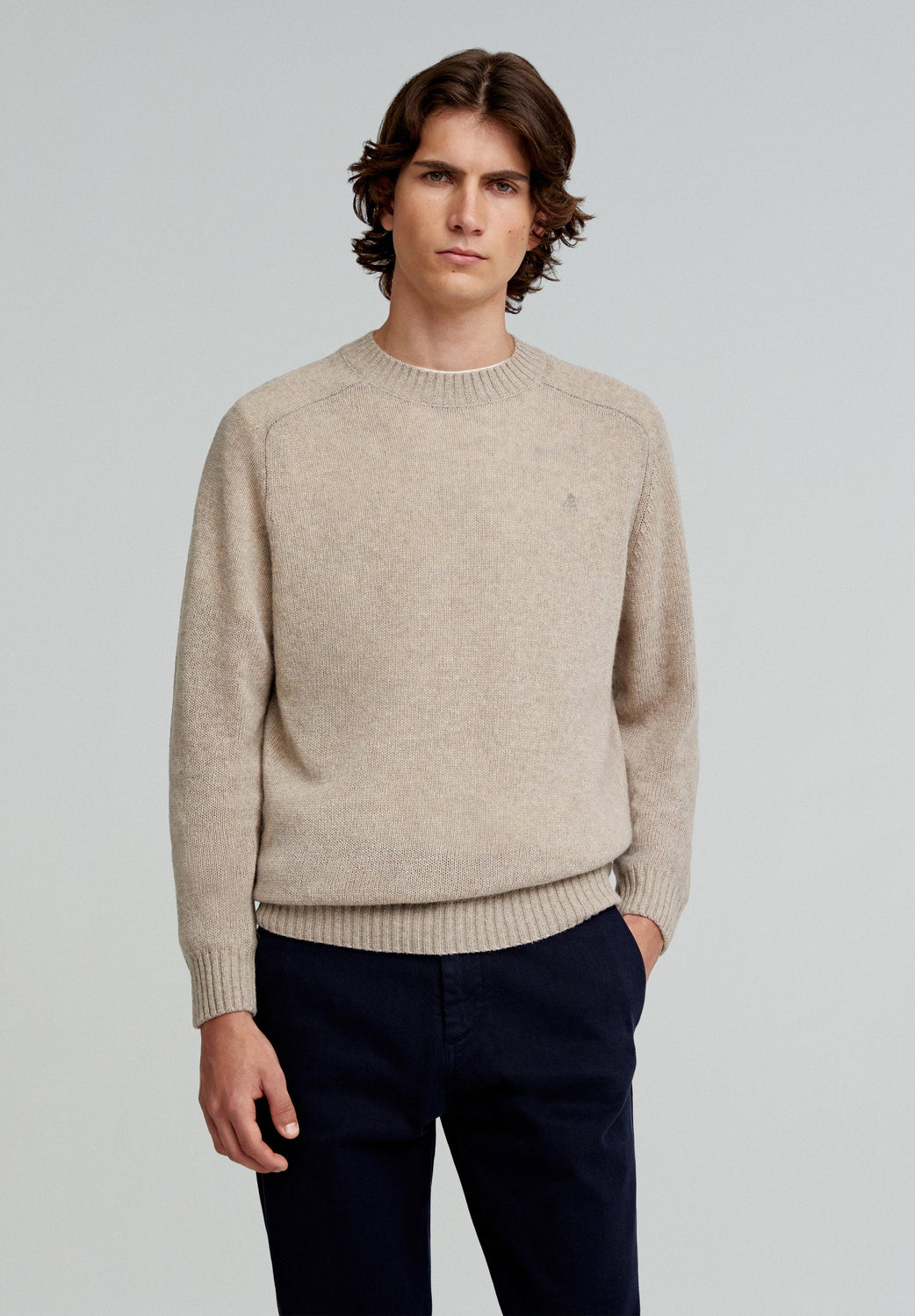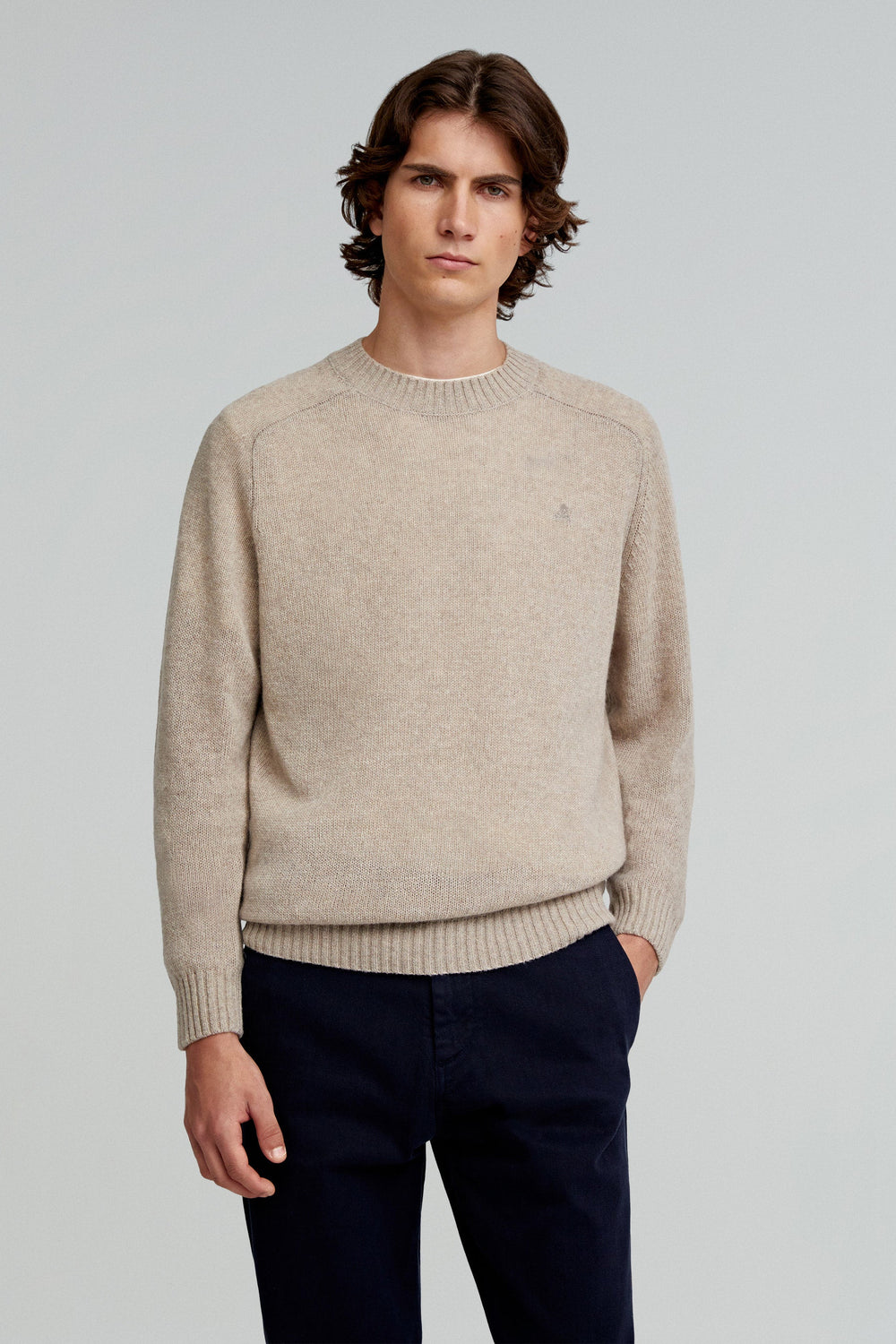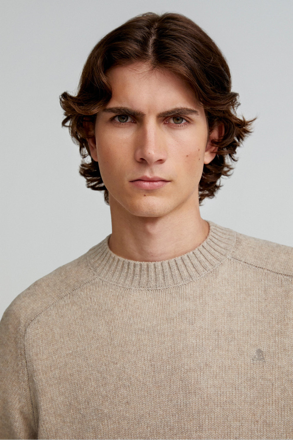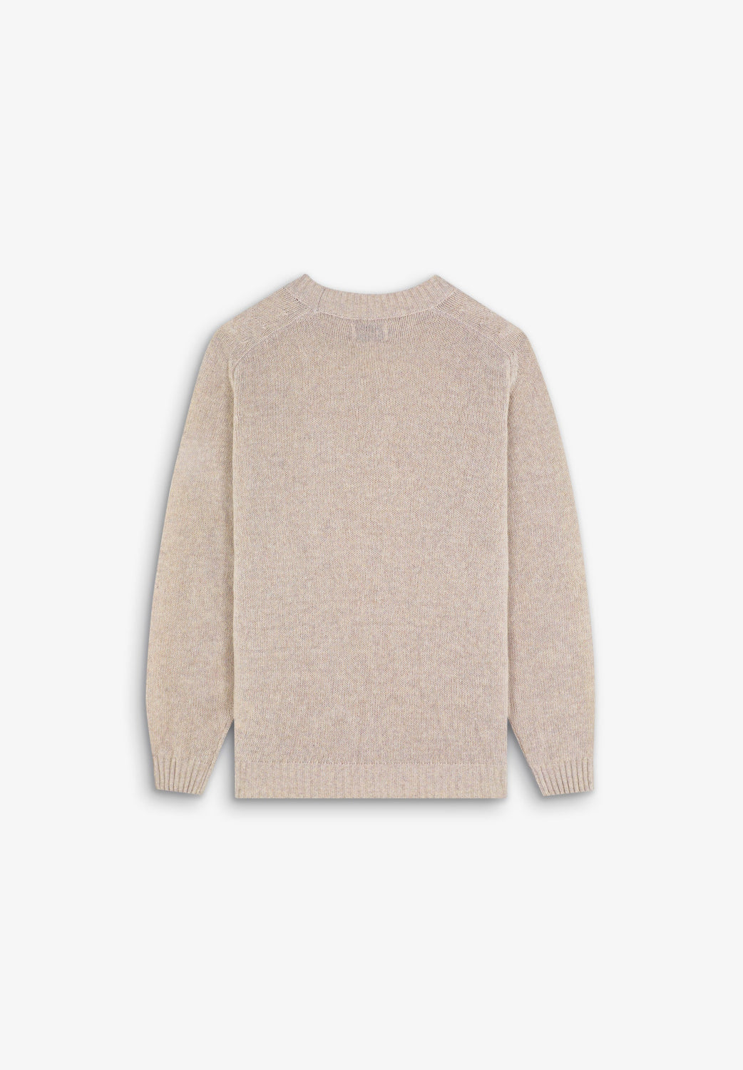 Jersey confeccionado en mezcla de lana reciclada. Regular fit, cuello con ribs y manga larga ranglan. Calavera bordada a tono.
