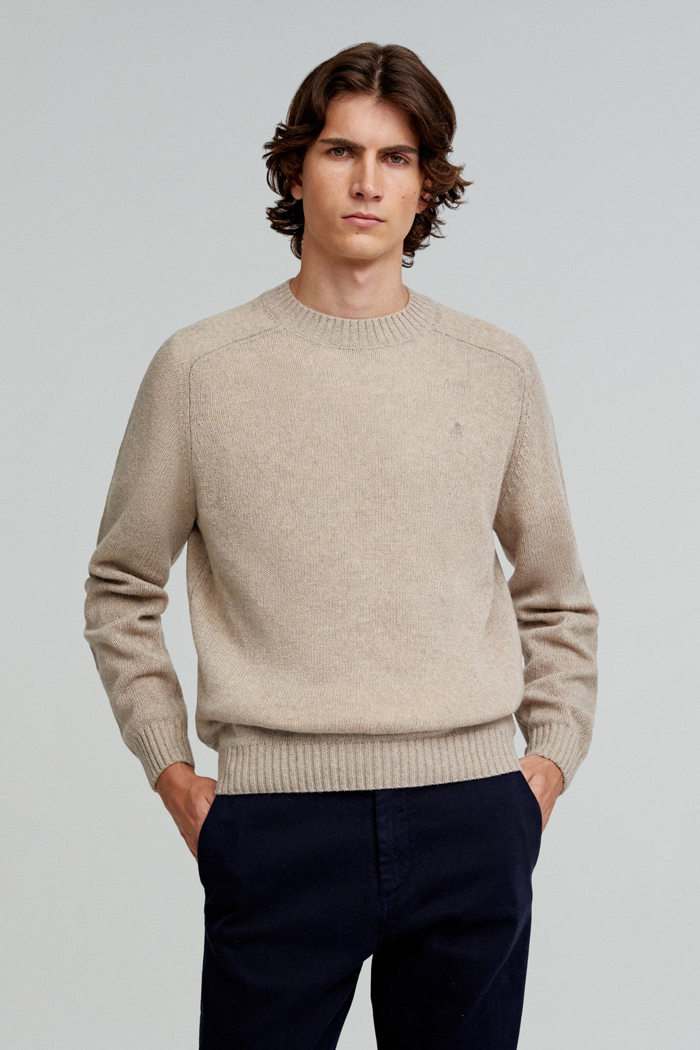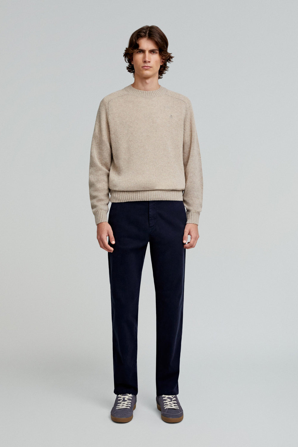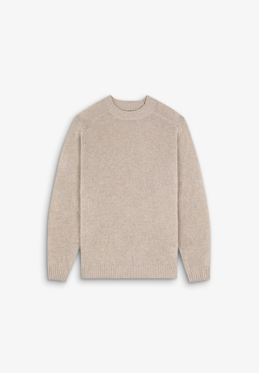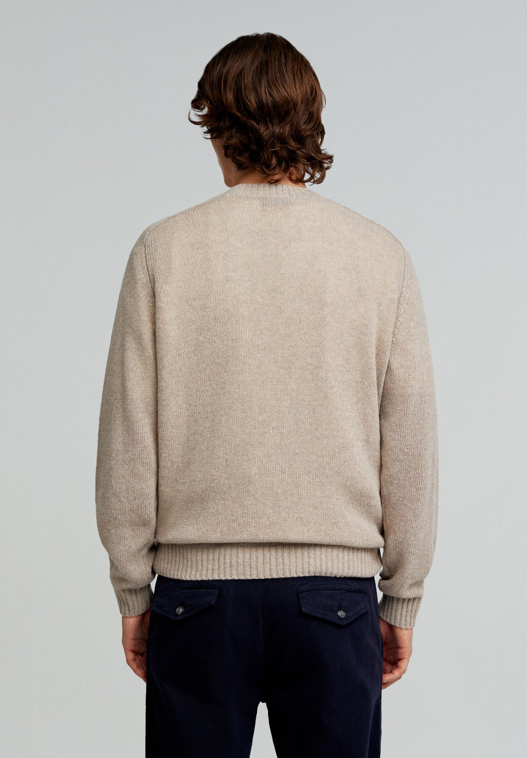 Jersey confeccionado en mezcla de lana reciclada. Regular fit, cuello con ribs y manga larga ranglan. Calavera bordada a tono.