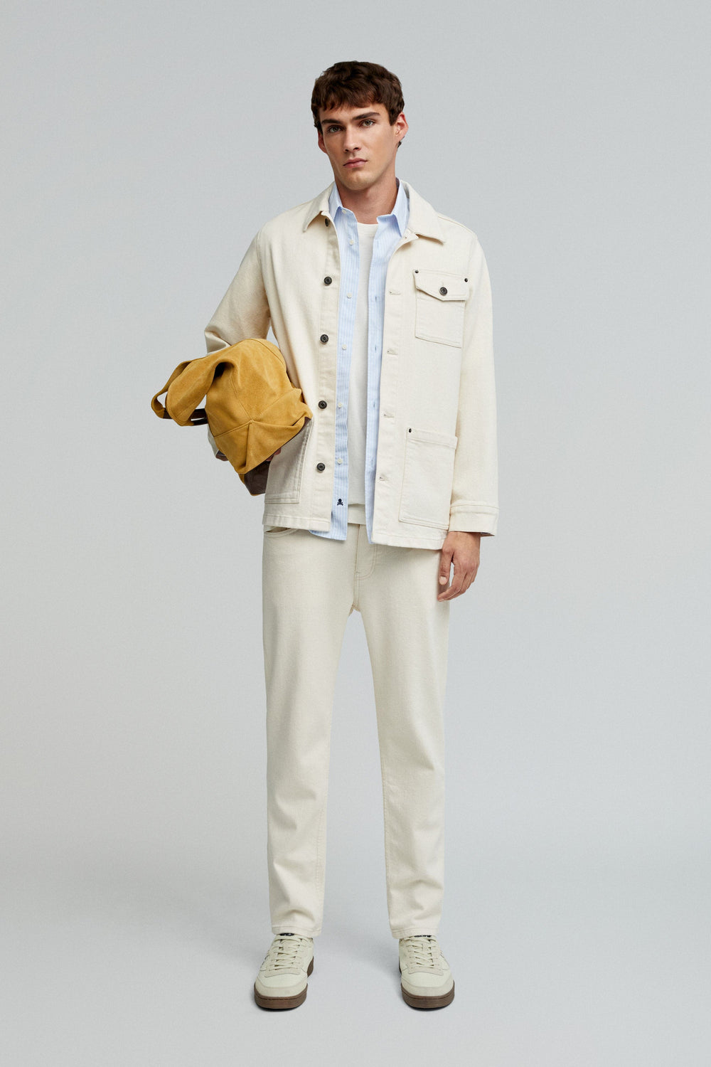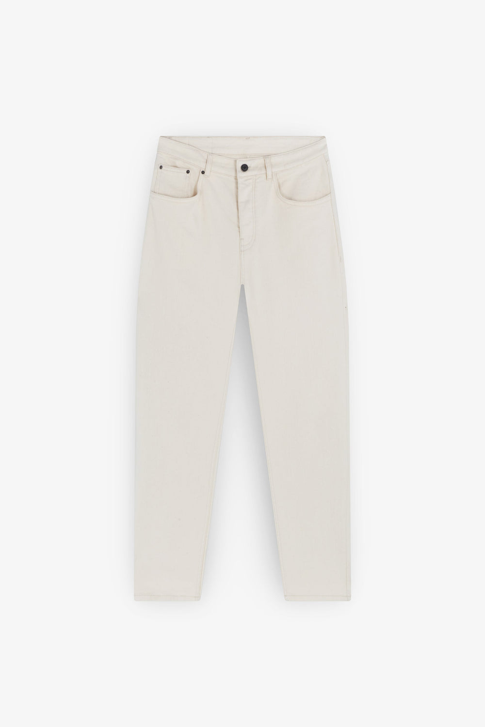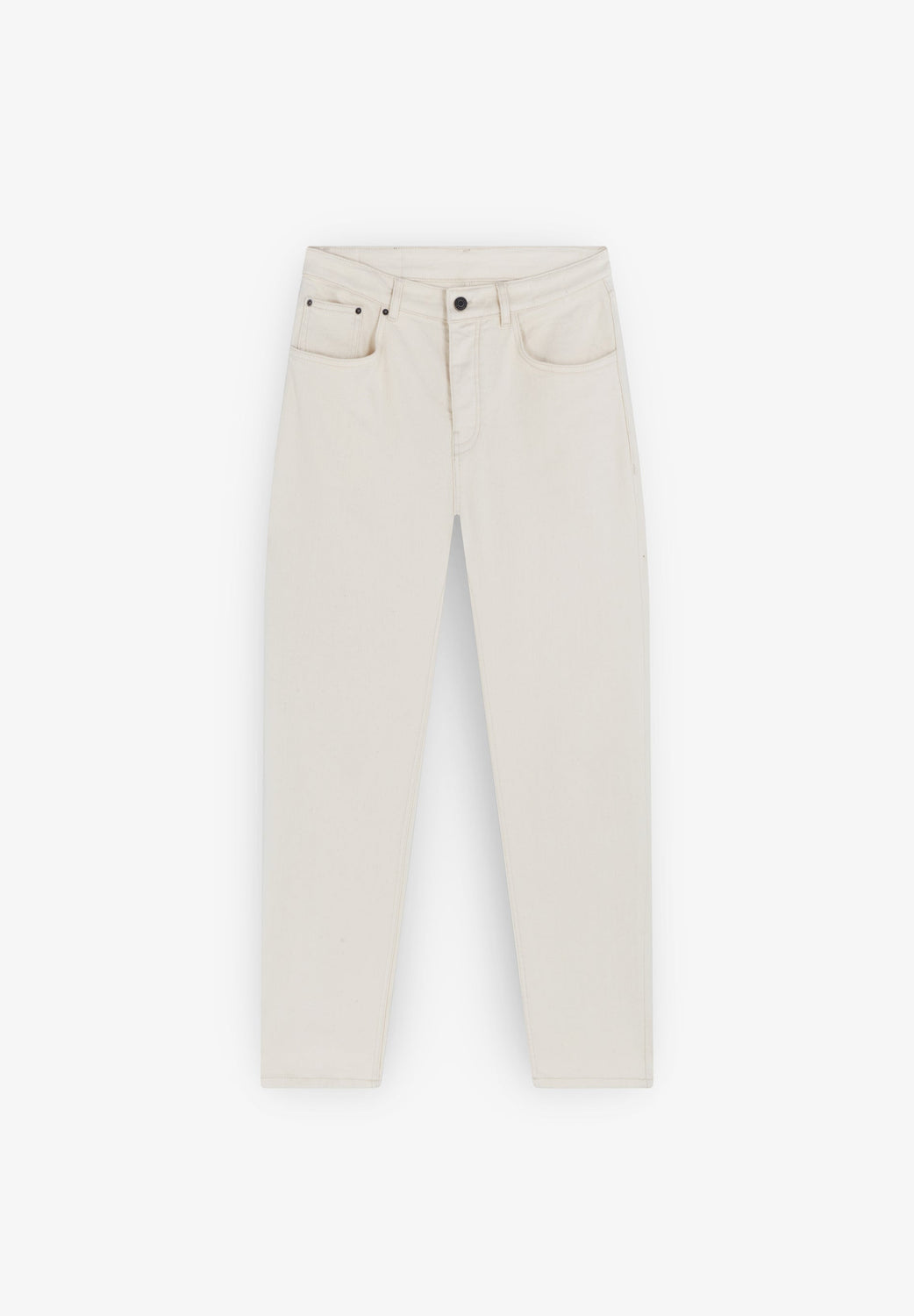 Jeans cropped confeccionado en algodón ligeramente elástico. Regular fit, cierre con botón y cremallera. Bolsillos delanteros y traseros y trabillas en cintura.