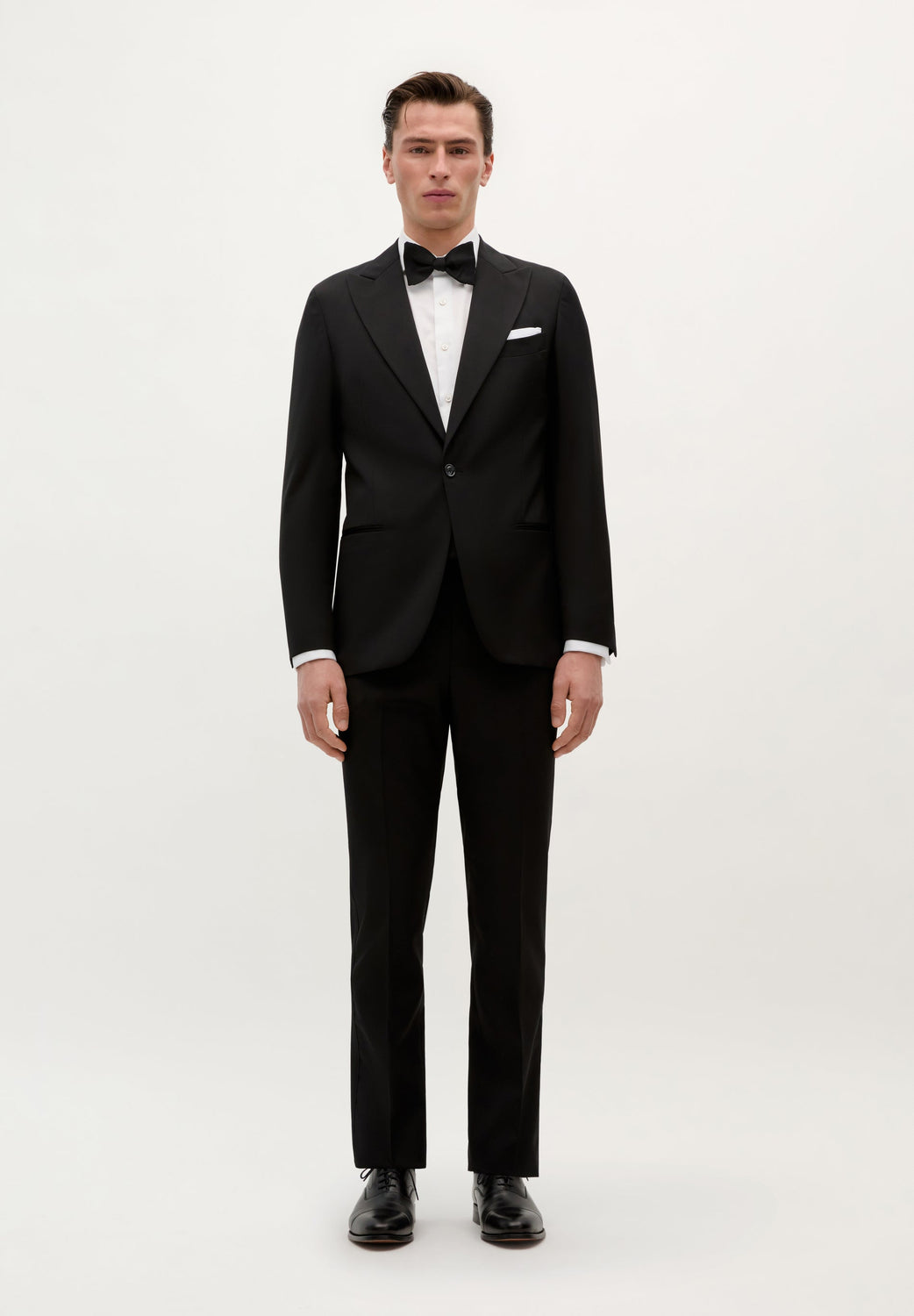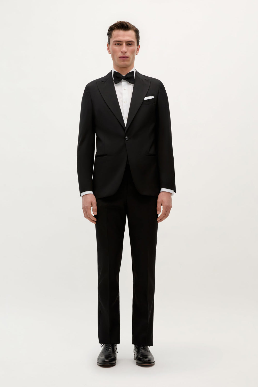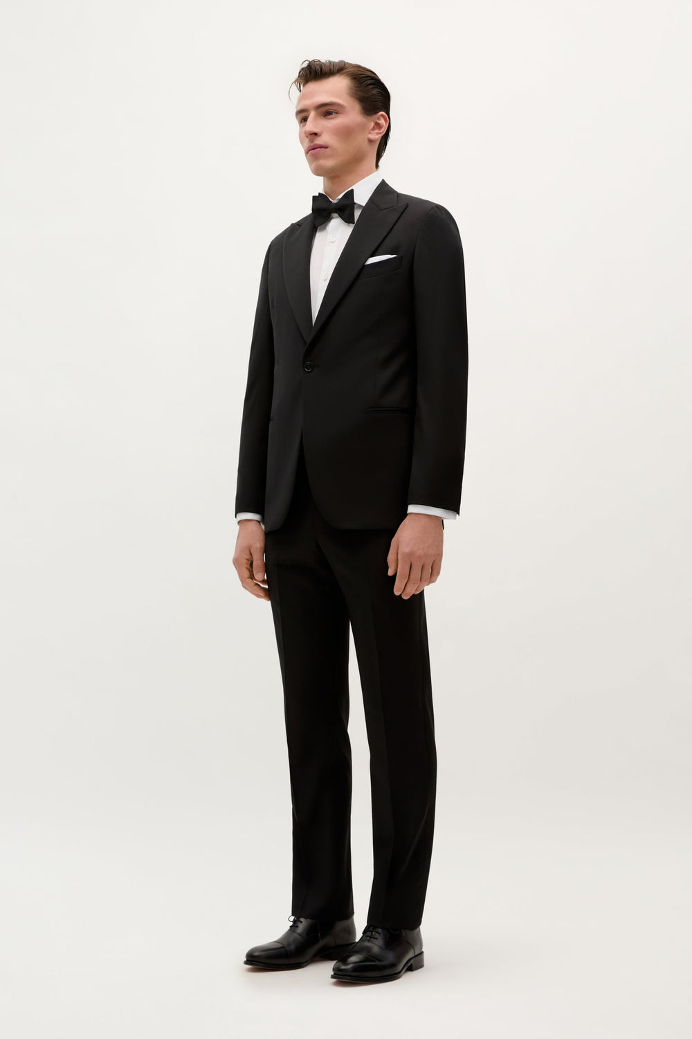 - Americana armada con corte Slim fit. Solapa de punta de lanza de raso. Cierre con botón. Manga larga terminada en puño con botones practicables. Bolsillos laterales de doble vivo. Bolsillo en pecho de vivo.