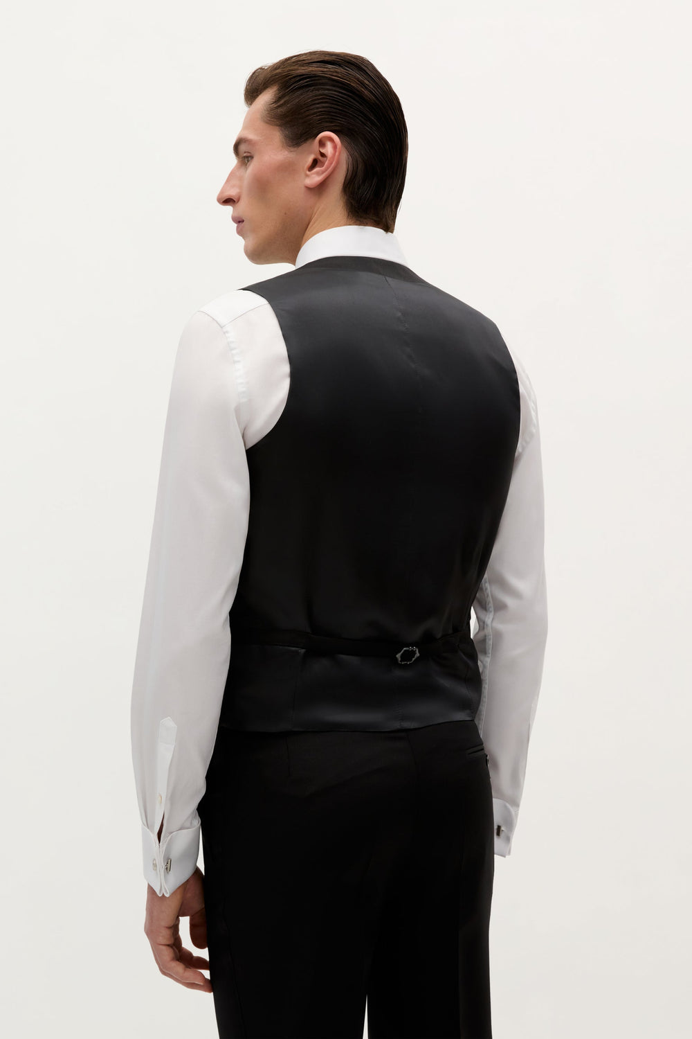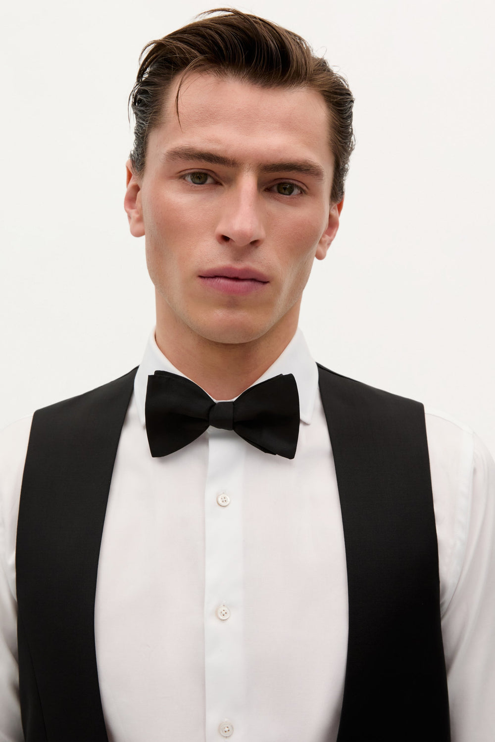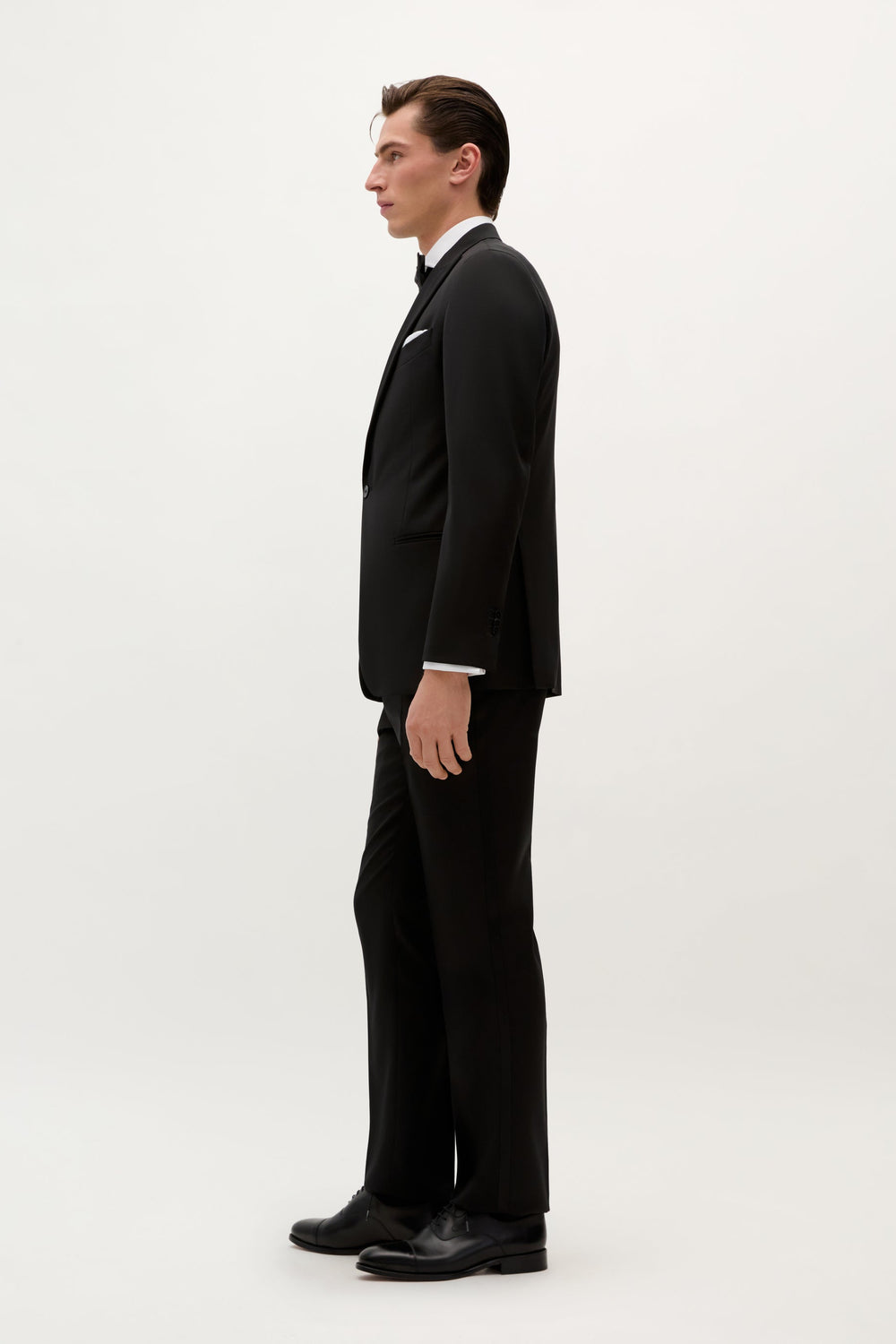 - Americana armada con corte Slim fit. Solapa de punta de lanza de raso. Cierre con botón. Manga larga terminada en puño con botones practicables. Bolsillos laterales de doble vivo. Bolsillo en pecho de vivo.